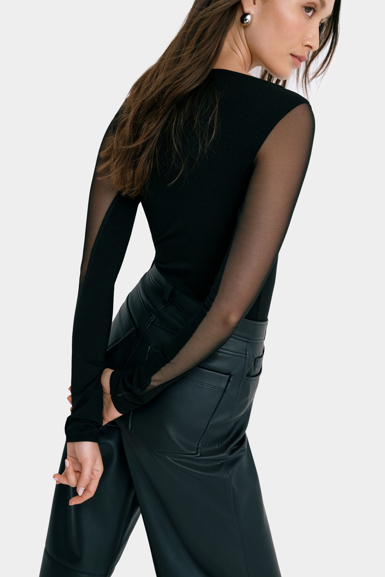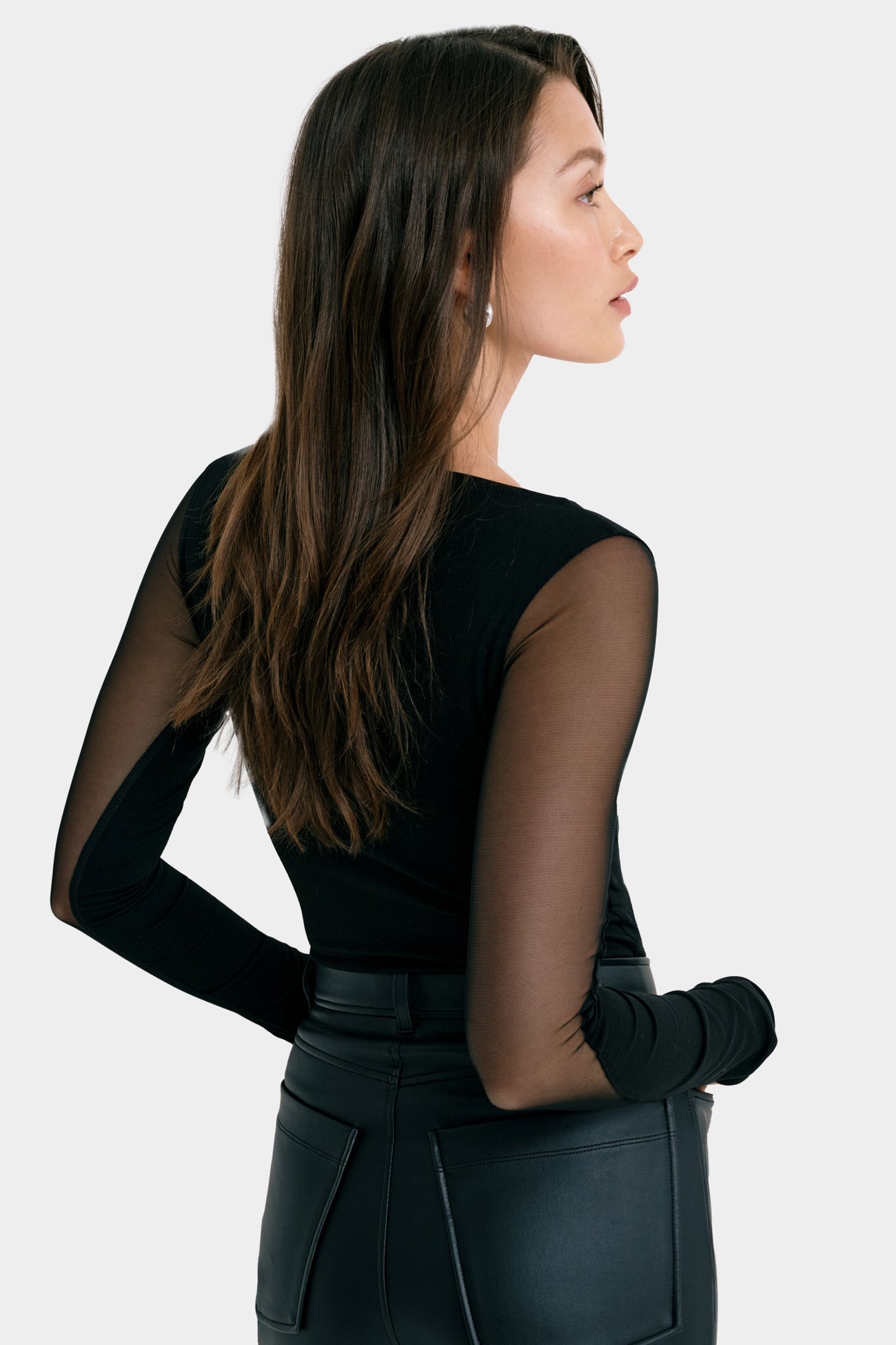 Adella's got day-to-night style up her sleeve. where high-stretch. sustainable European jersey and soft luxe mesh dance down the arms hypnotically. A seasonless staple featuring clean lines and a crisp boatneck neckline. Adella can be dressed up or down to create your own artistic statement.
