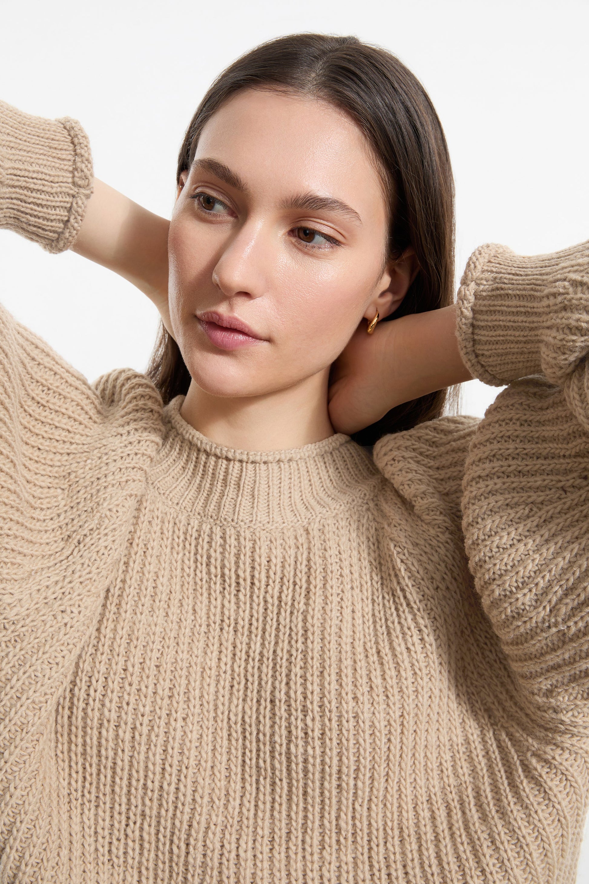 Sweater better in Becca. the cocooned silhouette you'll reach for first when temps dip. This classic round-neck pullover relaxes over the figure and flows into roomy raglan sleeves. Knit from addictive Italian wool-blend yarn with a ribbed hem and cuffs. Becca's a long-lasting staple that cranks up the volume on chic comfort. SPLIT
