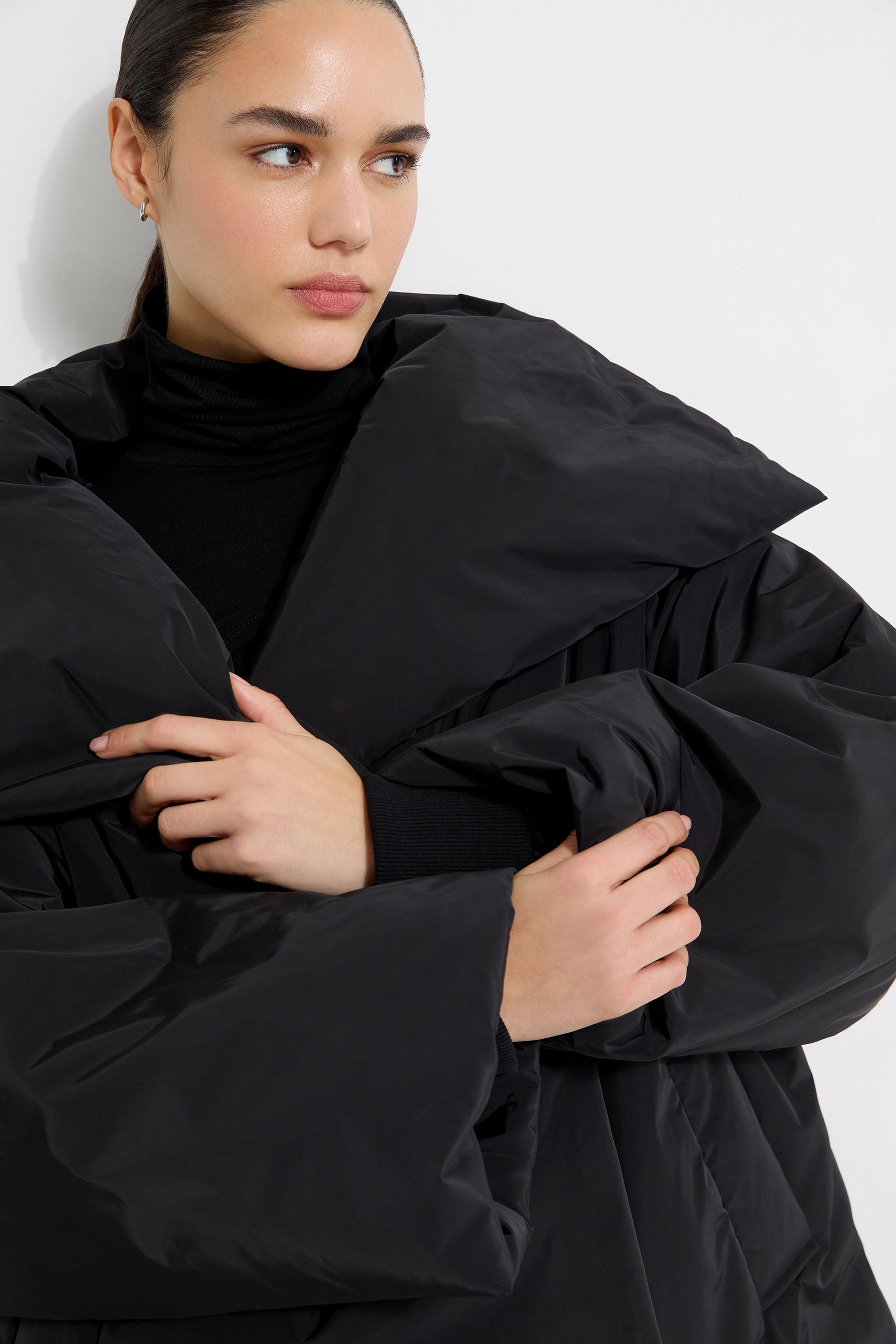 As iconic as a Brontë sister. our Bronte Puffer is an instant cold weather classic for modern-day heroines. Her oversized collar pairs with sleek snap closures and dropped shoulders to relax the look. Crafted from European puffer fabric with extra-soft padding and storm rib cuffs to cap her bell-shaped sleeves. Bronte promises years of cozy. warming wear.SPLIT