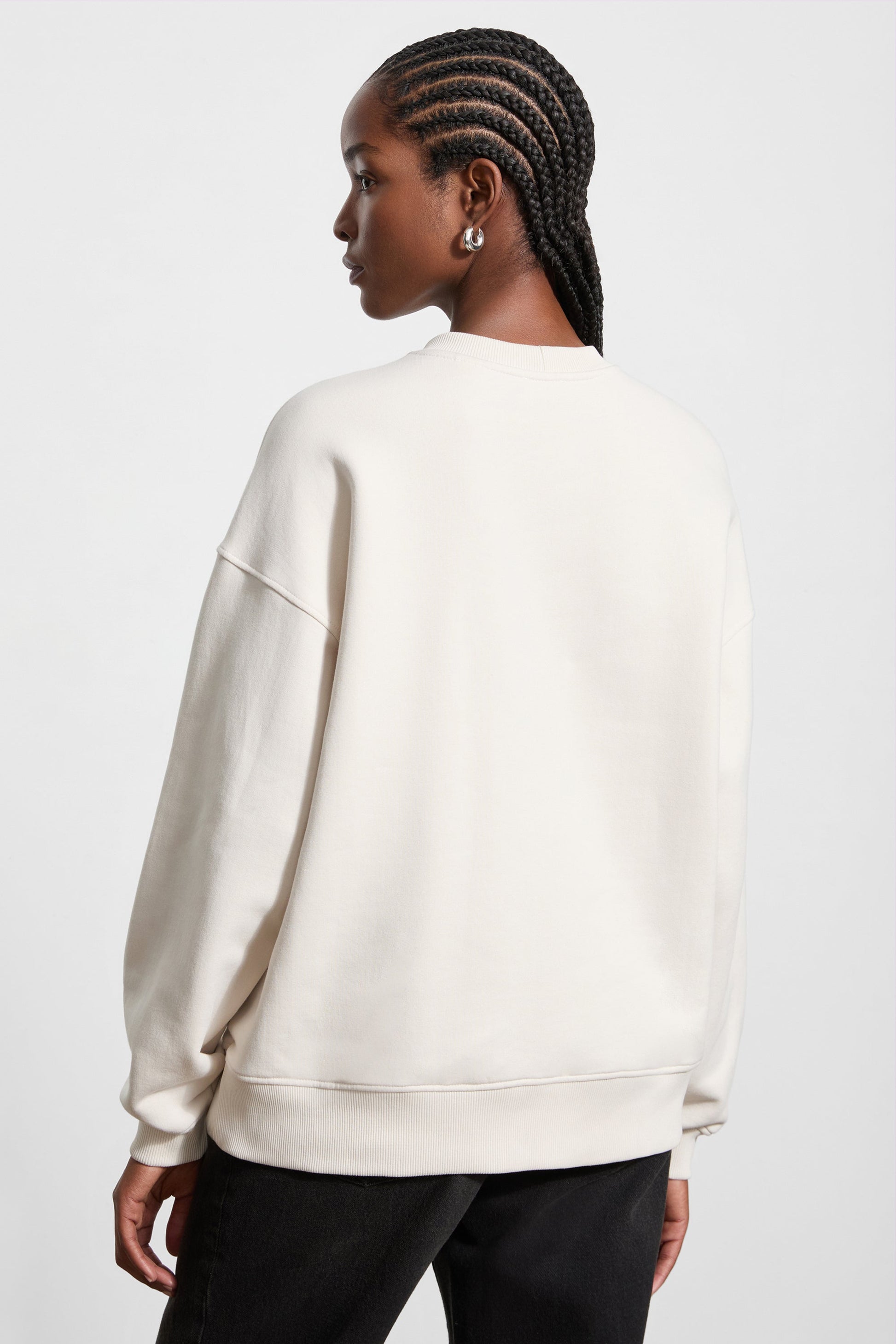 Whatever your neighborhood. you'll end up living in Brooklyn. This classic long-sleeve crewneck sweatshirt is cut from midweight European french terry that's irresistibly soft. with ribbed details throughout for textural intrigue. Relaxed and oversized with dropped shoulders. she's stamped with “Brooklynâ€?across the front for an instant dose of NYC cool.SPLIT
