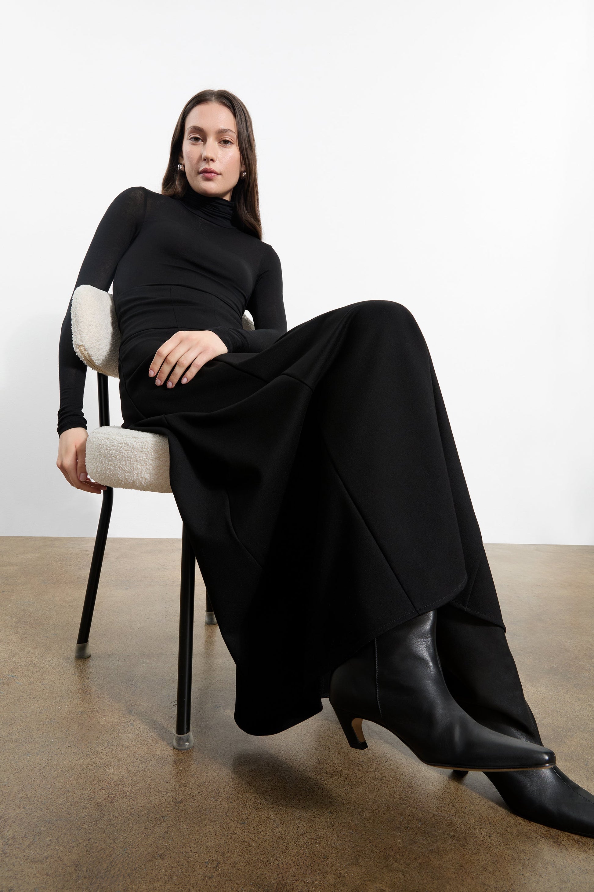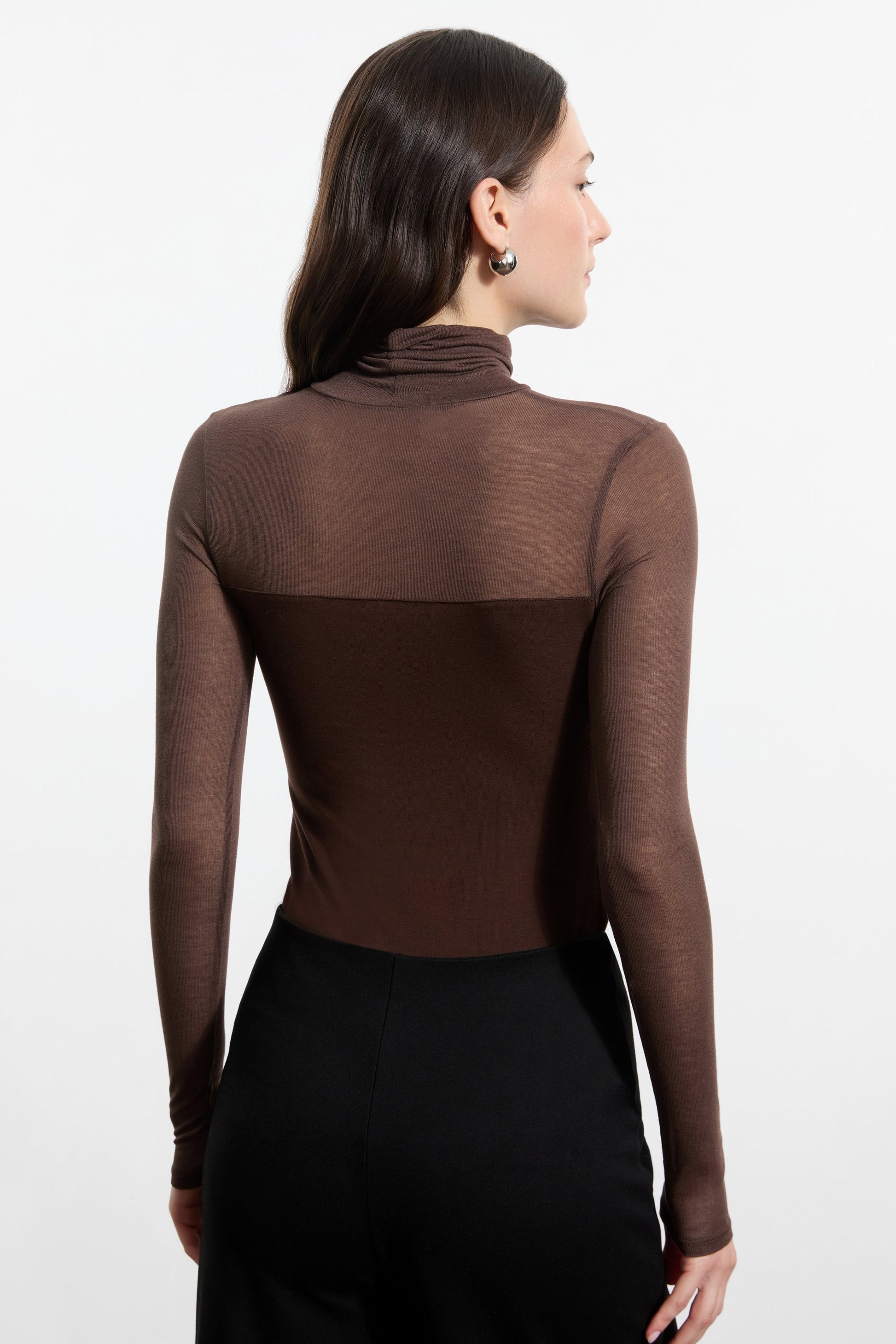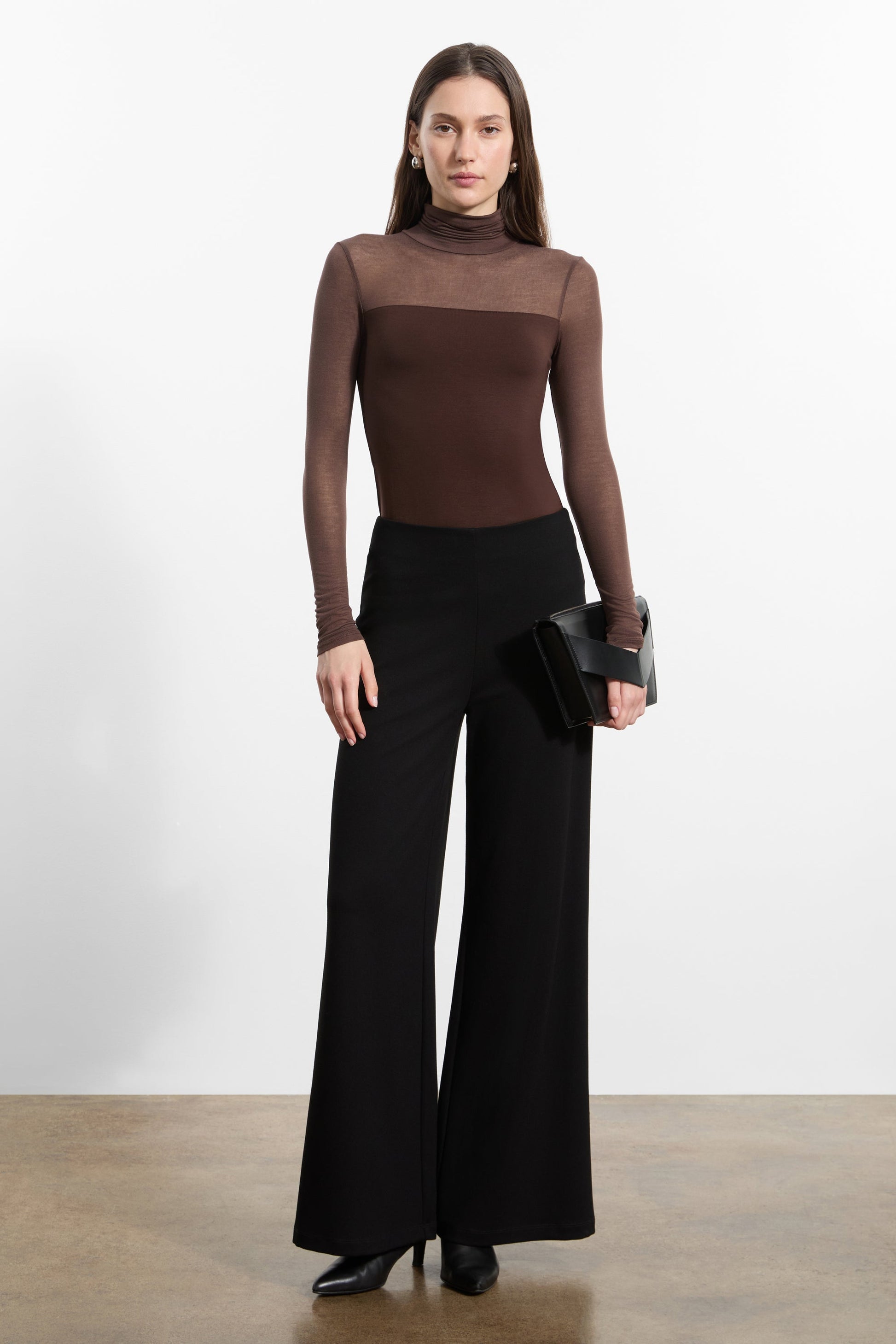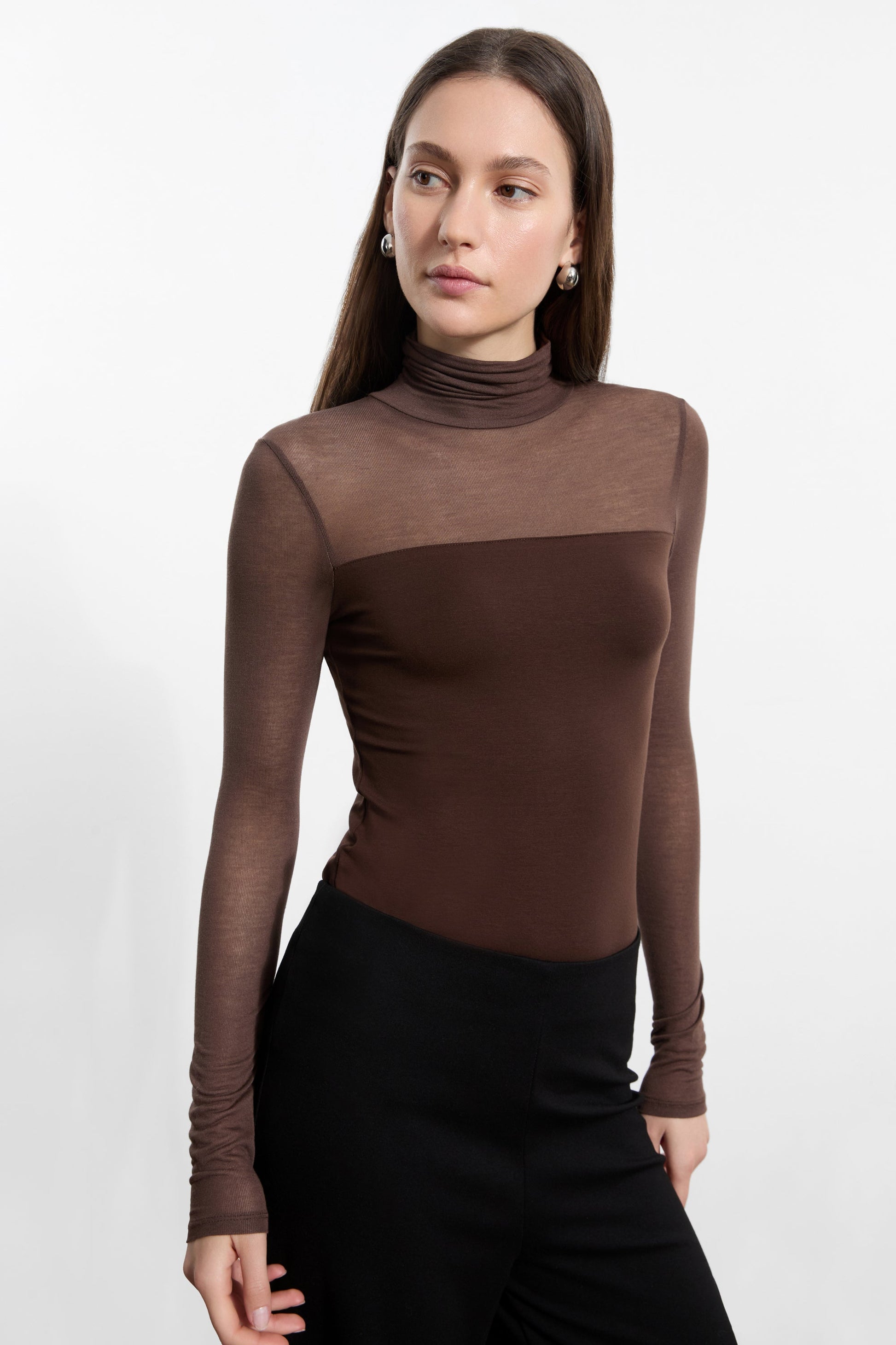 Timeless and head-turning at once. our Cara Top is a reimagined take on the classic turtleneck top. Fully covered feels lighter than air with our dual European jersey construction. combining an opaque base with sheer at the neckline and sleeves for an unexpected hint of skin. Cara's high-stretch fabric fits just so in all the right places and she's breathable enough to layer across seasons.SPLIT