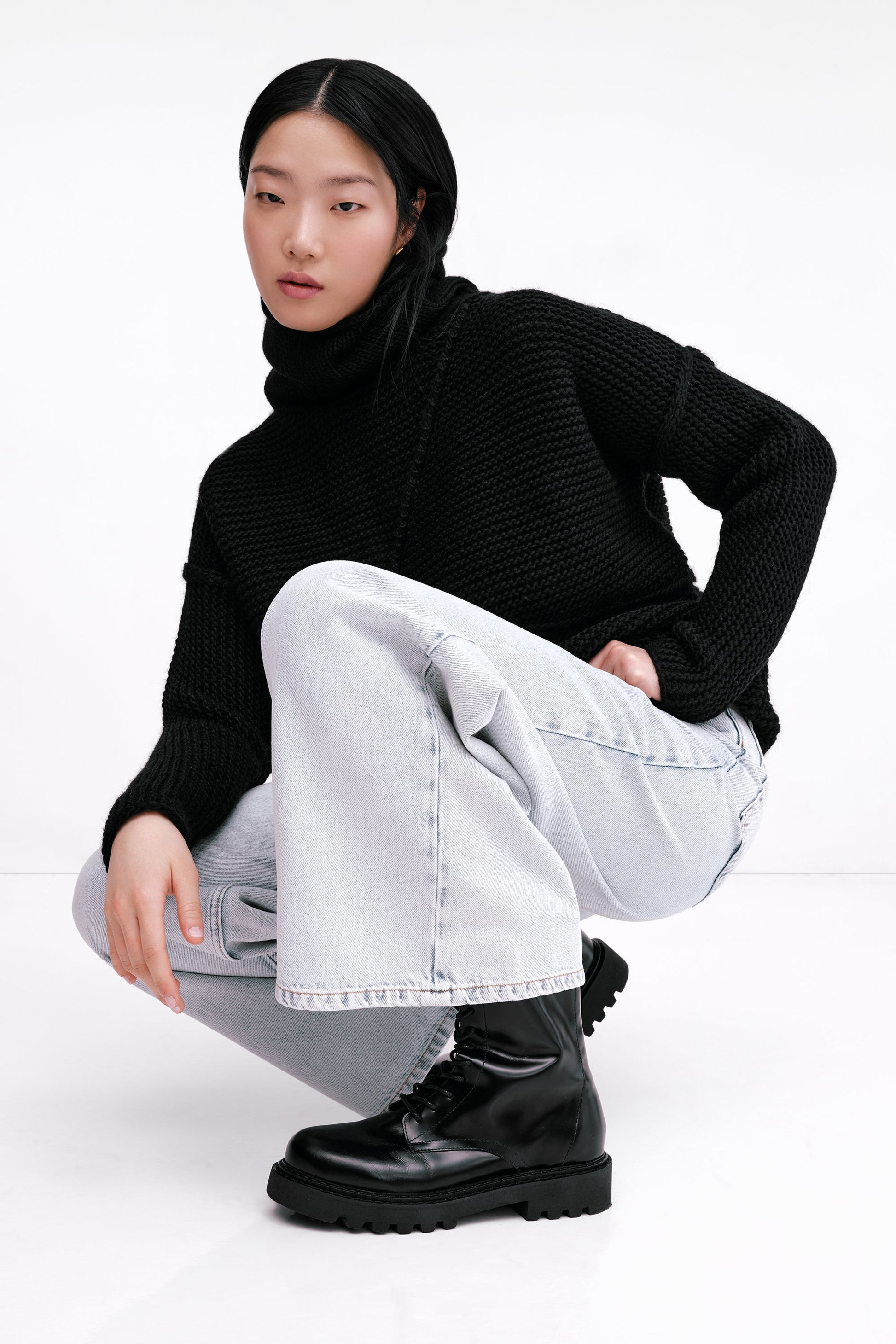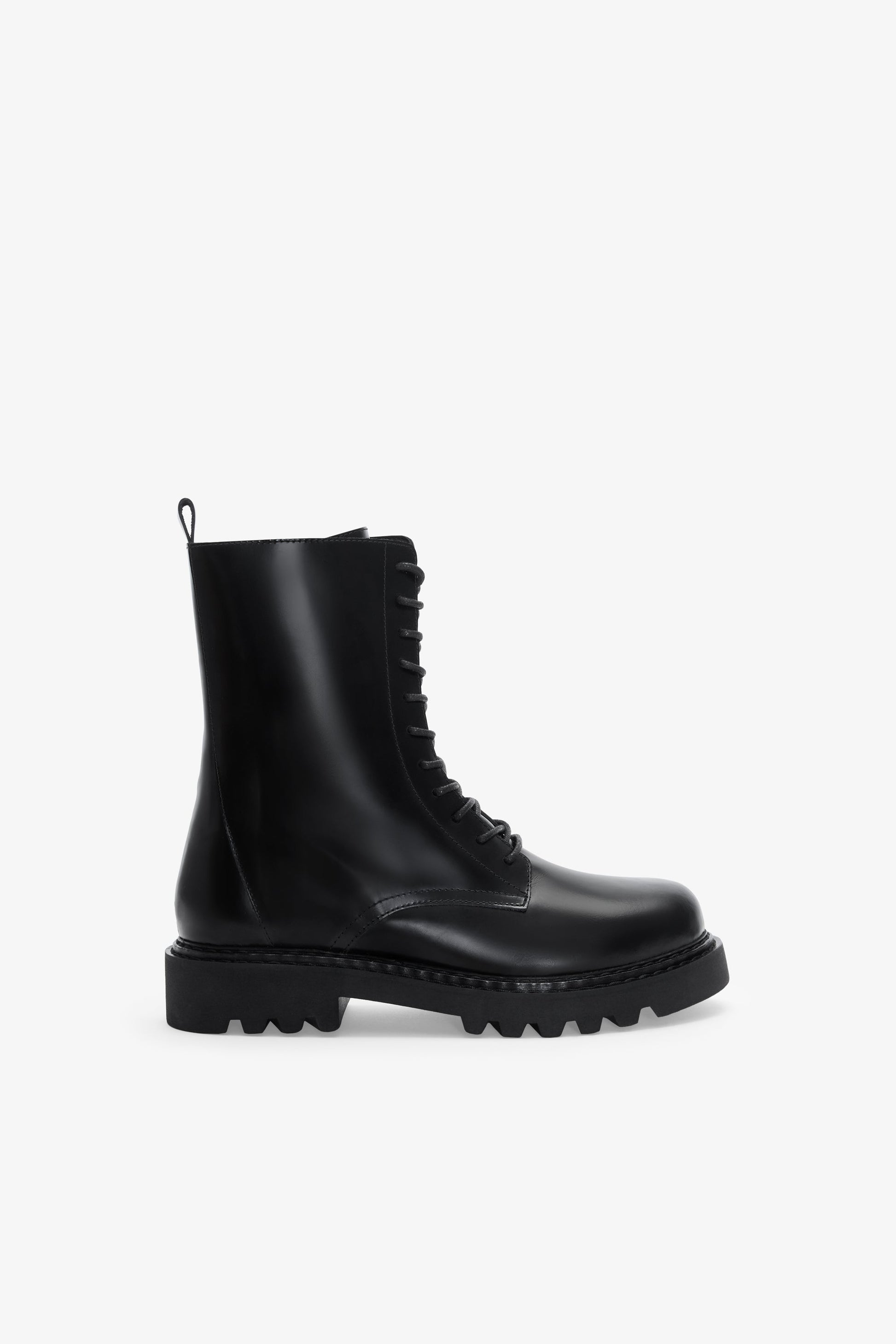Command the day in our Carla Boots. Glossy in Italian spazzolato leather. these combat boots are set on a chunky sole for height and stability. with a side zip for quick on-and-off without having to unlace. Whether she's edging up feminine looks or grounding street style fits. Carla redefines seasonless. versatile footwear.SPLIT