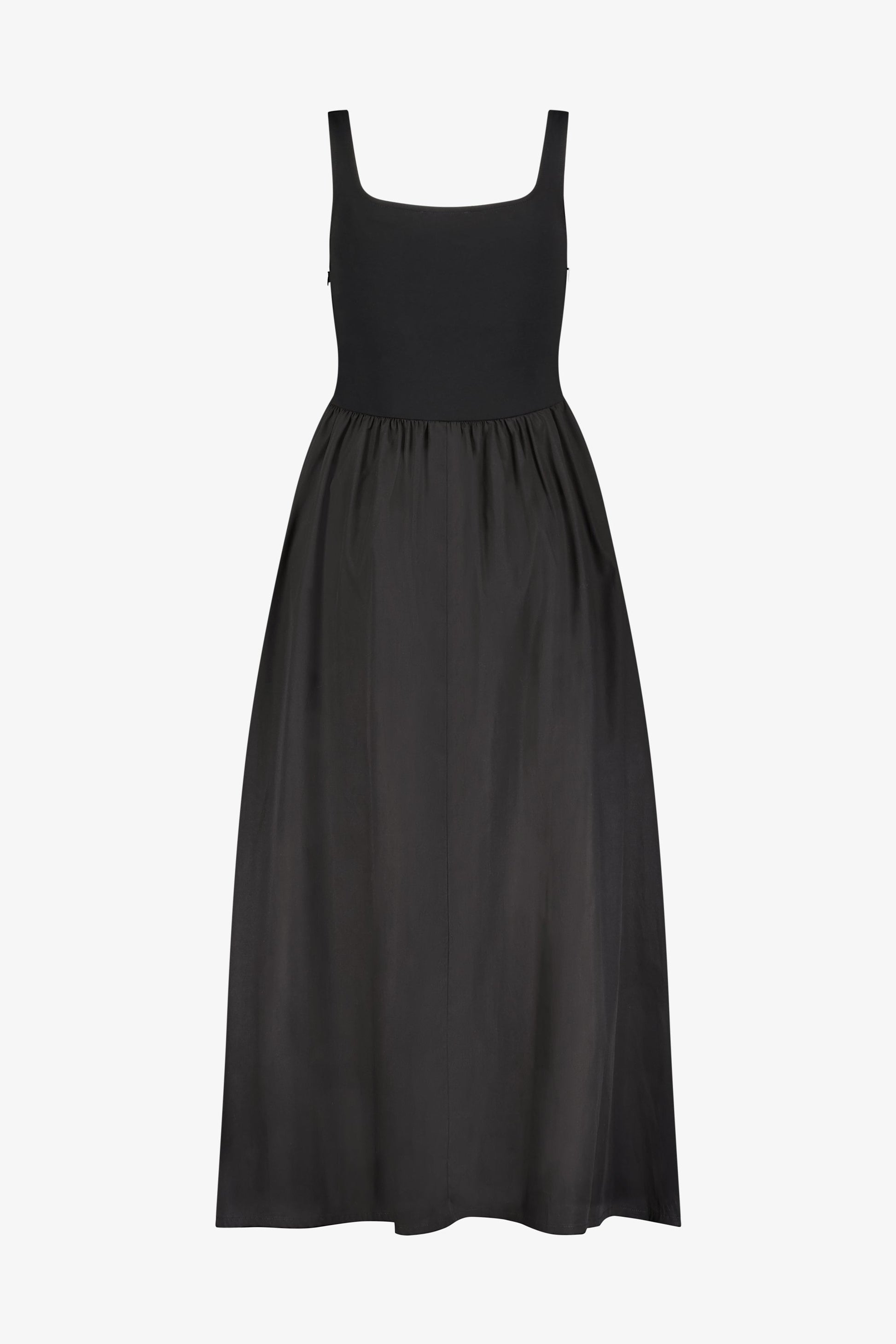 Our beloved Clara is your perfect capsule dress—a classic. comfy design that flatters all shapes and will always stay in style. Clara's top features a low scoop neckline with tank straps handcrafted from structured. mid-stretch European ponte. Her skirt is fashioned from 100% European poplin cotton with a side zip for easy wear. offering full coverage and all-day comfort. And. yes. Clara has pockets!