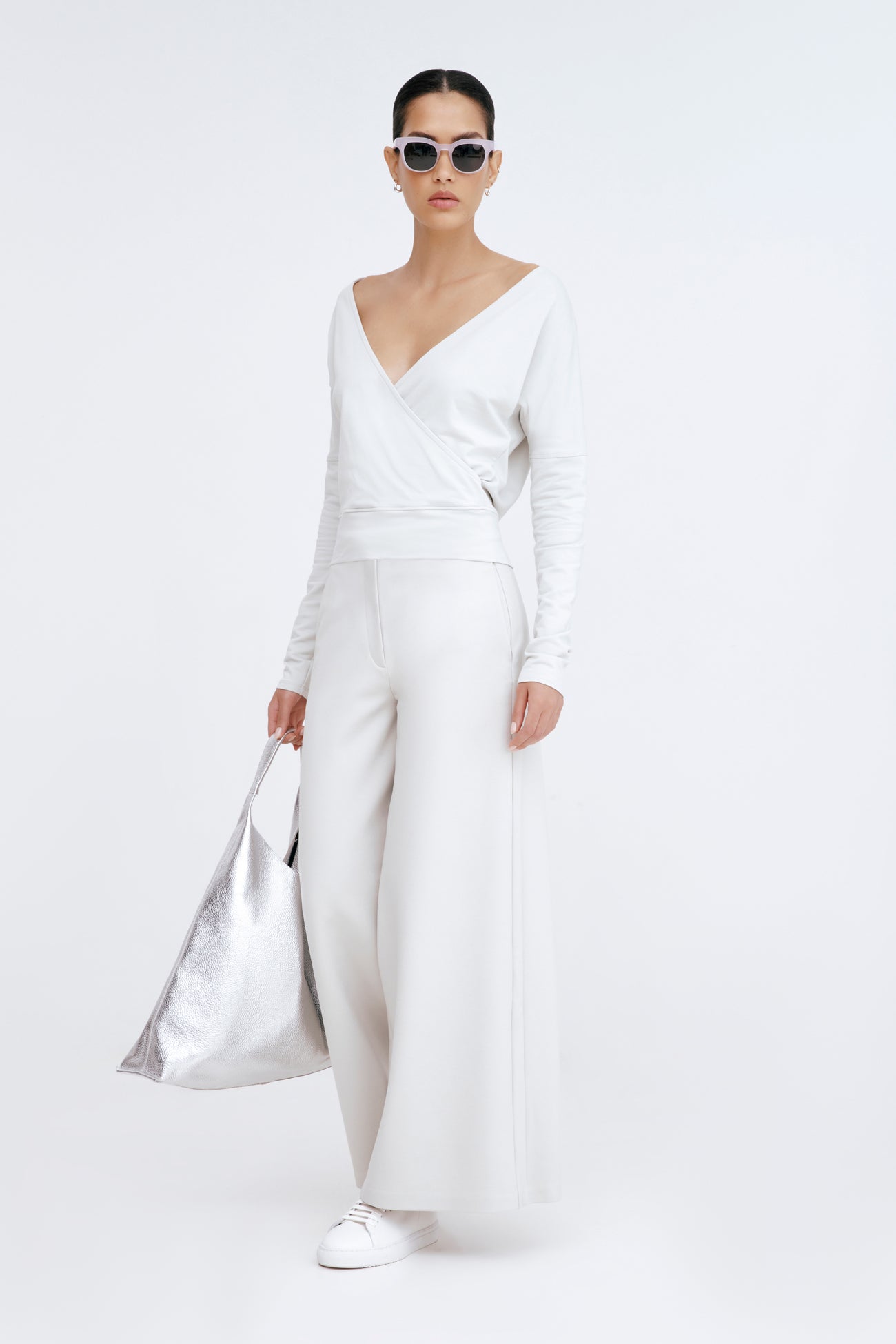 Claremont does all the legwork to keep your Monday-Sunday wardrobe polished. These relaxed wide-leg pants are fashioned from structured European ponte with a fly-front zipper and a wide waistband that rests comfortably at the mid-waist. Finished with functional pockets and a tuxedo panel to accentuate her clean lines.SPLIT