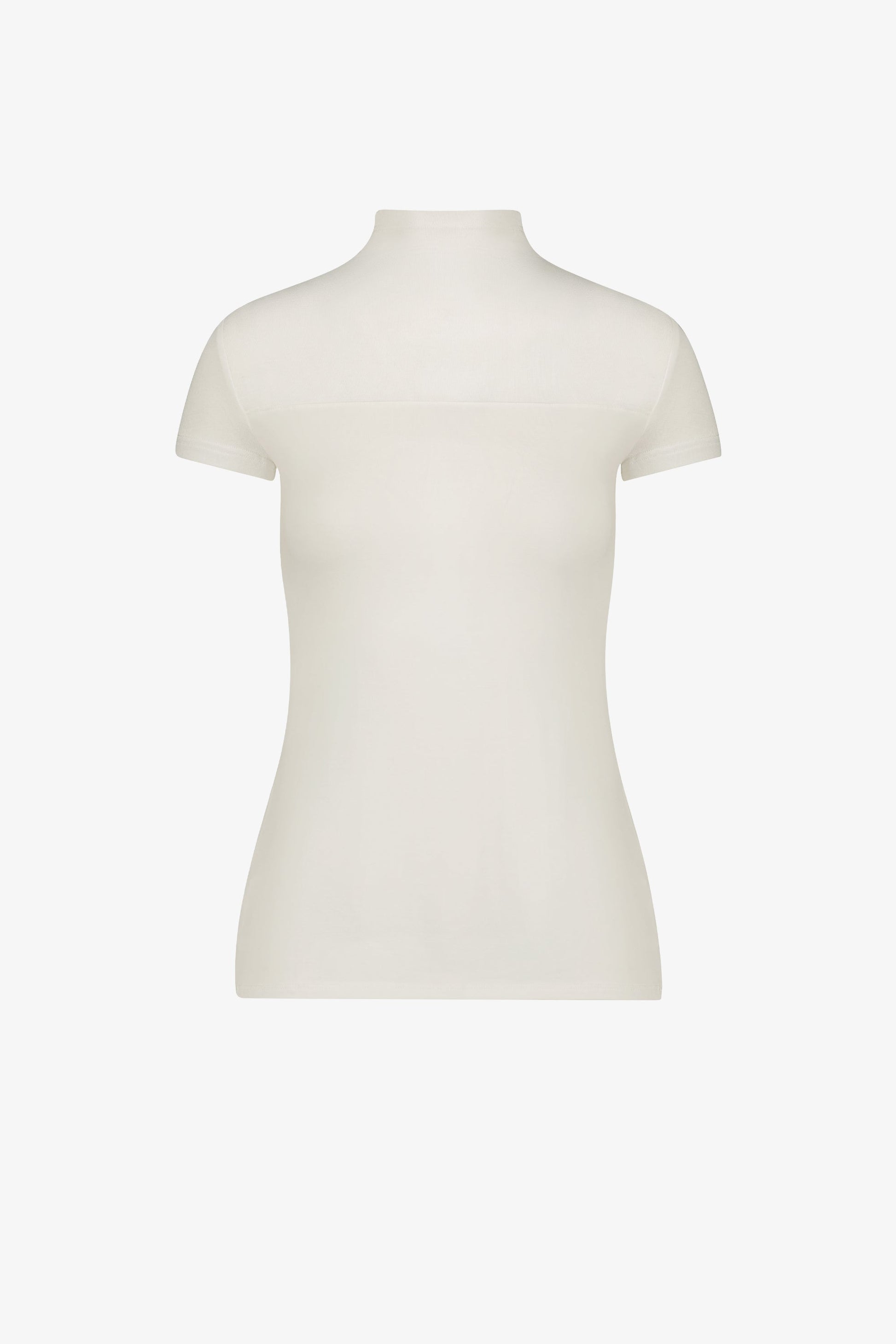 The perfect versatile top with edge. our Darcey combines a soft. high-stretch and sustainable European jersey body with a sheer European jersey mock neck and sleeves. Her ultra-comfortable. body-hugging fit makes pairing Darcey with your favorite pants or skirts easy. whether you're getting dressed for a night out or for brunch the next day.SPLIT