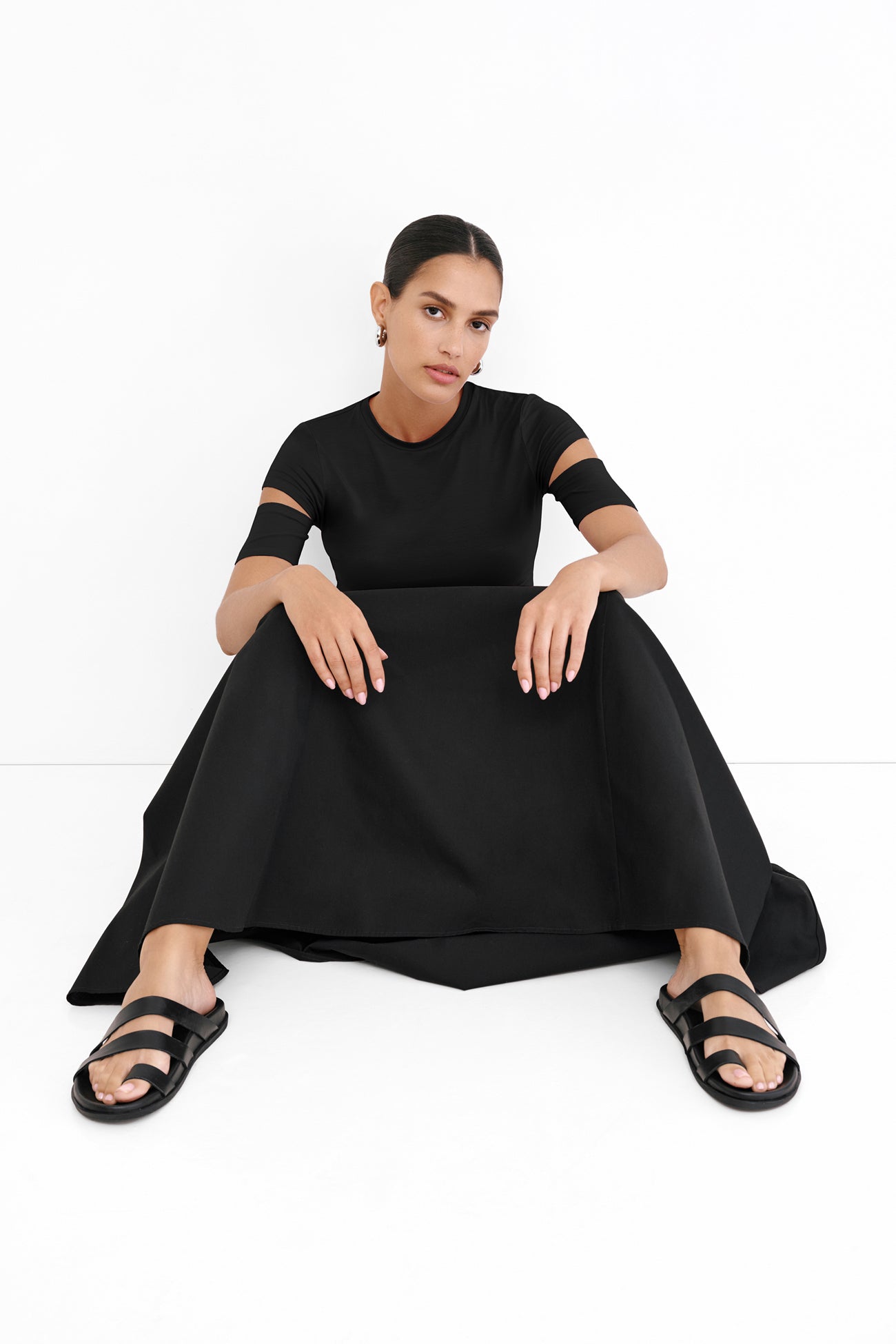 With slip-on ease and all-day comfort. Drew goes the distance. These flatform sandals in 100% European nappa leather feature ergonomic soles that follow the natural shape and movement of your foot. Two diagonal straps and a toe loop create a chic. no-slip fit to support your busy weekdays and casual weekends.SPLIT