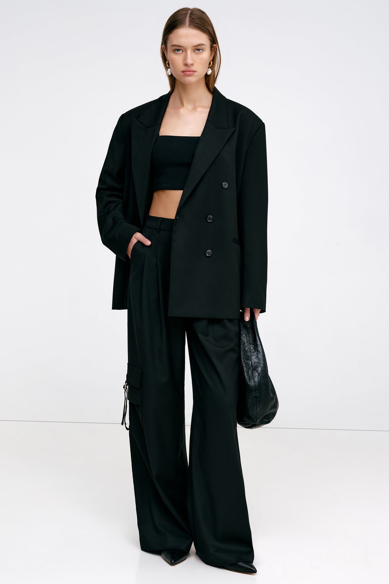 Polished practicality at your service. Our pleated Eli Pants are a mid-rise. wide-leg silhouette fashioned from polyviscose. so she stays fresh throughout the day. Complete with a zip fly and a statement cargo pocket—plus two front pockets at the hips. and two welt pockets at the back. SPLIT