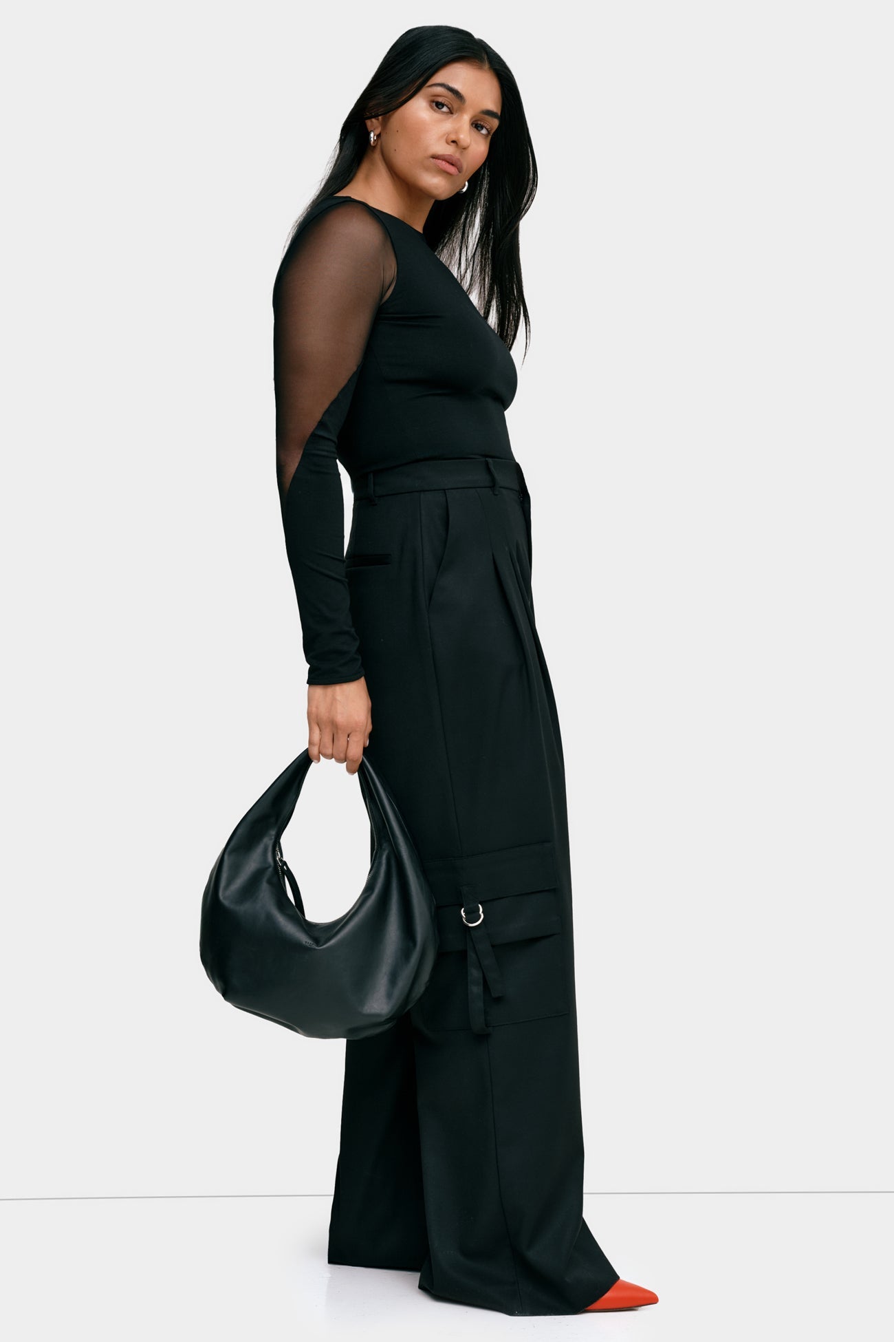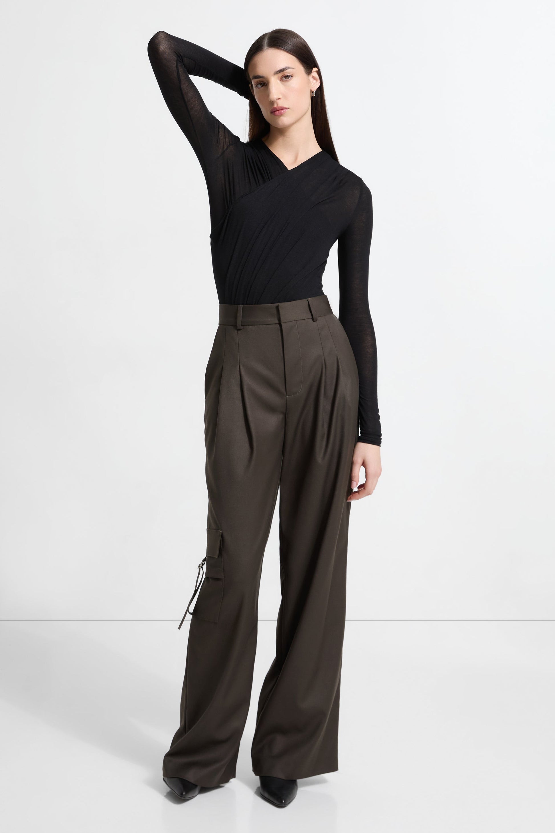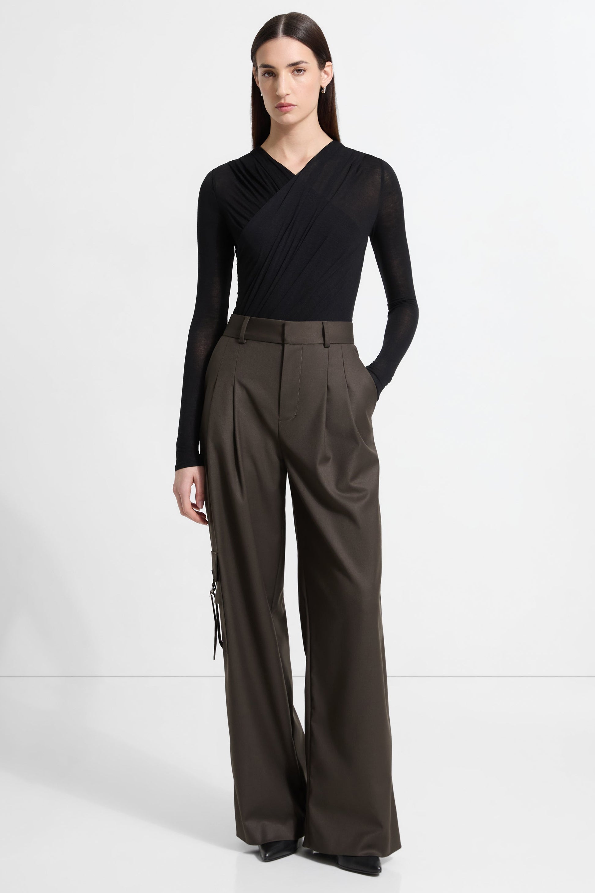 Polished practicality at your service. Our pleated Eli Pants are a mid-rise. wide-leg silhouette fashioned from polyviscose. so she stays fresh throughout the day. Complete with a zip fly and a statement cargo pocket—plus two front pockets at the hips. and two welt pockets at the back. SPLIT