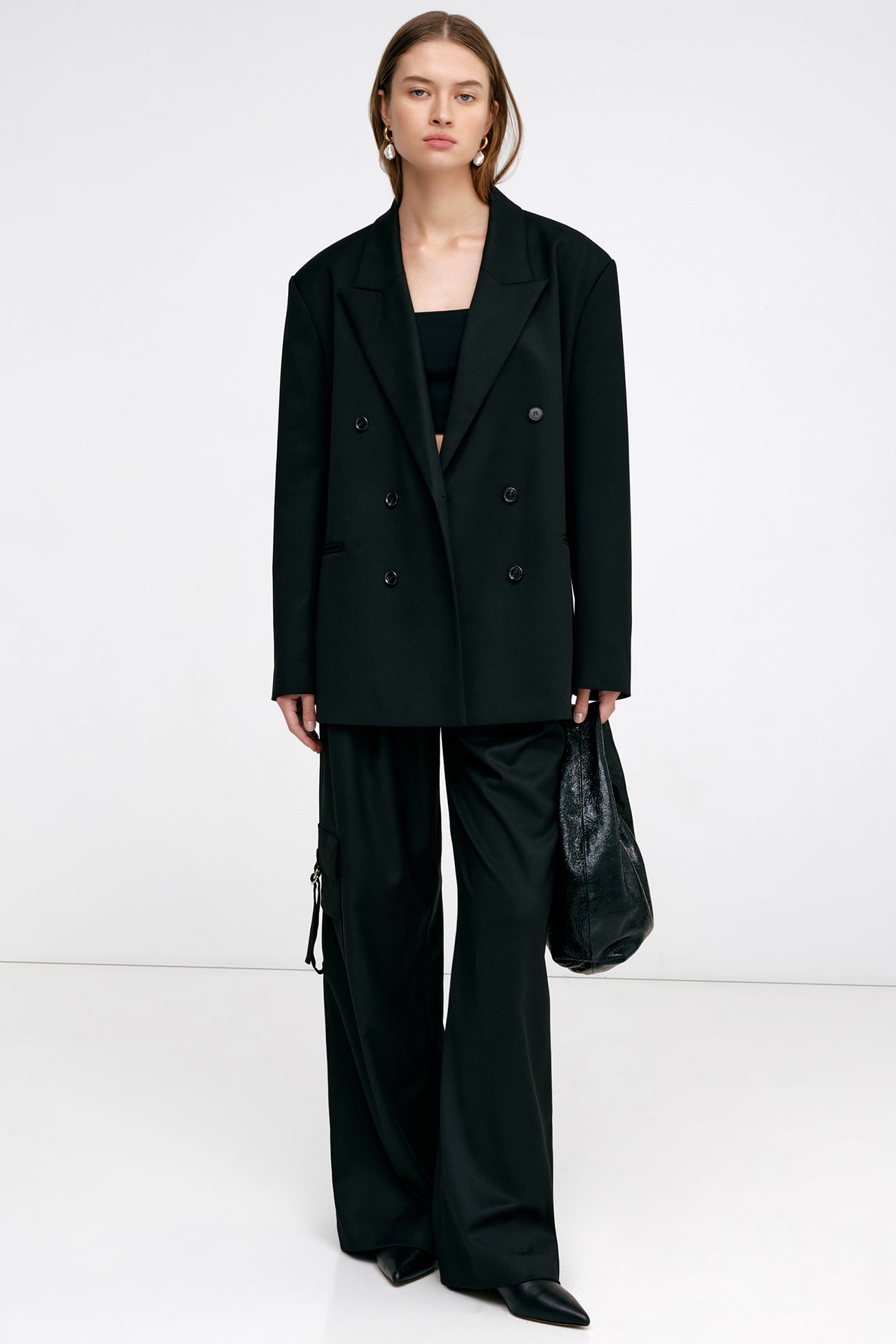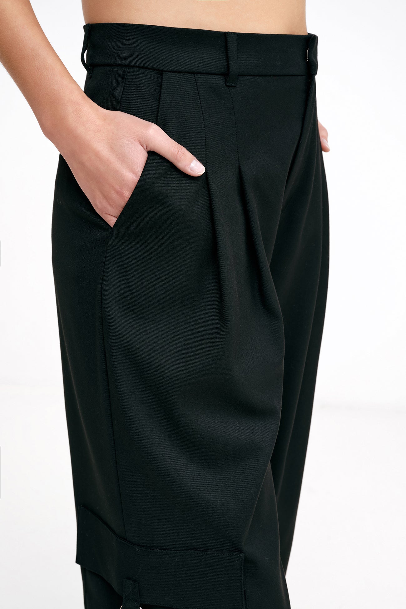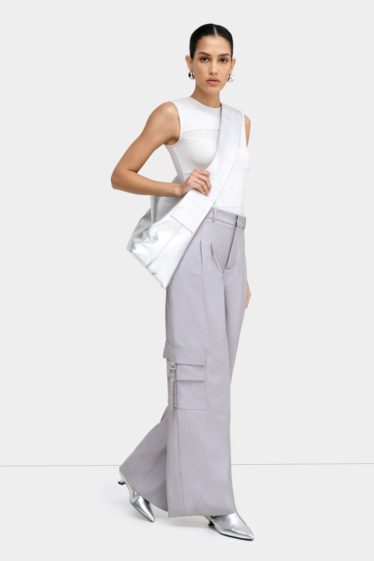 Polished practicality at your service. Our pleated Eli Pants are a mid-rise. wide-leg silhouette fashioned from polyviscose. so she stays fresh throughout the day. Complete with a zip fly and a statement cargo pocket—plus two front pockets at the hips. and two welt pockets at the back. SPLIT