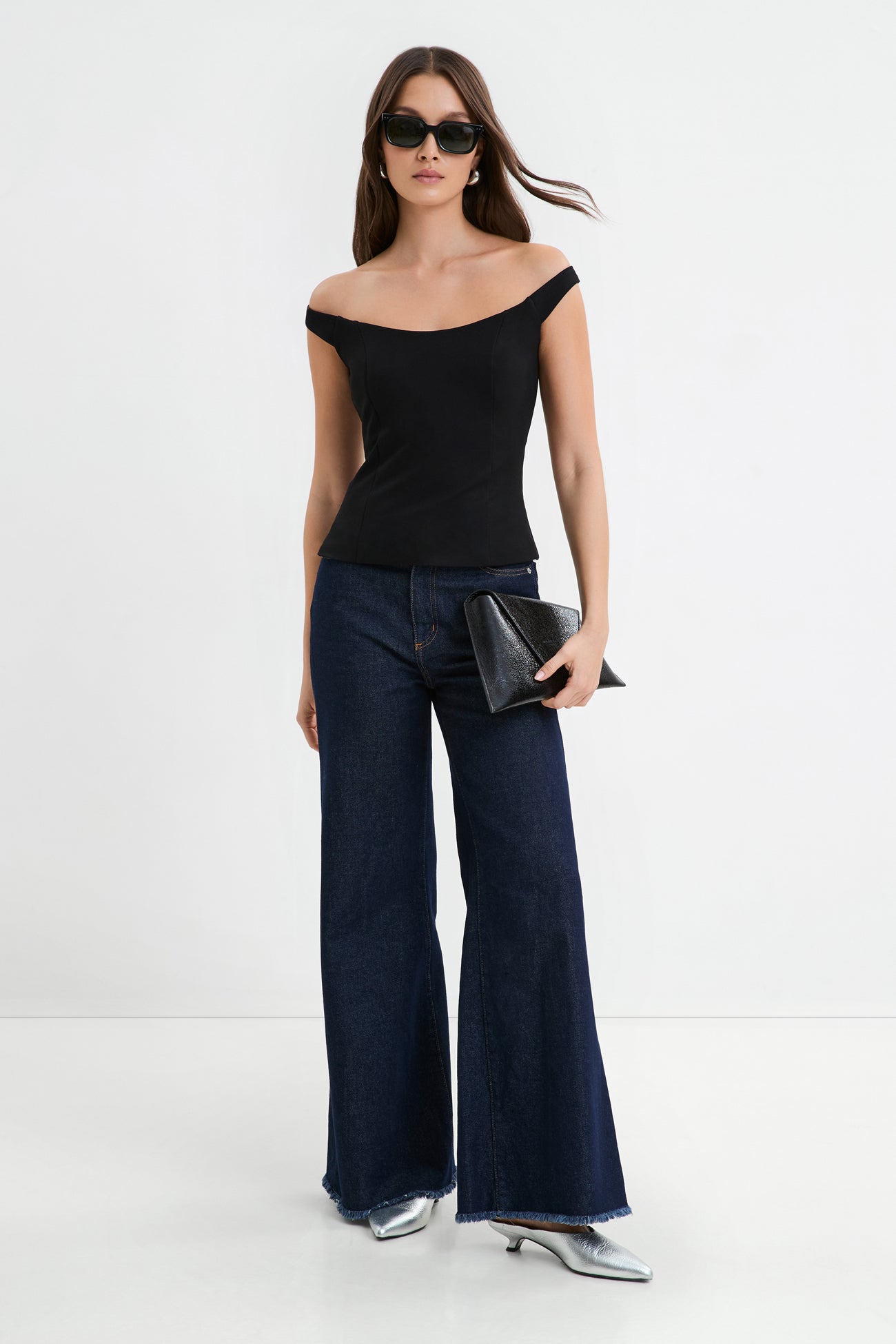Harking back to the golden era of Hollywood. our Eliana Top sets a flawlessly feminine mood for any setting—casual to formal. Her structured. mid-stretch European ponte fabric and princess seams offer a tailored fit. while Eliana's straps are worn off-shoulder (with no slippage) to reveal a classic curved neckline silhouette. A hidden center-back zip and hook-and-eye button closure offer easy on/off.