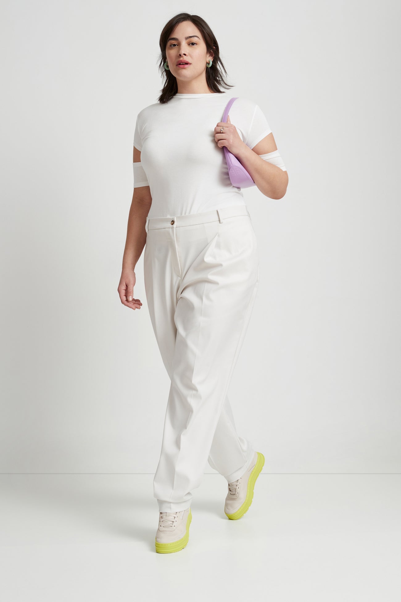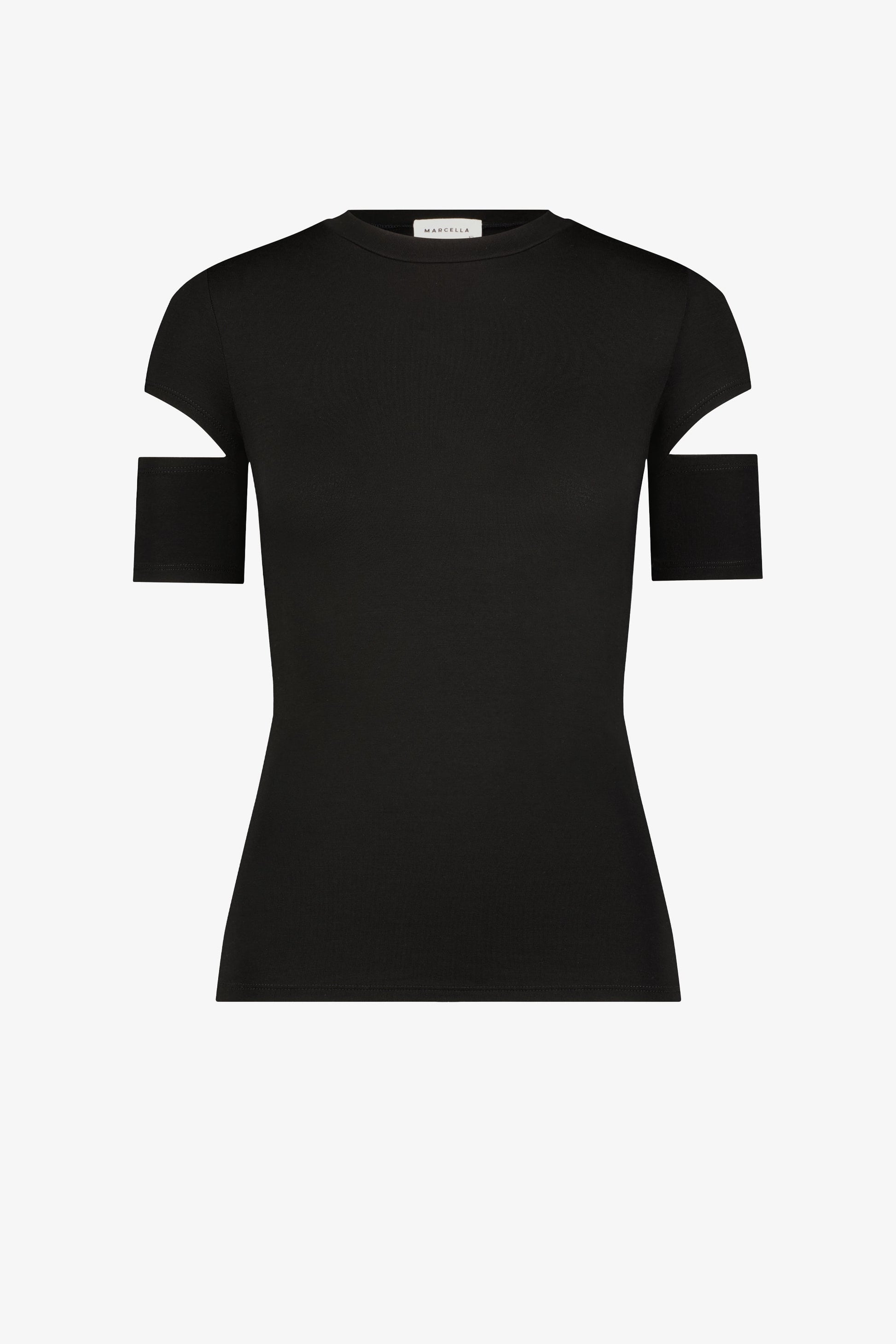 Meet Esme. our essential. versatile top with a twist. She features a round neck and dual cutouts at the sleeves that give her the edge you crave. Fashioned from our silky soft. high-stretch and sustainable European jersey. she's perfect for dressing up or down for that uncomplicated yet hypnotic look.SPLIT