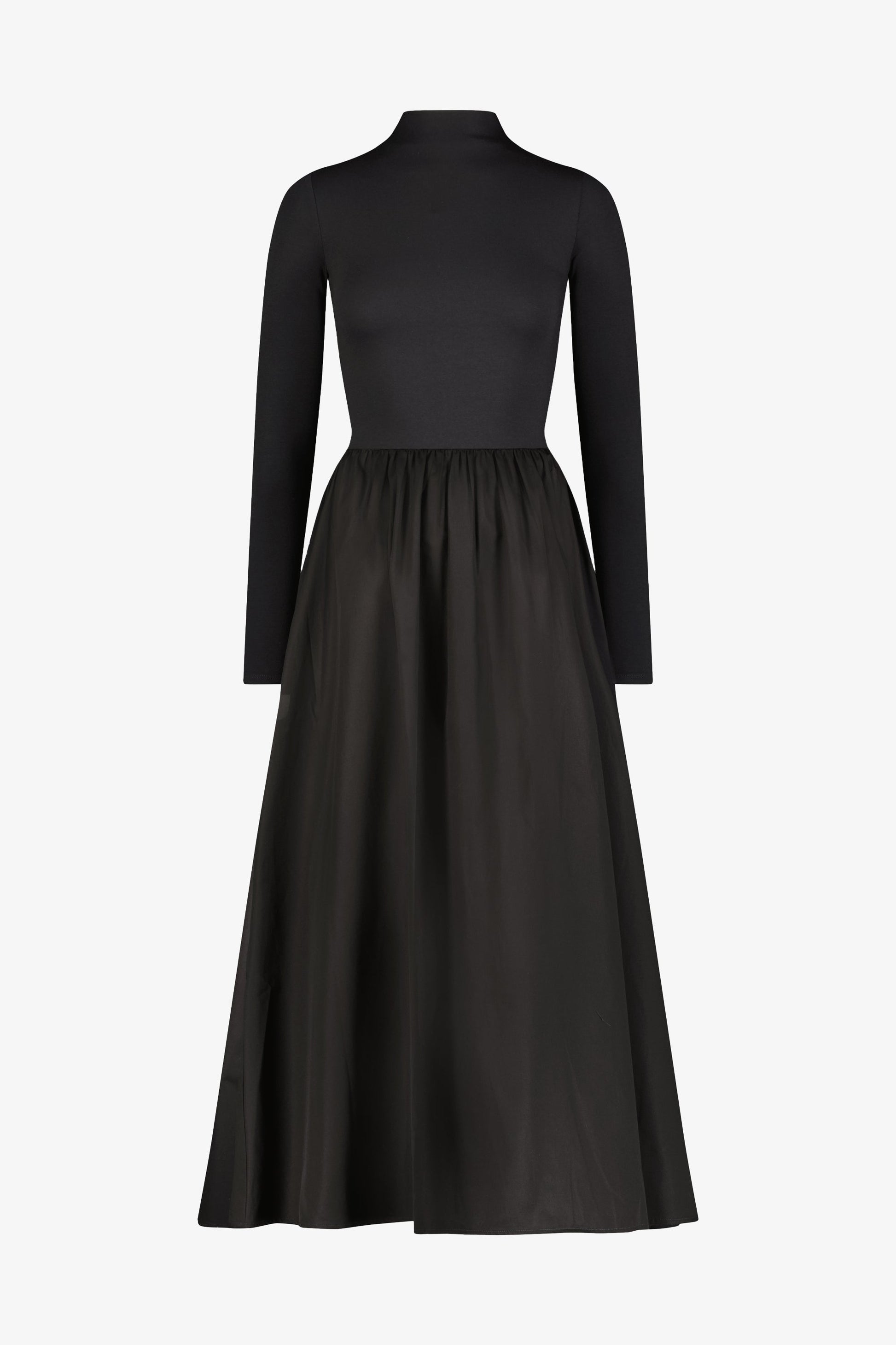 The seasons may change. but your favorite silhouette that flatters all shapes doesn't need to: we've remixed our beloved Clara Dress for cooler temps! Fillmore's top is cut from lightweight. breathable European french terry with long sleeves. a mock neck and a center-back zip. Her flowing skirt (with pockets) is from crisp European poplin cotton. The combination makes for an ultra-comfortable. all-day-wear dress with endless styling options (one suggestion: try her with the Ophelia Belt. as styled here on Maritza).
