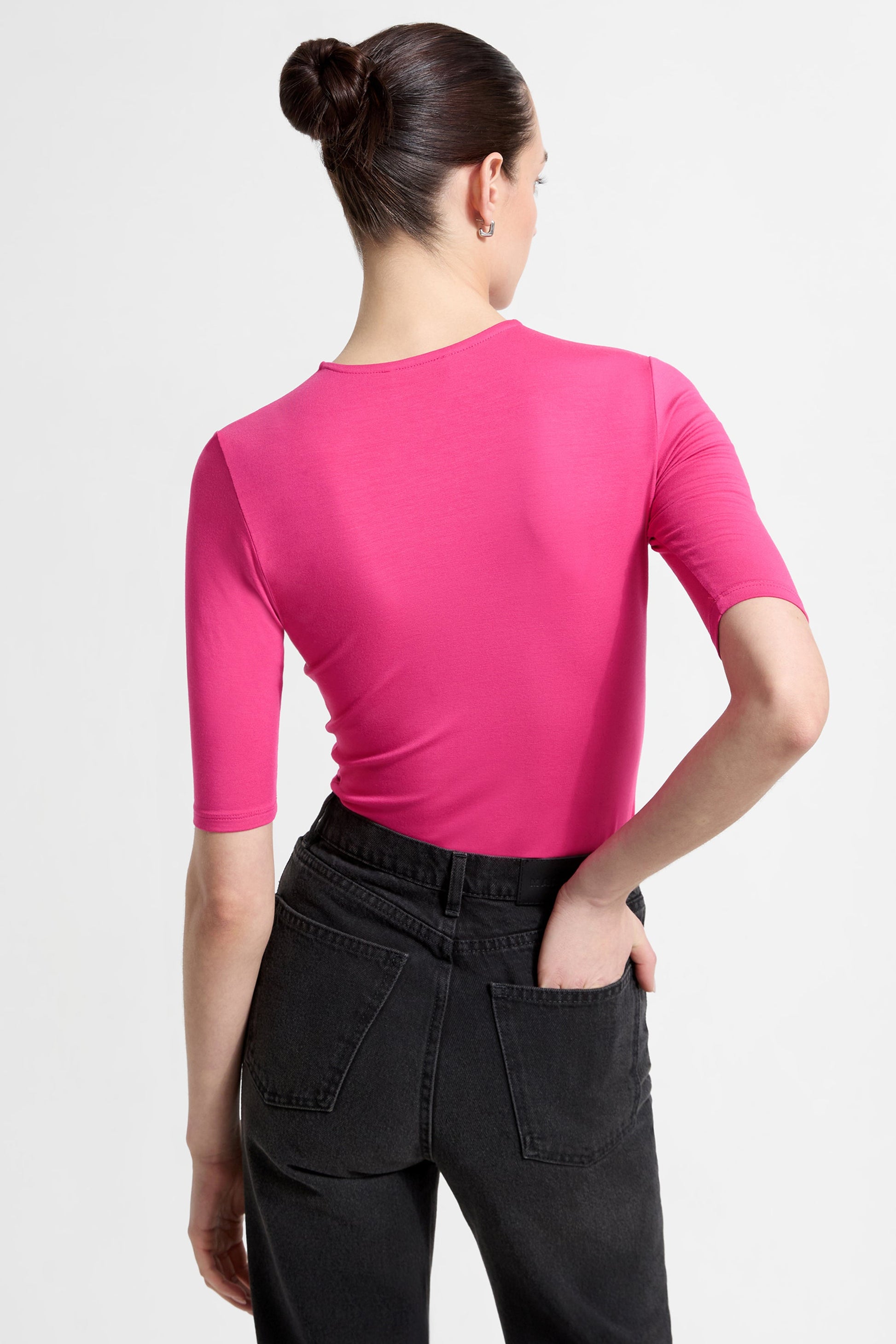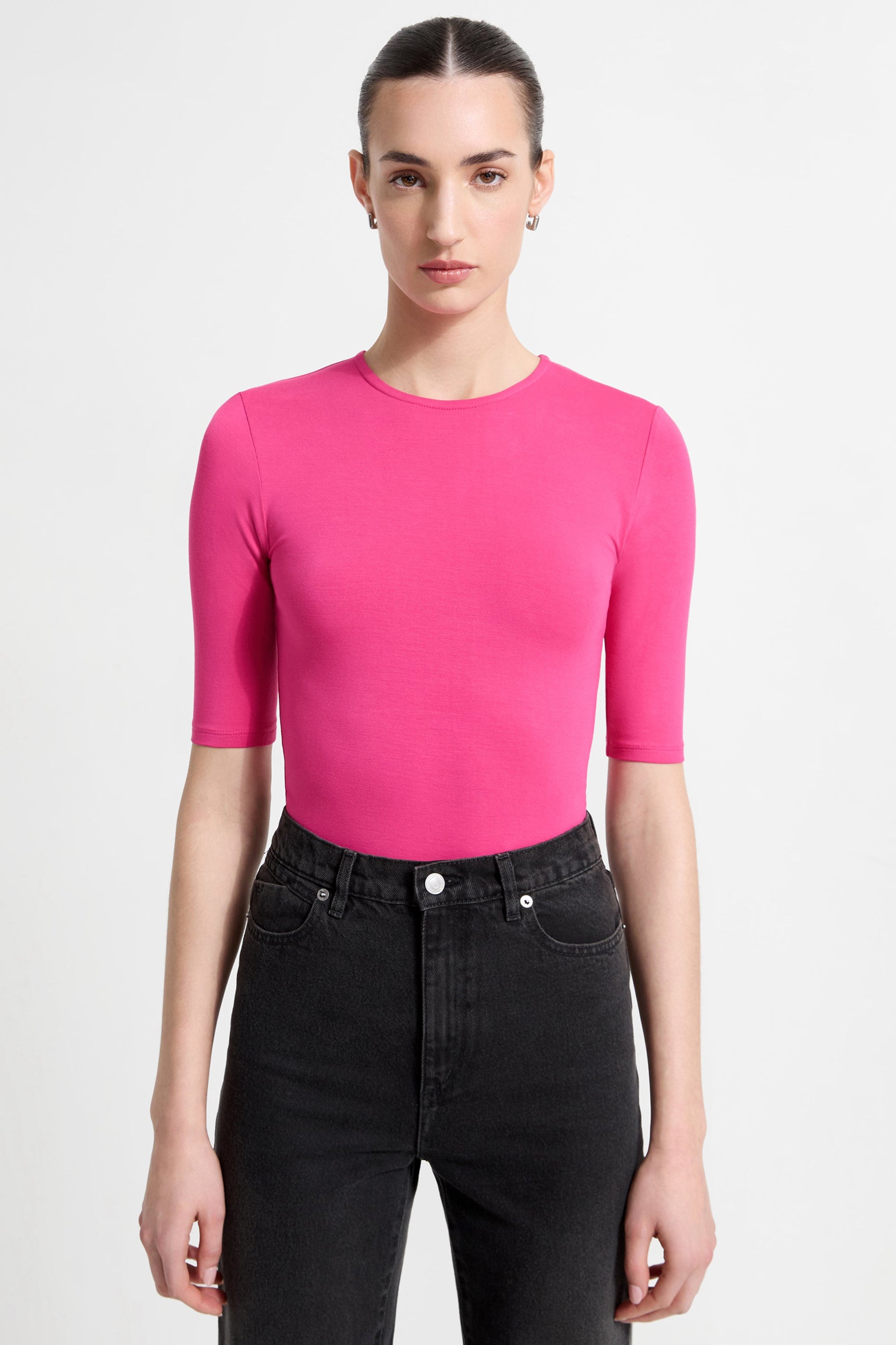 Meet this season's versatile staple: the Frankie Top. Perfect for all-day wear. she's the effortlessly sleek piece for your capsule wardrobe with a rounded neckline and mid-length sleeves. Crafted from our beloved high-stretch and sustainable European jersey. Frankie smoothly tucks into jeans and layers like a dream.
