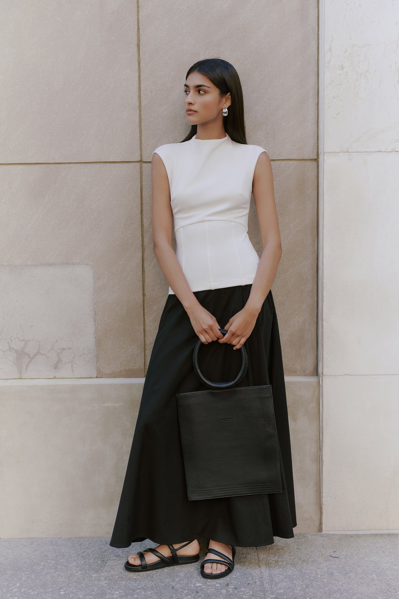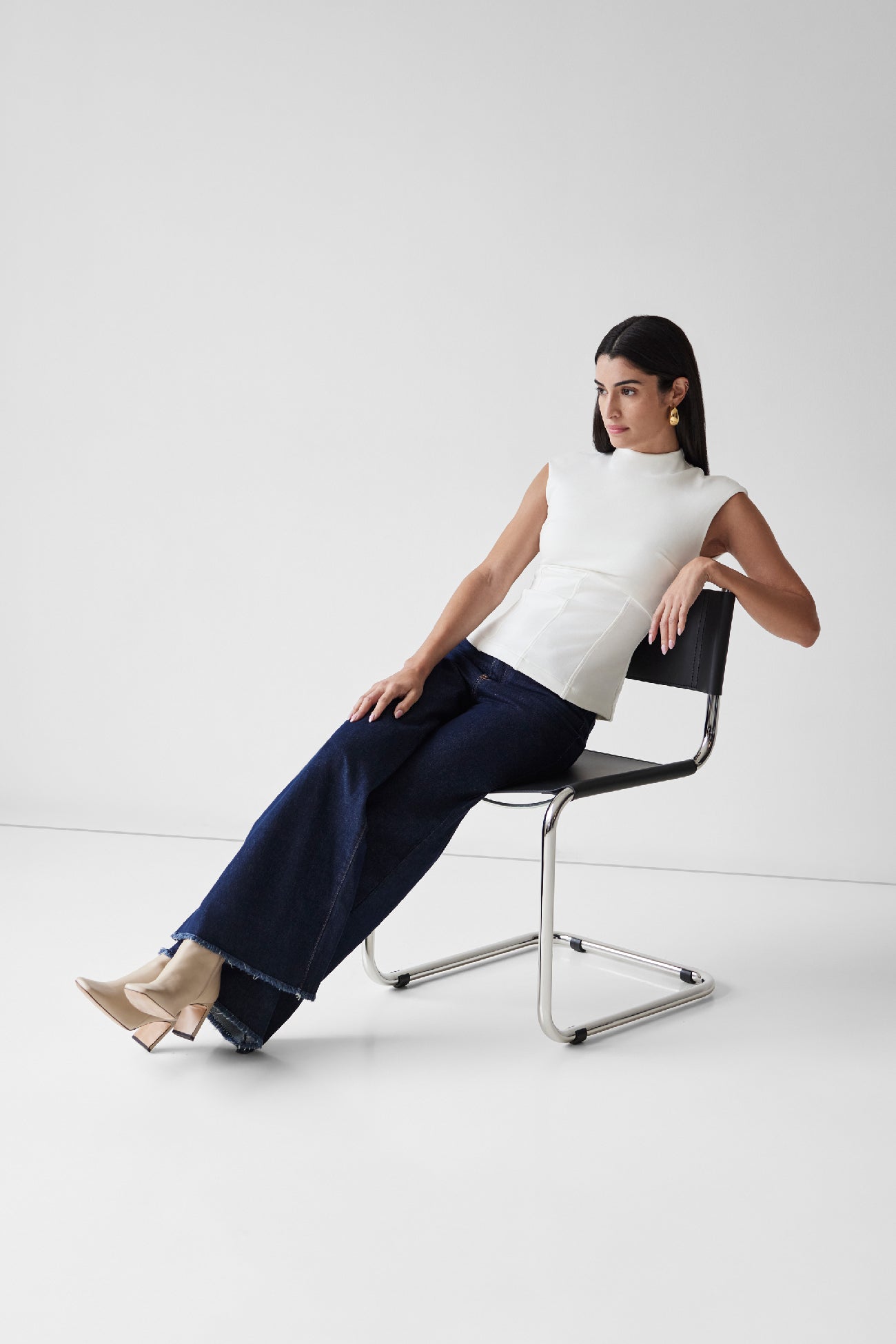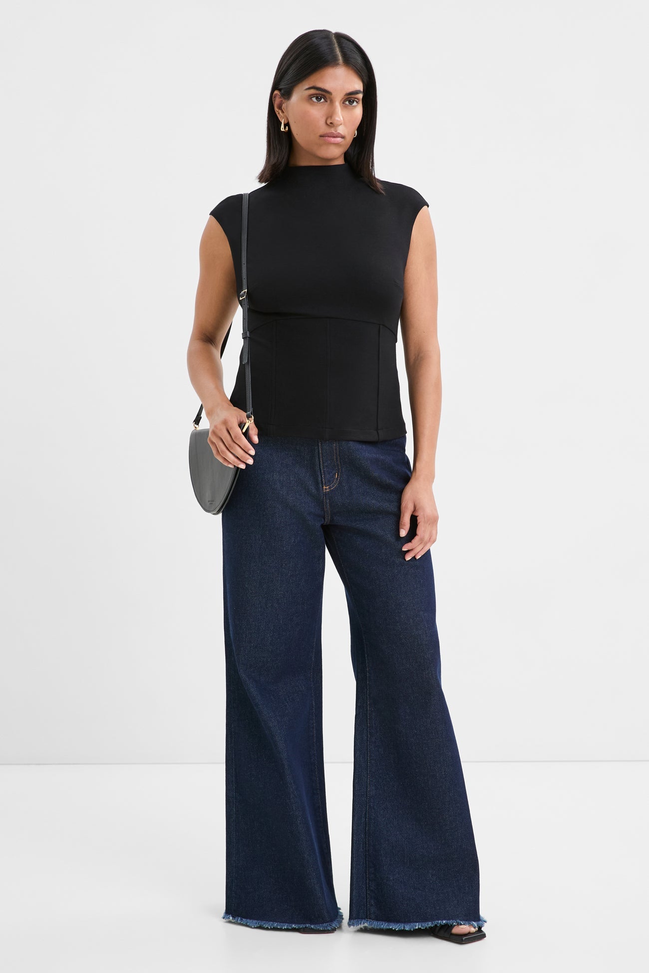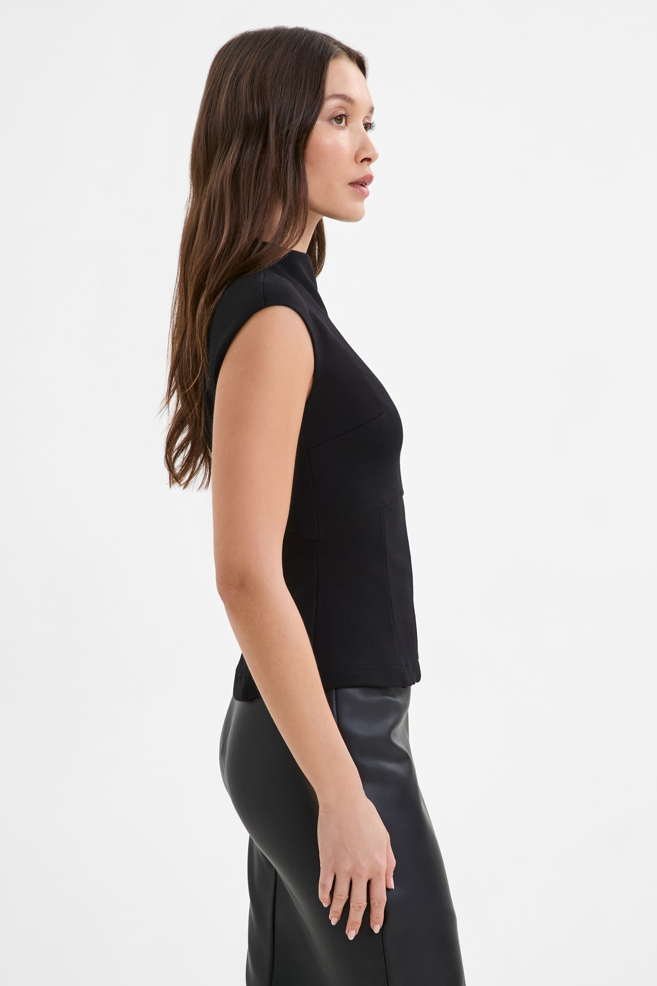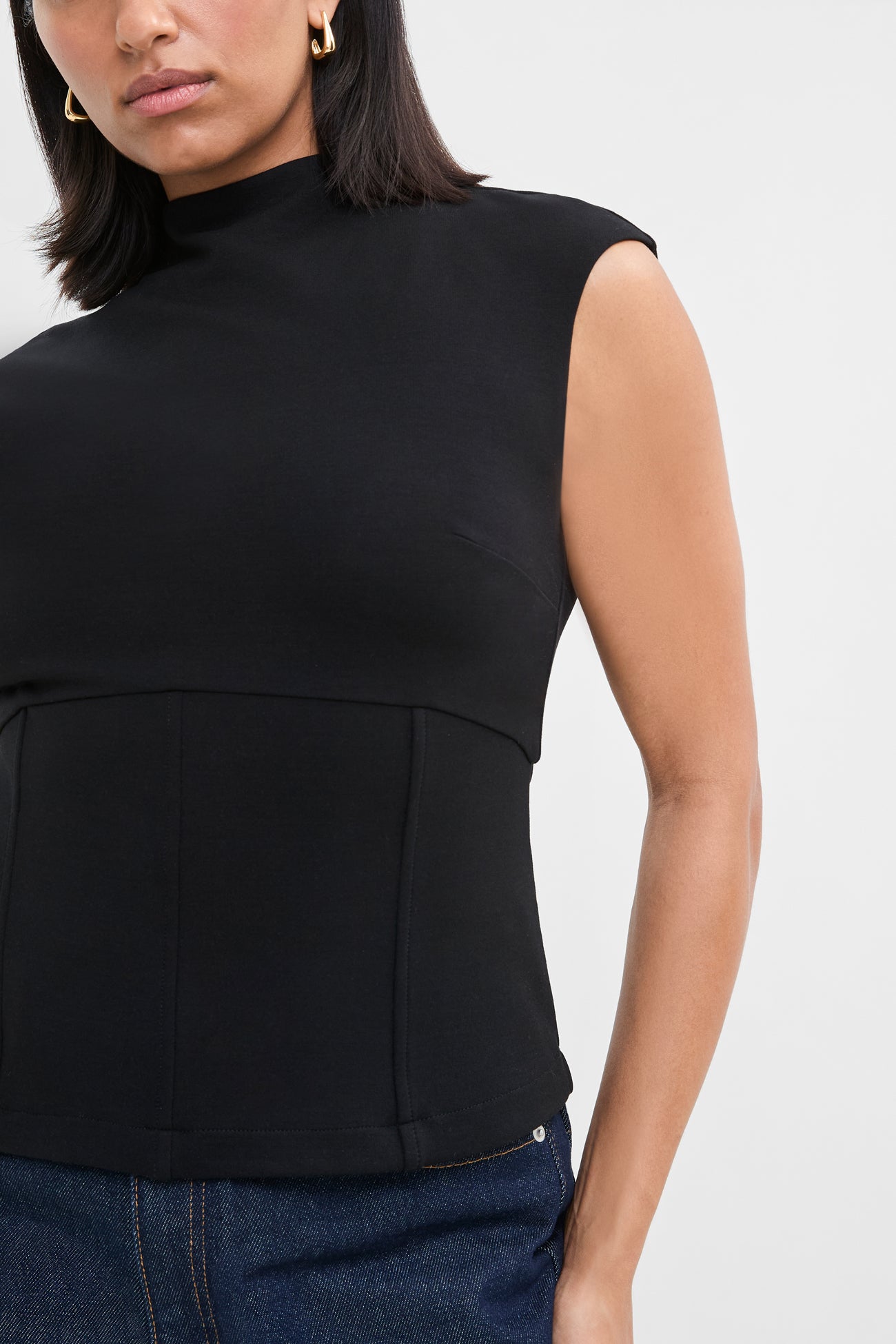 Hello. sophistication. Our Haru Top features a high neckline with corset-inspired seam detailing at the bodice for a sharp silhouette. Breathable. mid-stretch European ponte and partial. soft mesh lining enhance her body-loving fit for work or play. Finished with a hidden center-back zip for easy on/off.SPLIT