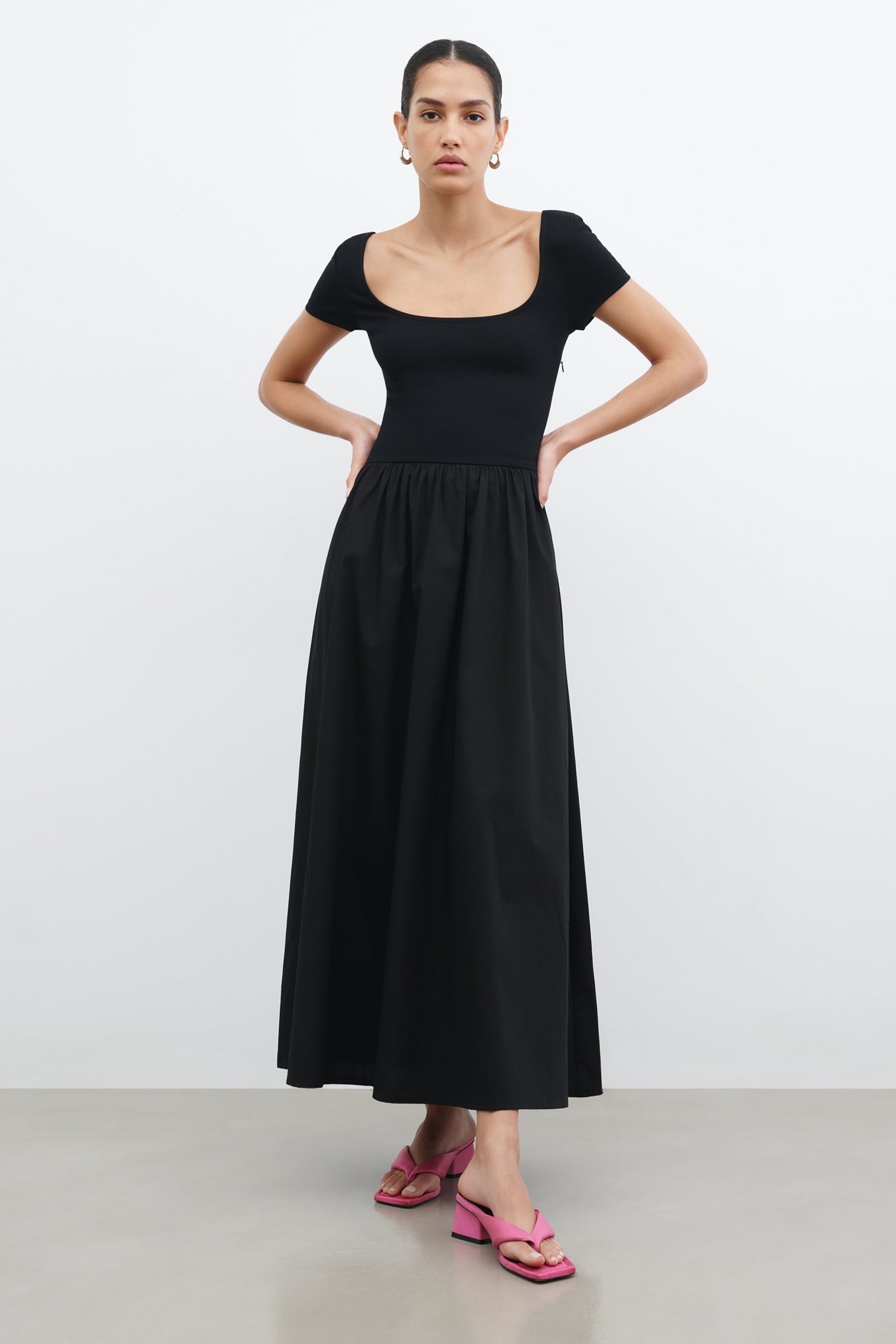 - Astrid wears Holland in black and in hot pink. Yada wears Holland in Black.