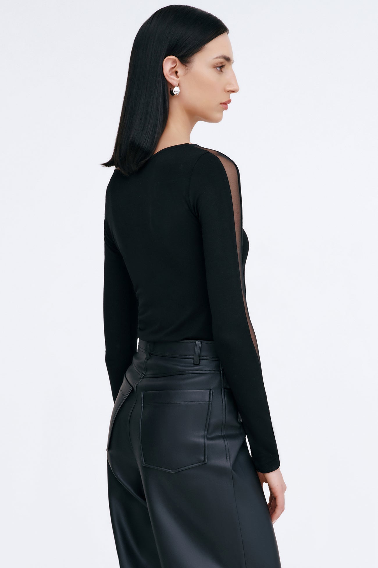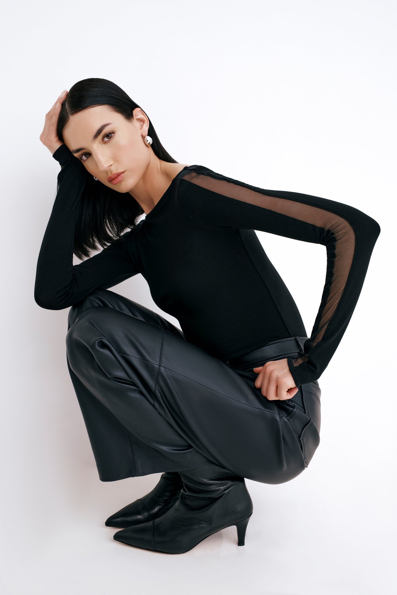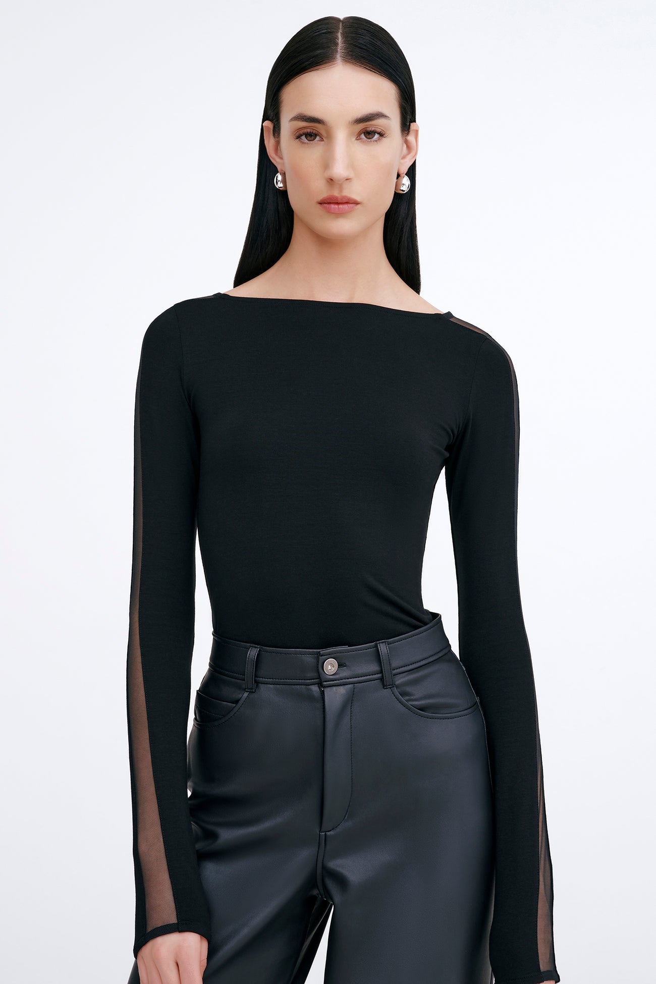 Bold in her minimalism. dramatic in her impact. Our Illa Top's clean boatneck silhouette is tailored from soft. high-stretch and sustainable European jersey to fit just right and remain comfortable all day or night. A soft. luxe mesh strip draws the eye down the length of each arm. like modern brushstrokes against a sophisticated canvas.SPLIT