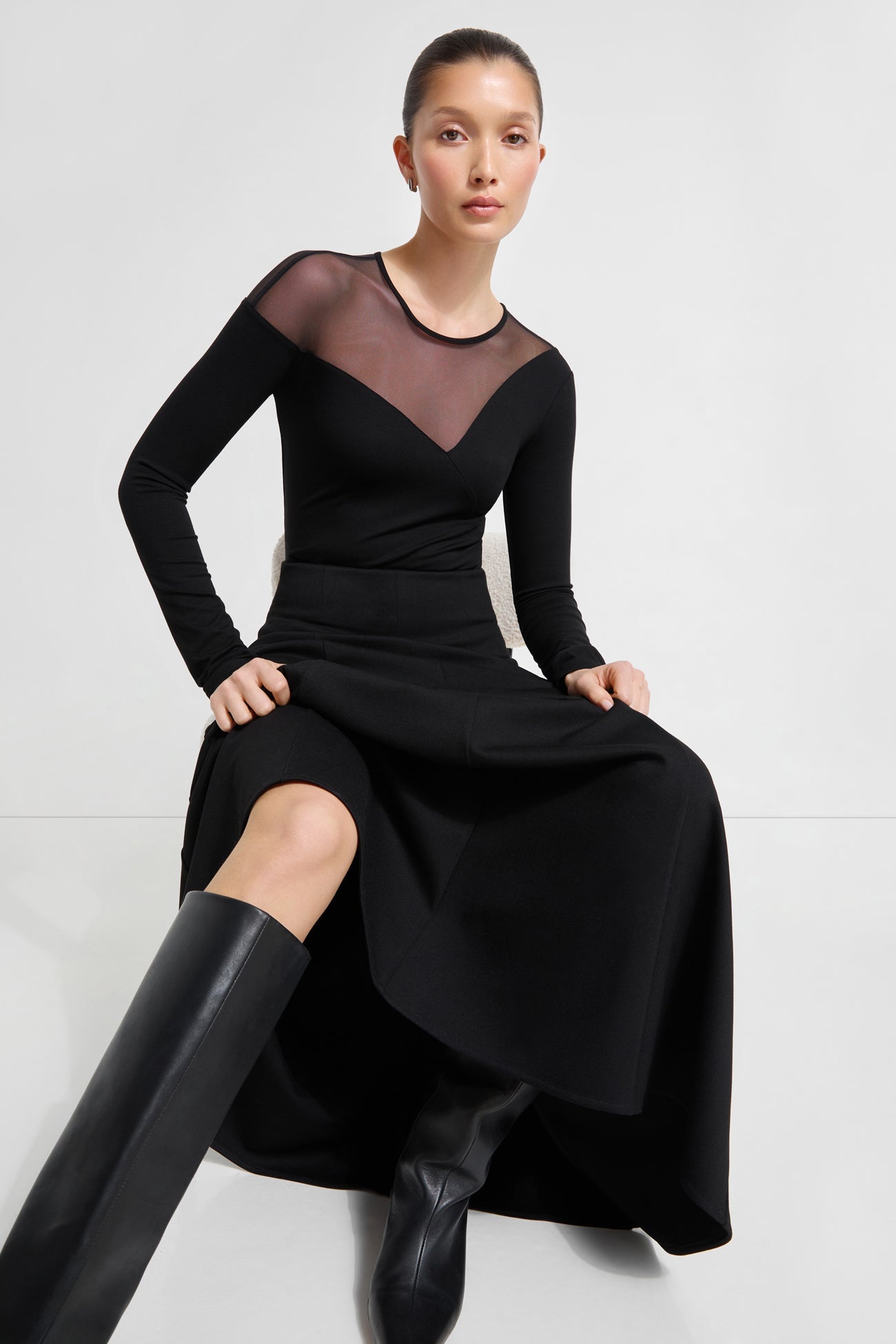 Our India Skirt is all about smooth lines and endless pairings. With elongating vertical seams and a high-waist cut with a wide waistband. this ankle-length design exudes an easy-yet-elevated appeal. Crafted from structured. mid-stretch European ponte. she slips on effortlessly thanks to a hidden zip and hook-and-eye closure. She's always comfortable and always crisp—perfect for office days and off-duty ease alike.SPLIT