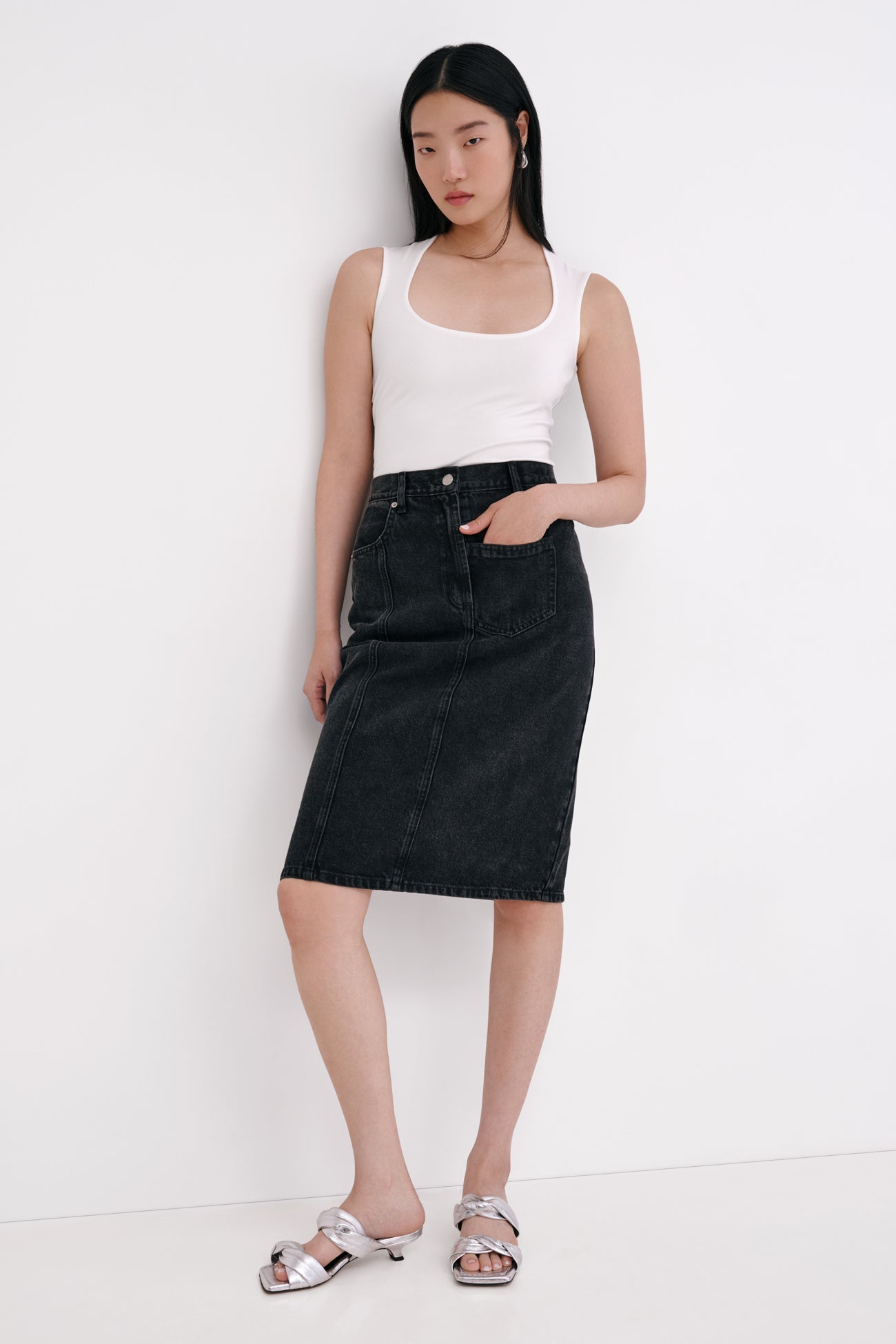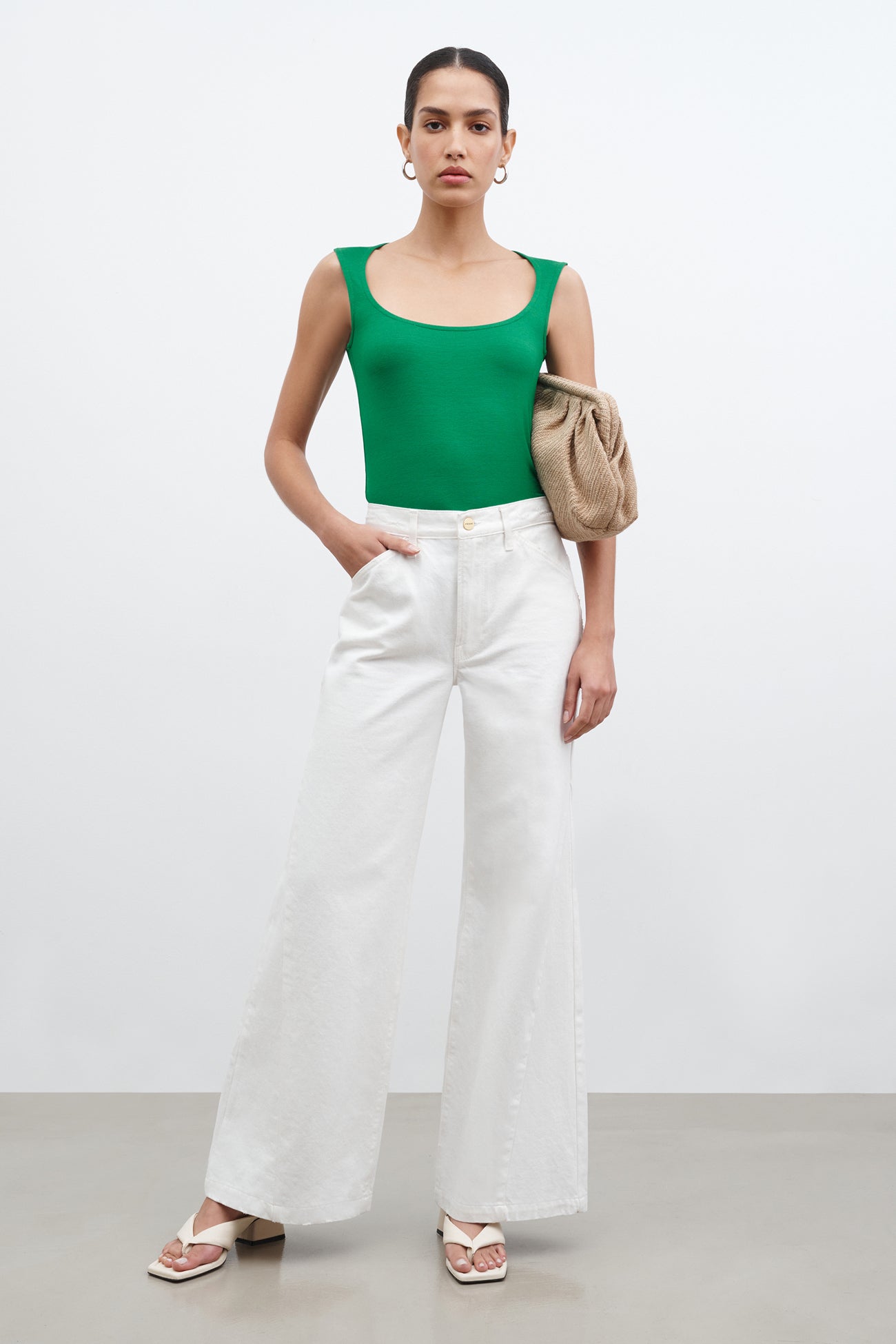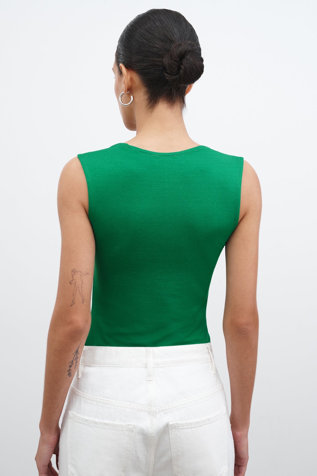 Flattering and feminine. our Jennie Top is a study in curves. featuring a delicate scoop neckline with elegant. rounded straps. Fashioned from soft. high-stretch and sustainable European jersey for a hugging fit. Jennie's as comfortable as she is versatile—wear her with jeans for a classic day look or with faux leather for elevated edge during the evening. SPLIT