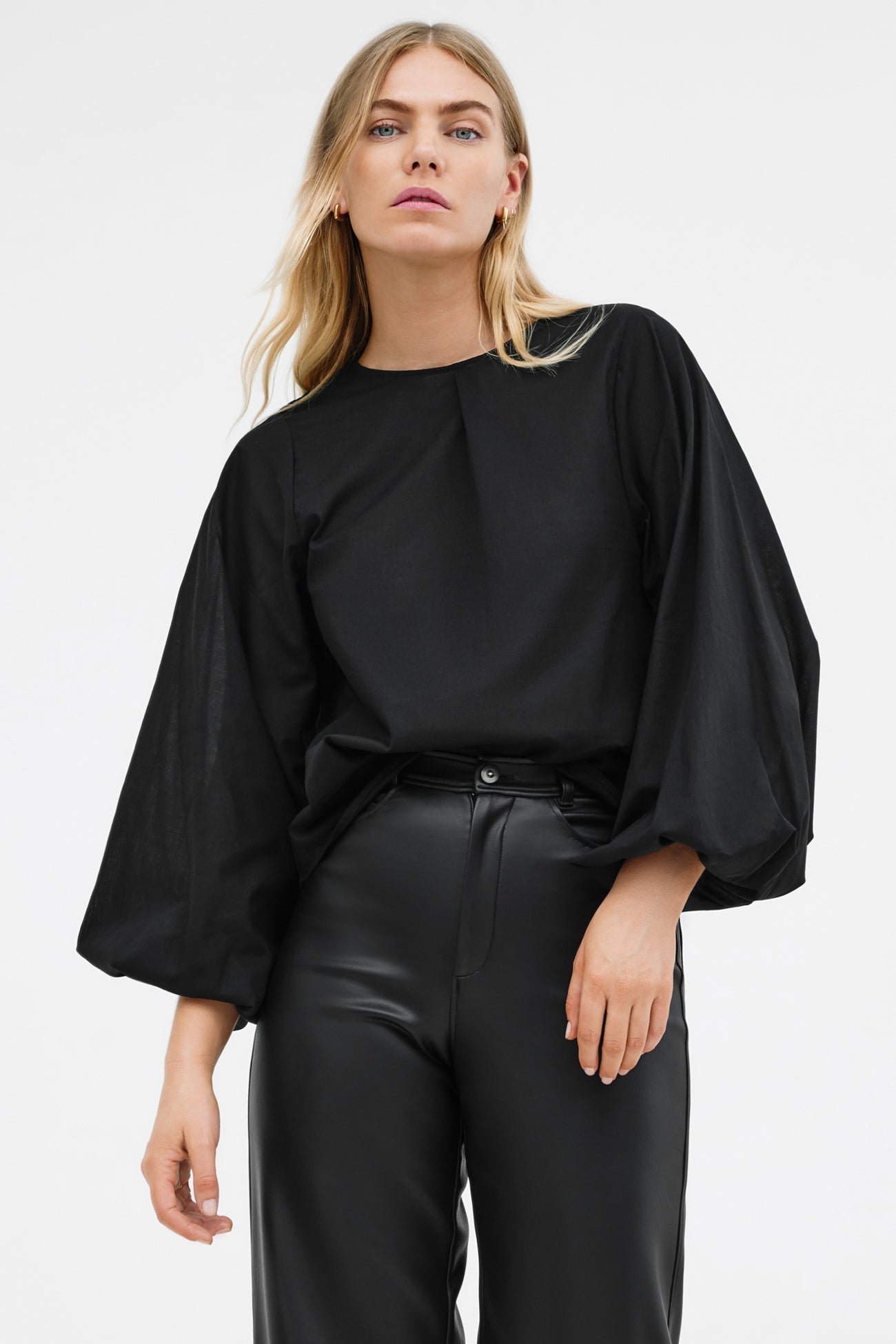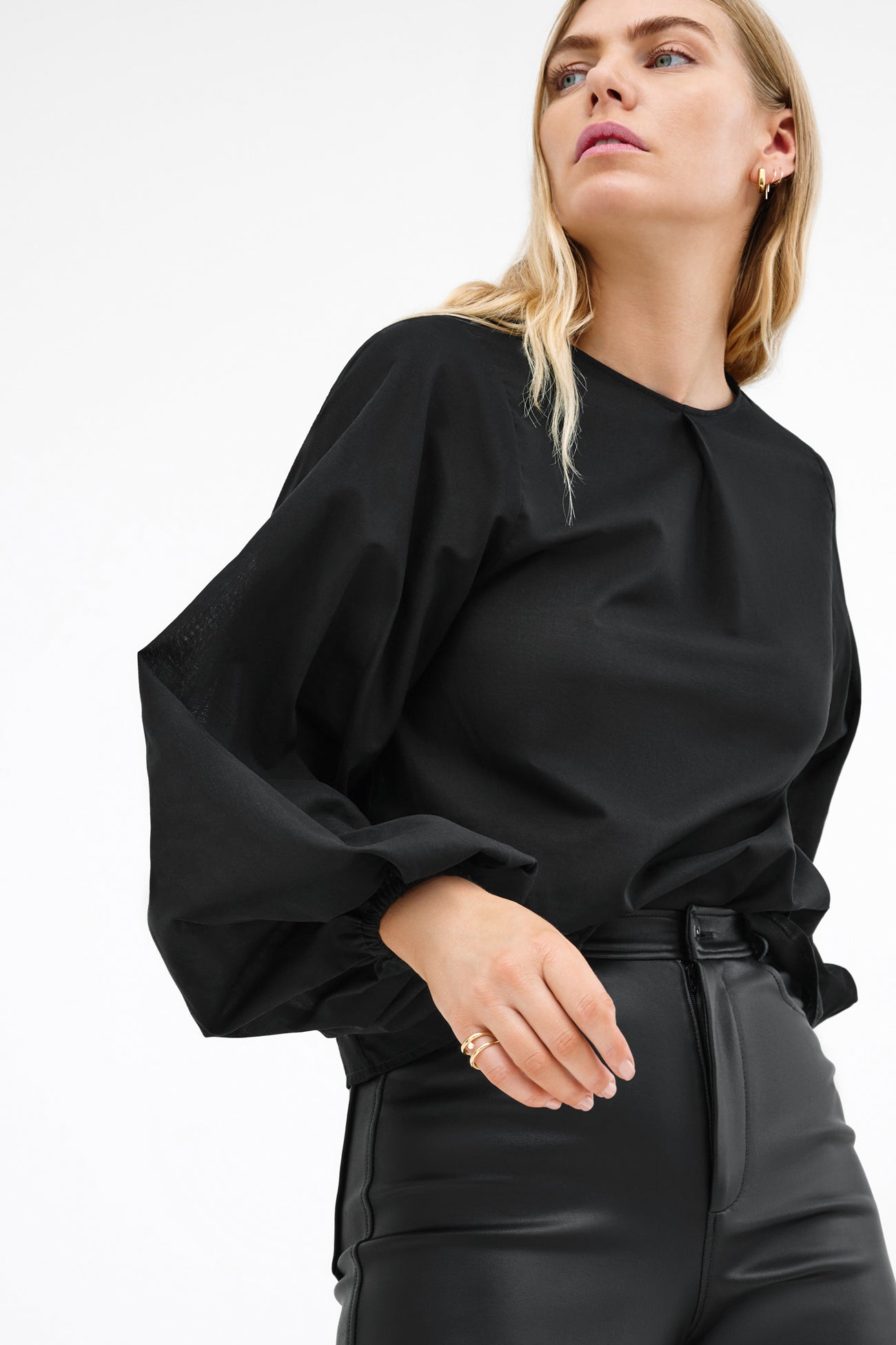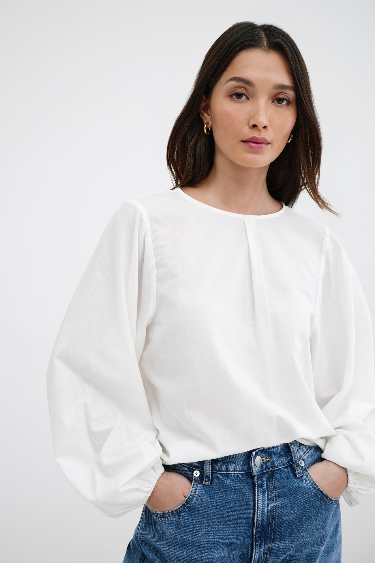 Our Joyce Top takes your style straight to cloud nine. Crafted from lightweight 100% European cotton voile. she presents a blissful silhouette finessed with crisp drapes and billowy sleeves. plus a classic round neck and a decisive pleat at the center front. Breathable and smooth against the skin. Joyce transitions between all scenes. styles. and seasons with grace.SPLIT