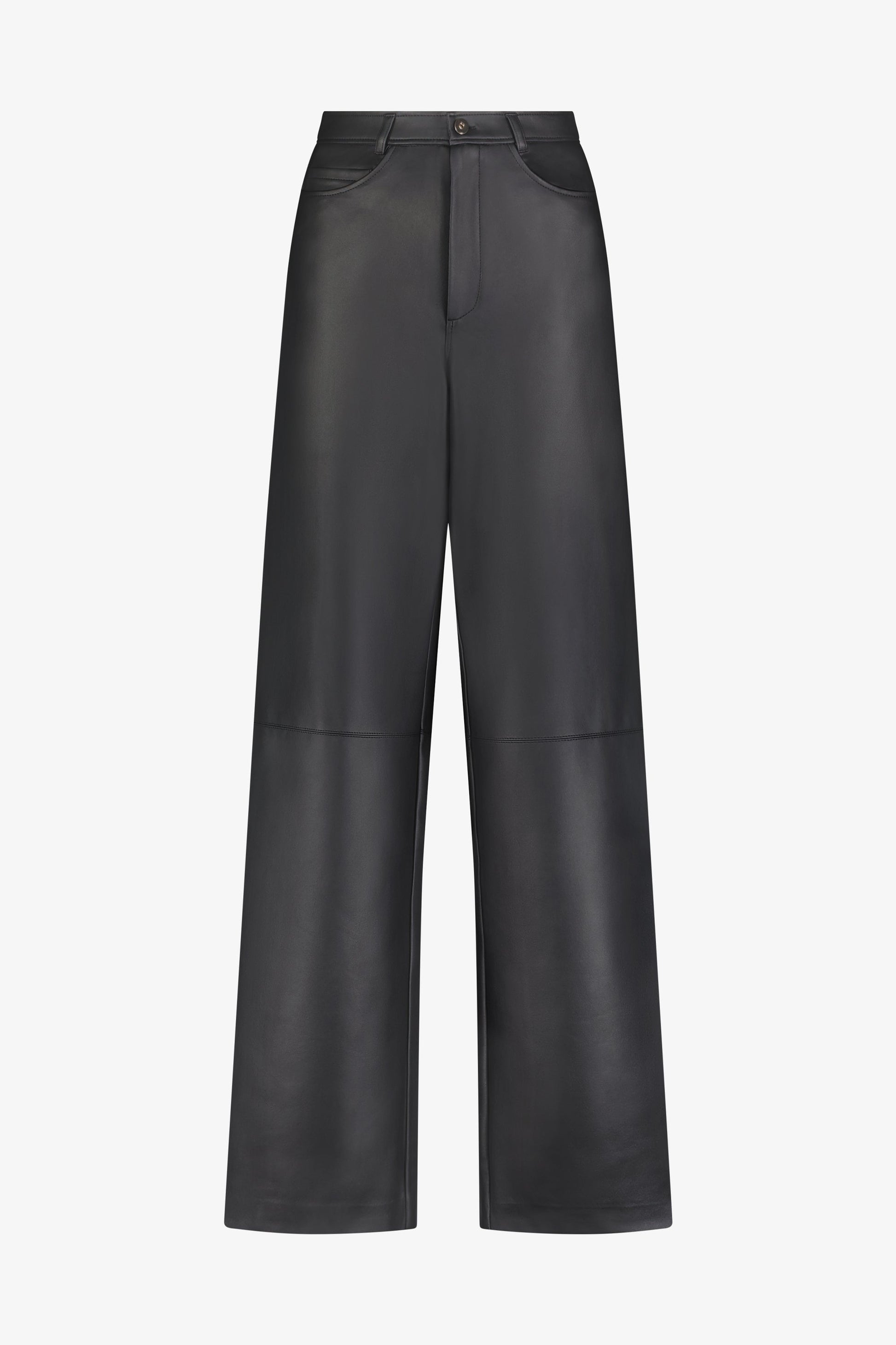 A force of nature in stretchy faux leather with a high-sheen finish. our Julien Pants offer a luxe feel to any look. Perfect for year-round wear. we've designed Julien with a wide-leg. high-rise cut and a distinctive horizontal seam at the knees. She'll elevate wherever and whenever you wear her.SPLIT