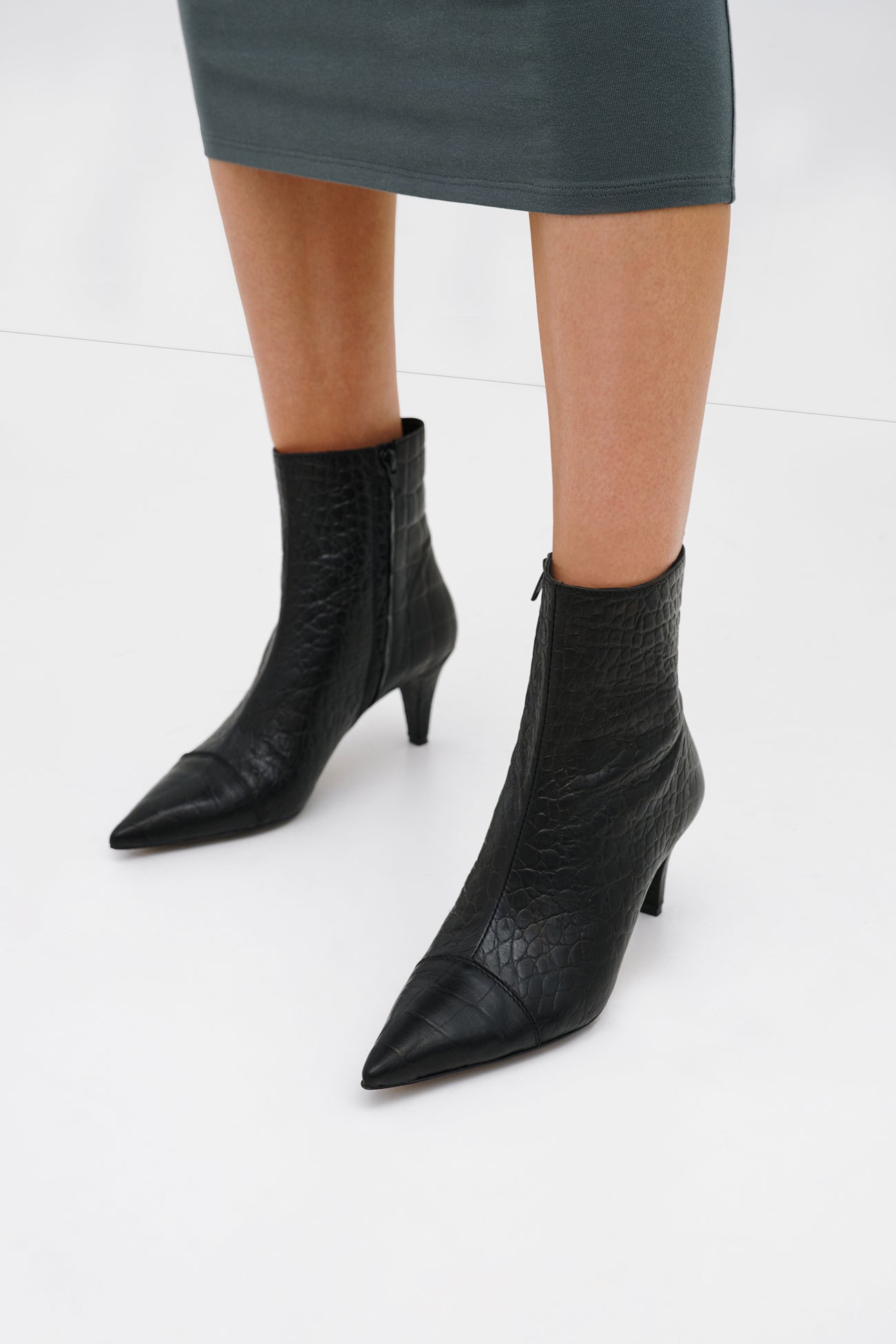 When you know. you know—and we know our Kaden Boots are literally on point. With a skinny kitten heel. pointed toe and ankle height. these boots are not just made for walking—they're for the dance floor. too. Handcrafted from Italian leather with a subtle zip closure. our Kaden Boots will elevate any look for day and night alike.SPLIT
