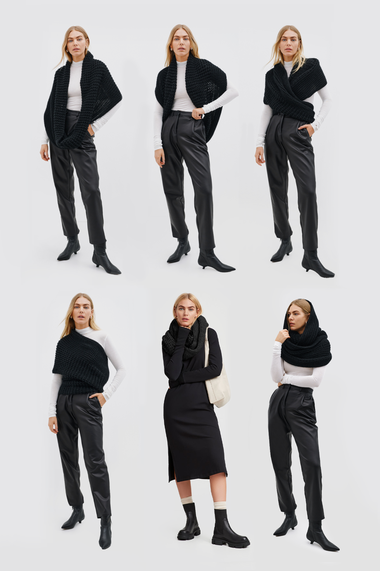 Meet London. our beloved. oversized chunky infinity scarf—an essential accessory for any chilly day. Cozy and soft. she's knit from European wool-blend yarns sourced from France and Italy. giving London a luxury feel similar to cashmere that's easy on sensitive skin. Loop London around the neck. wear her over your head. or style as a shawl—she does it all.SPLIT