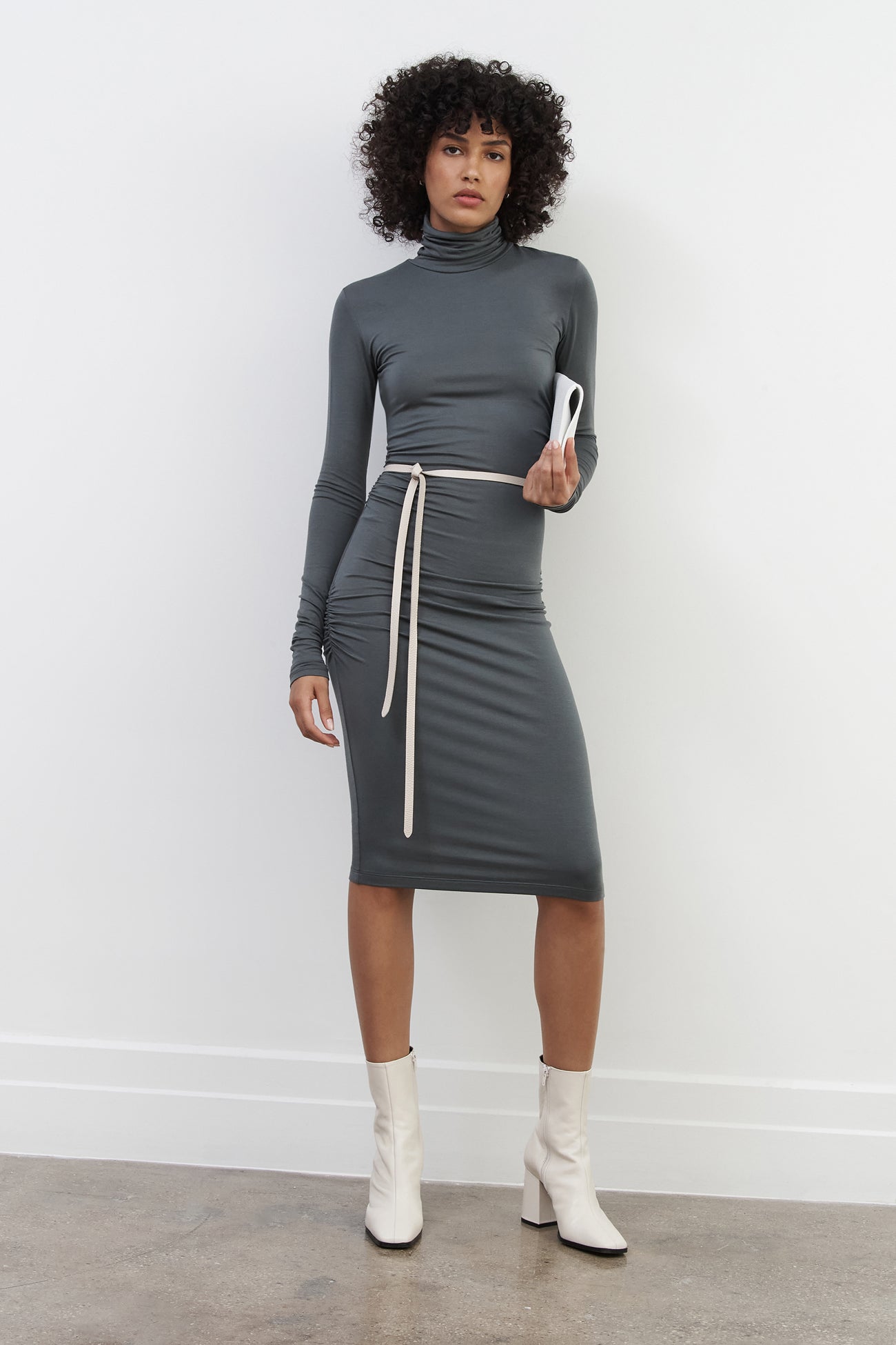 - Xun is shown modeling the Belle Clutch in periwinkle. Maritza is shown with ocean blue. in latte. in spring green. in red. in disco. and in black. Steph is shown modeling Belle in black. Astrid is shown modeling the clutch in black. and in bone.