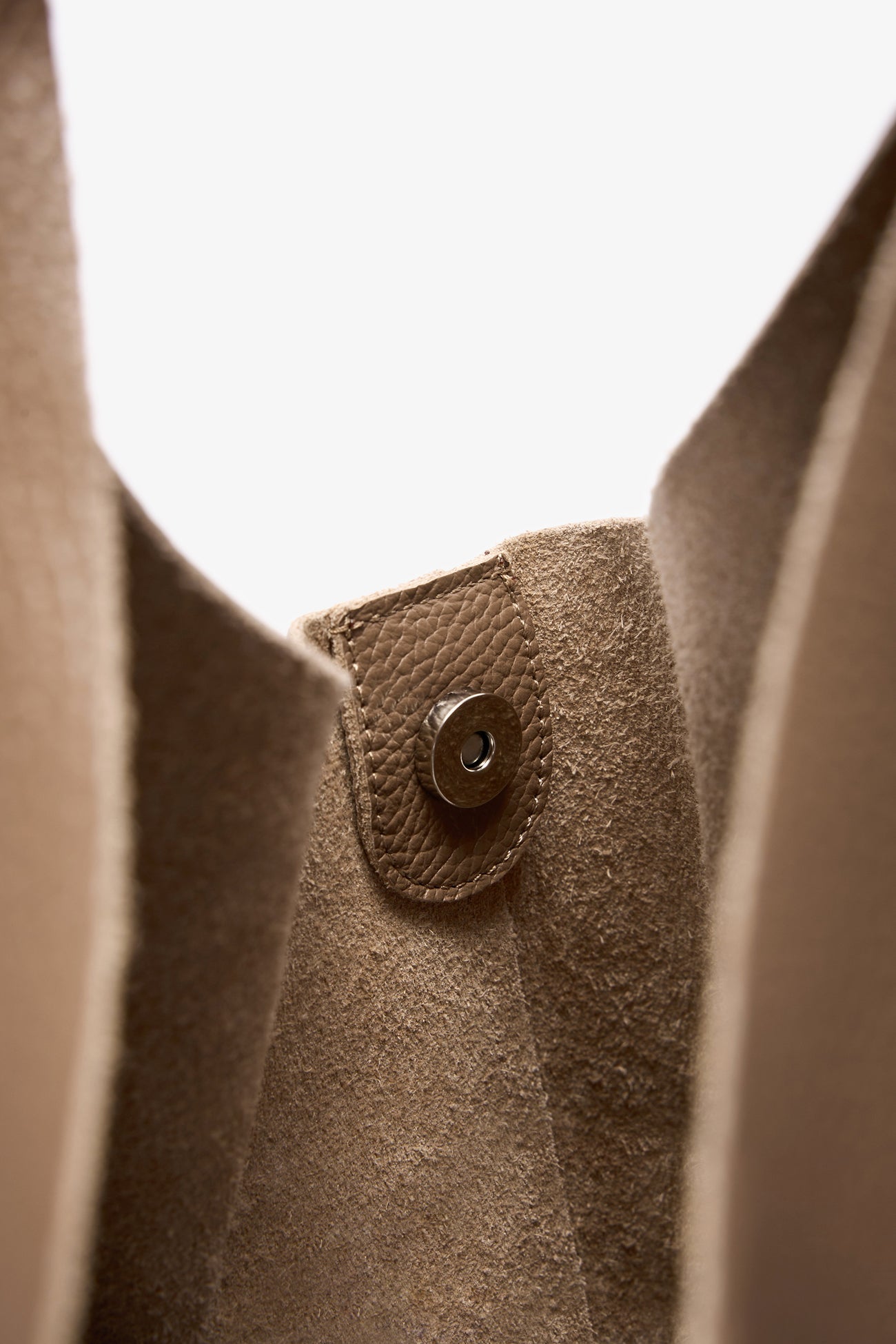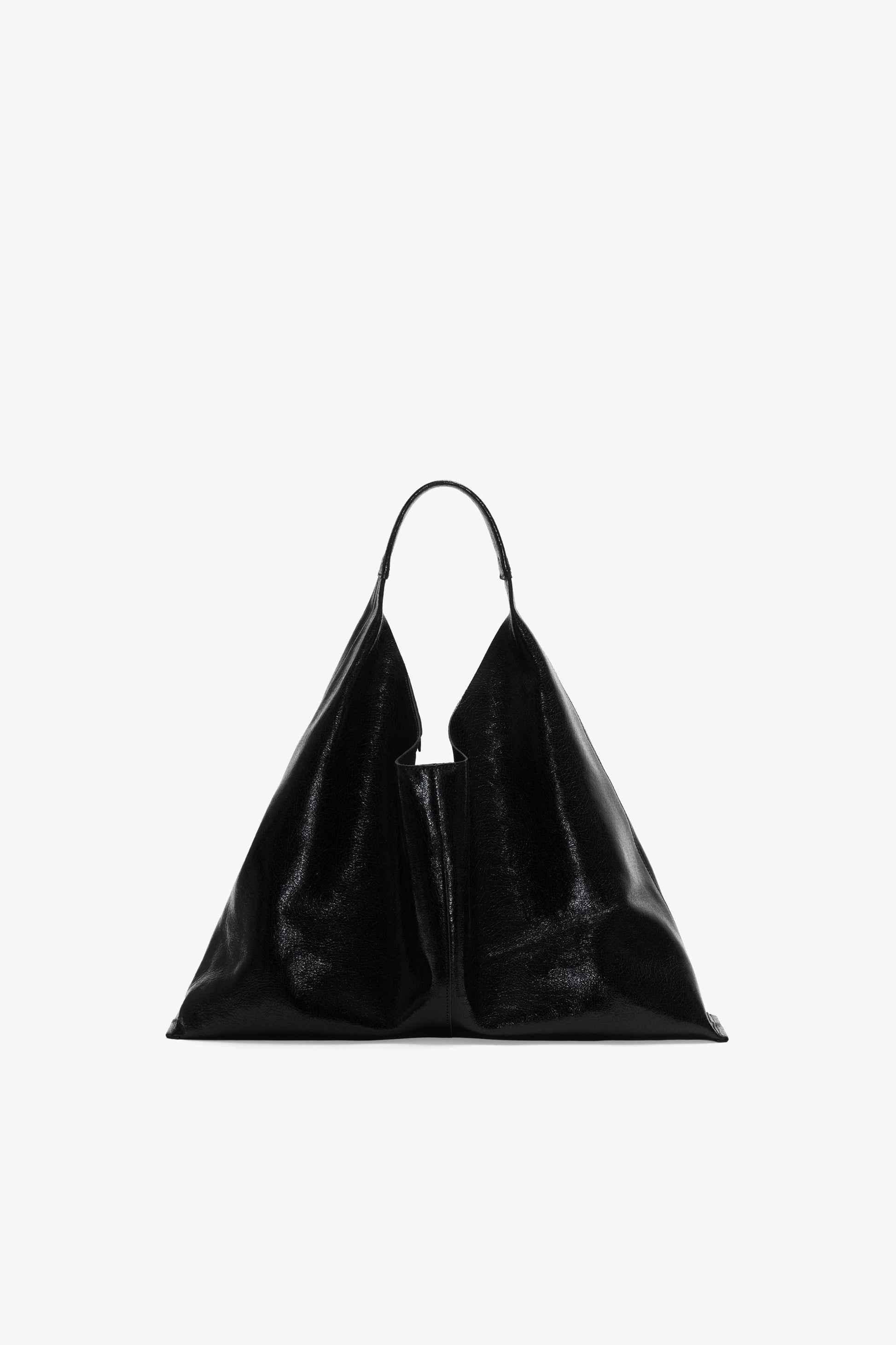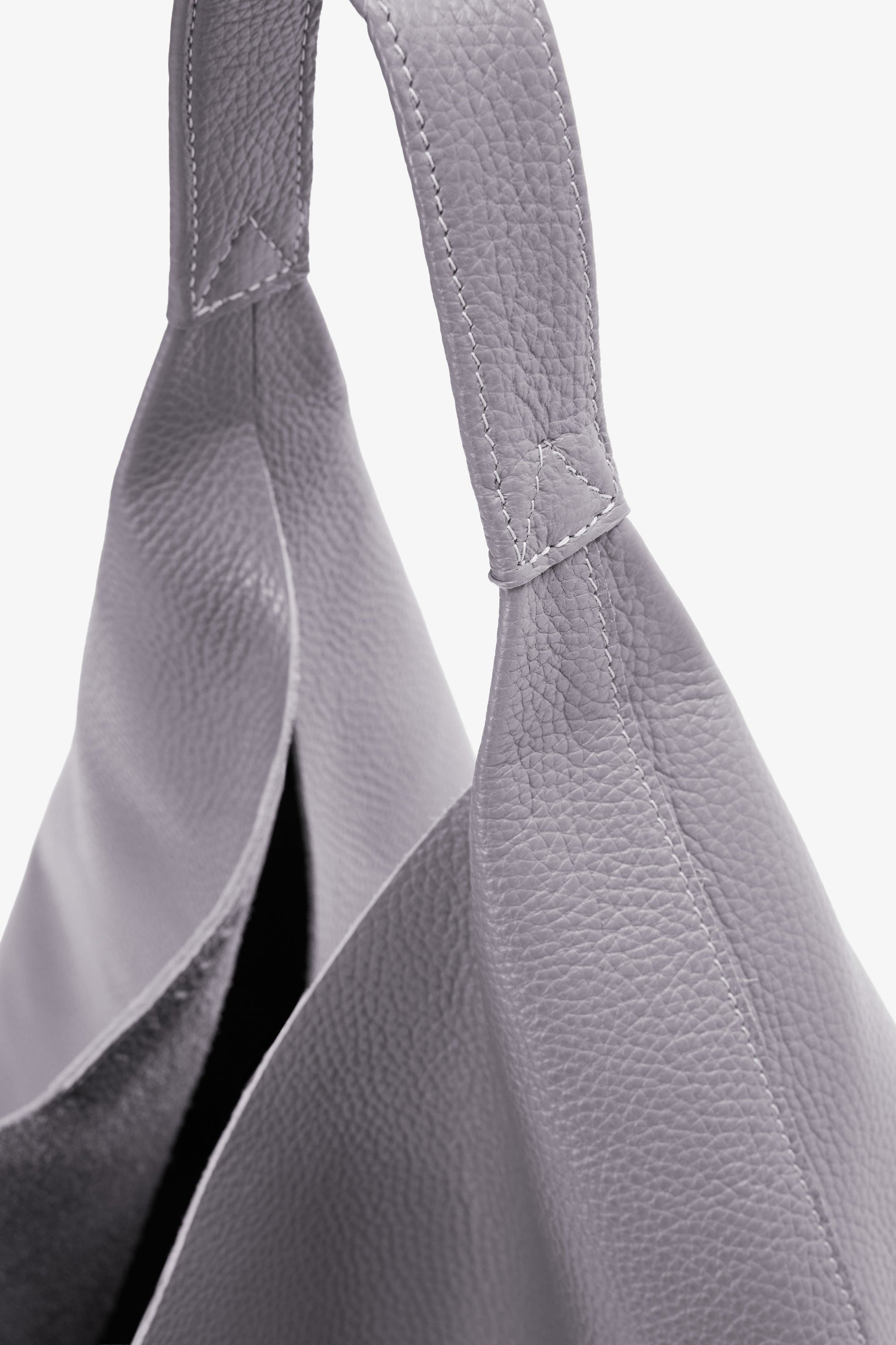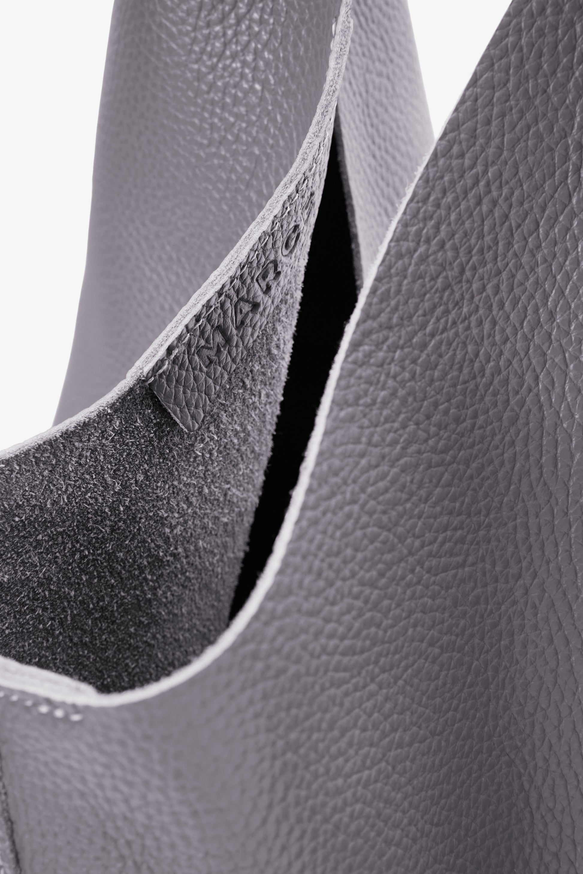 Upgrade all in one with our larger-than-life Kelly Tote. This oversized leather handbag is made of European leather (with a metallic crinkled finish for our onyx colorway) and features a triangular silhouette with a wide opening and a magnetic closure. plus a sturdy. flat handle. There's plenty of room inside for your essentials—space enough to fit a 13-inch laptop. a water bottle AND a good read. Moreover. Marcella's large oversized tote bag is unlined. which renders a soft and slouchy look.SPLIT