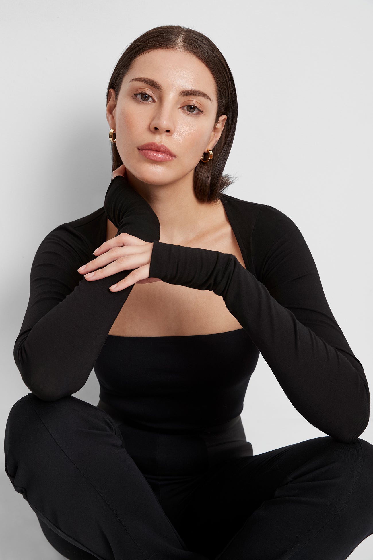 You can lean on Leon season in and season out. A soft. minimalist design from high-stretch and sustainable European jersey with longer sleeves finished off by thumbholes. she's the perfect accessory for any outfit. Day or evening. smart or casual. Leon will keep you sleek and comfortable all at once. SPLIT