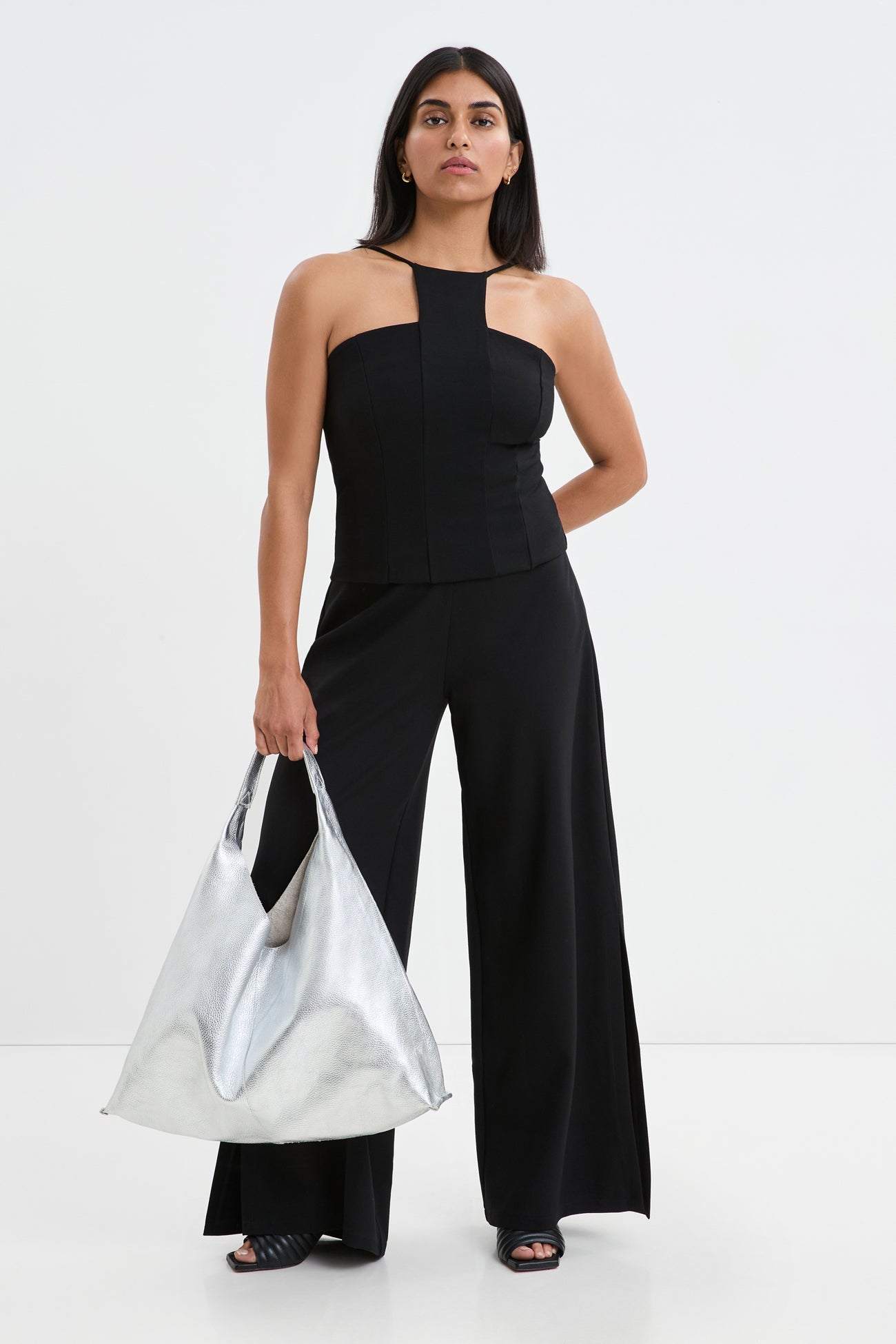 It doesn't get more luxe than Lexington. From structured European ponte in a mid-rise cut. Lexington's polished look never loses its shape. even with the dialed-up volume of her wide-leg style. Knee-high side slits lend edge and movement to this sophisticated pair you can wear anytime. anywhere. Complete with a hidden side zip and hook-and-eye closure.SPLIT