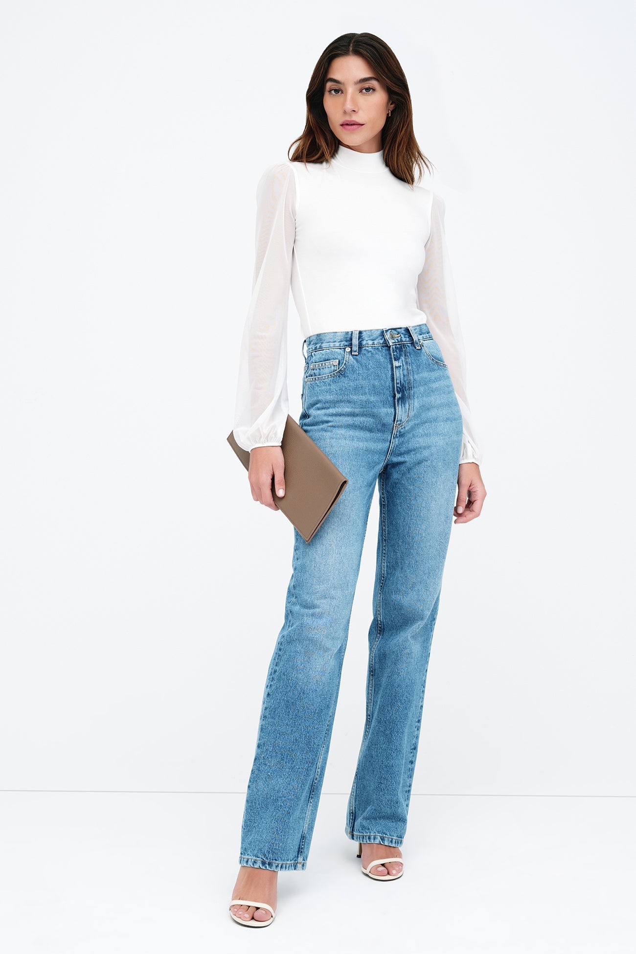 Our Liv Top is a unique ode to minimalism. Her refined mock neck base in high-stretch and sustainable European jersey contrasts with soft and dreamy mesh sleeves that sweep along the arm and gather at the wrist. A stunning pick for any event on your calendar. Liv brings modern sophistication wherever she goes.SPLIT