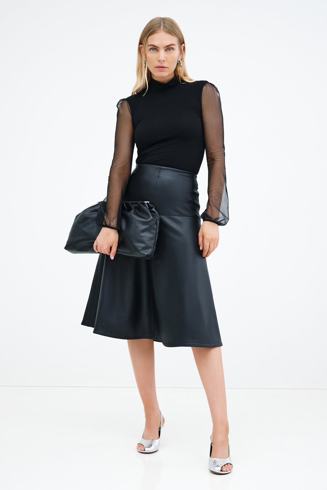 Our Liv Top is a unique ode to minimalism. Her refined mock neck base in high-stretch and sustainable European jersey contrasts with soft and dreamy mesh sleeves that sweep along the arm and gather at the wrist. A stunning pick for any event on your calendar. Liv brings modern sophistication wherever she goes. SPLIT
