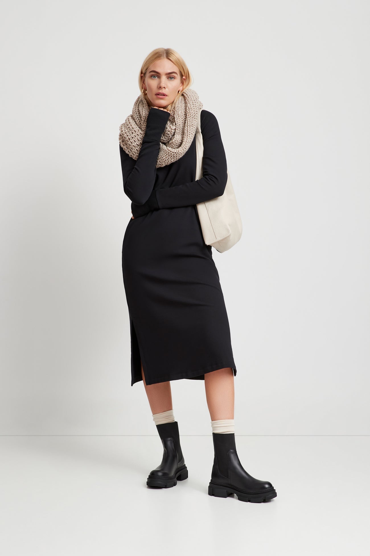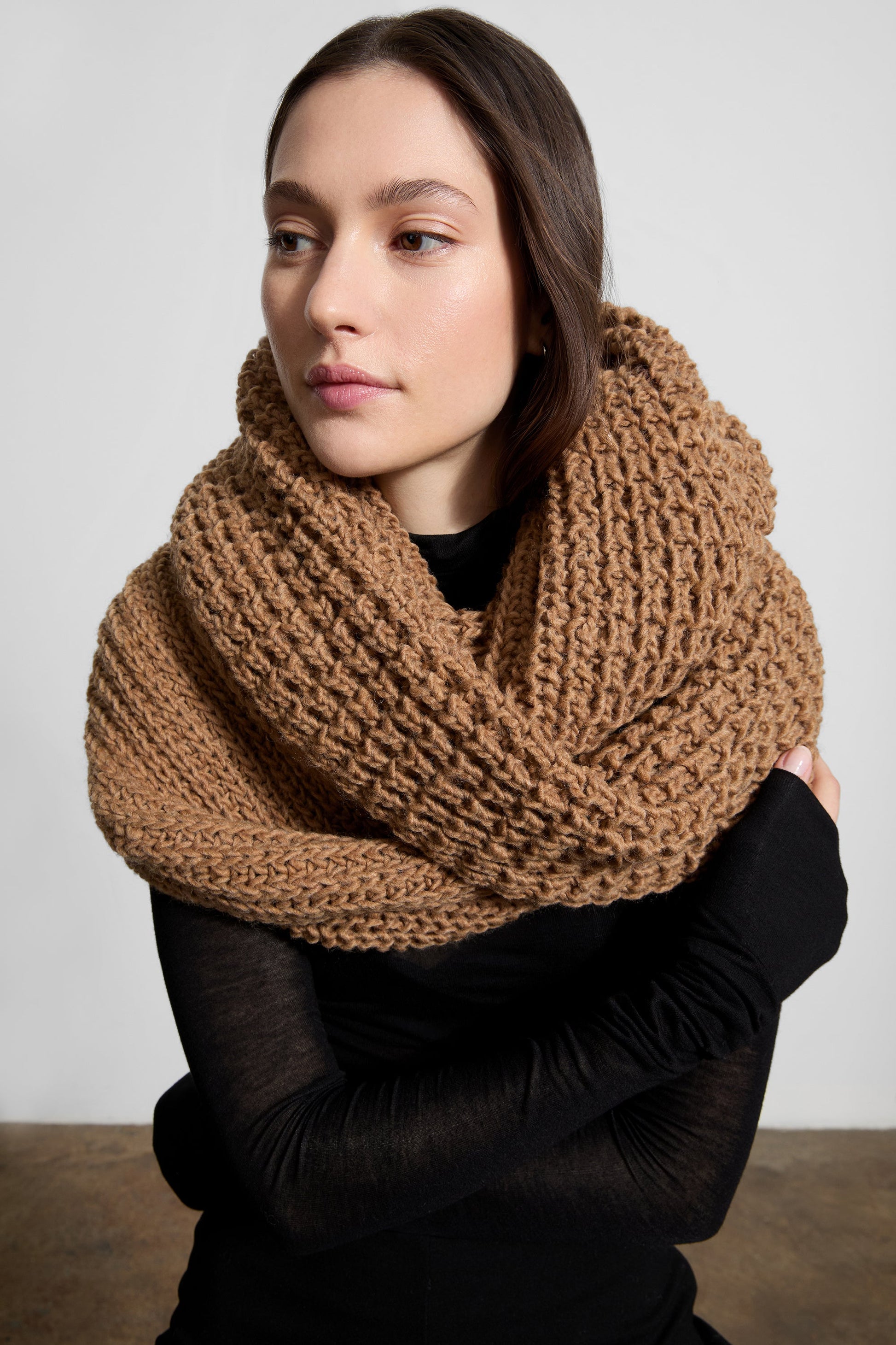 Meet London. our beloved. oversized chunky infinity scarf—an essential accessory for any chilly day. Cozy and soft. she's knit from European wool-blend yarns sourced from France and Italy. giving London a luxury feel similar to cashmere that's easy on sensitive skin. Loop London around the neck. wear her over your head. or style as a shawl—she does it all.SPLIT