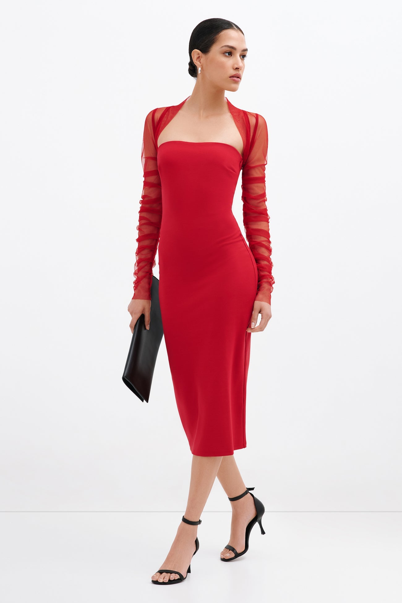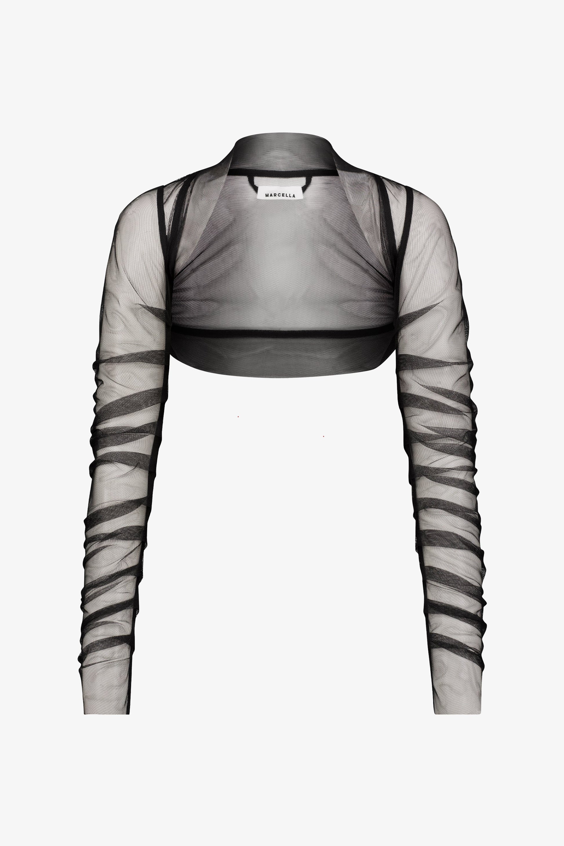 The little mesh bolero with stunning visual interest. Cocktail-ready and comfortable. not clingy. Madison fits your form but lets you move. Crafted from soft mesh with a touch of stretchshe features extra-long sleeves that are designed to softly gather up the length of the arm for an effect that's both edgy and refined. Madison's the perfect finishing touch to layer over strapless tops and sleeveless dresses. SPLIT