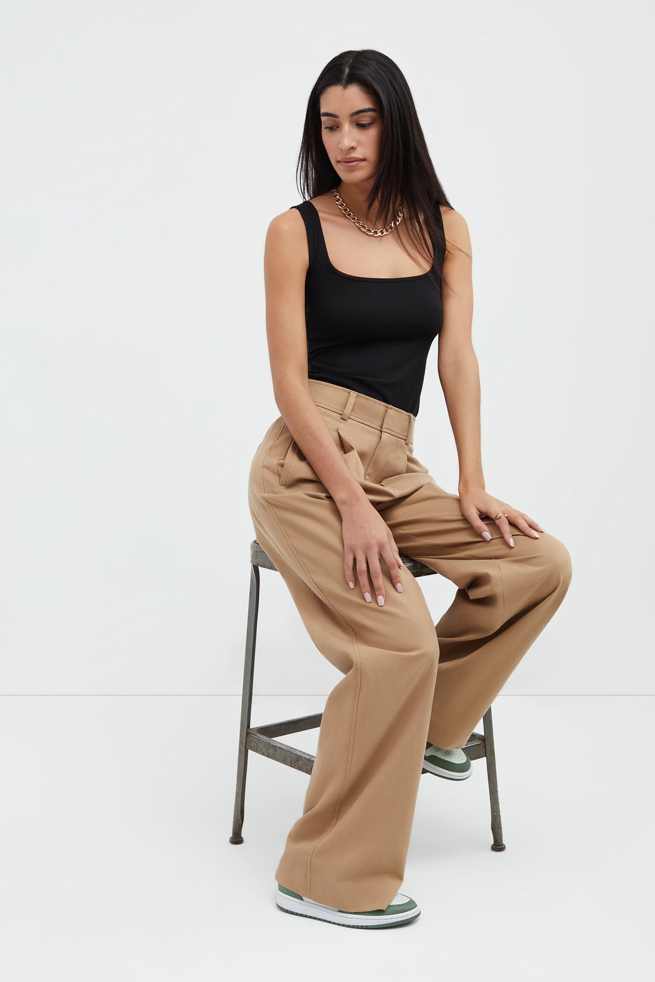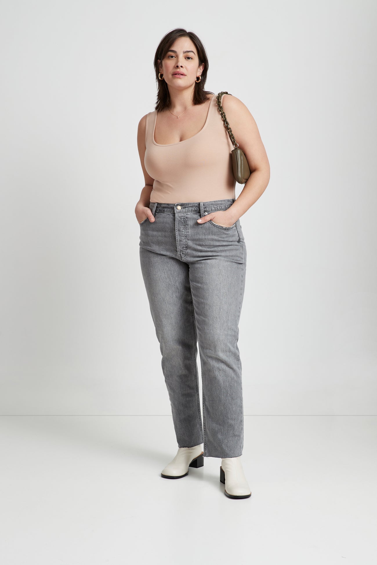 Minimal effort equals maximum chic. Our Maxine Tank is a timeless. throw-it-on-and-go essential handcrafted from soft. high-stretch and sustainable European jersey. She's designed with a wide rounded neckline and offers a hugging. all-day fit for endless layering possibilities. You can literally live in her.SPLIT