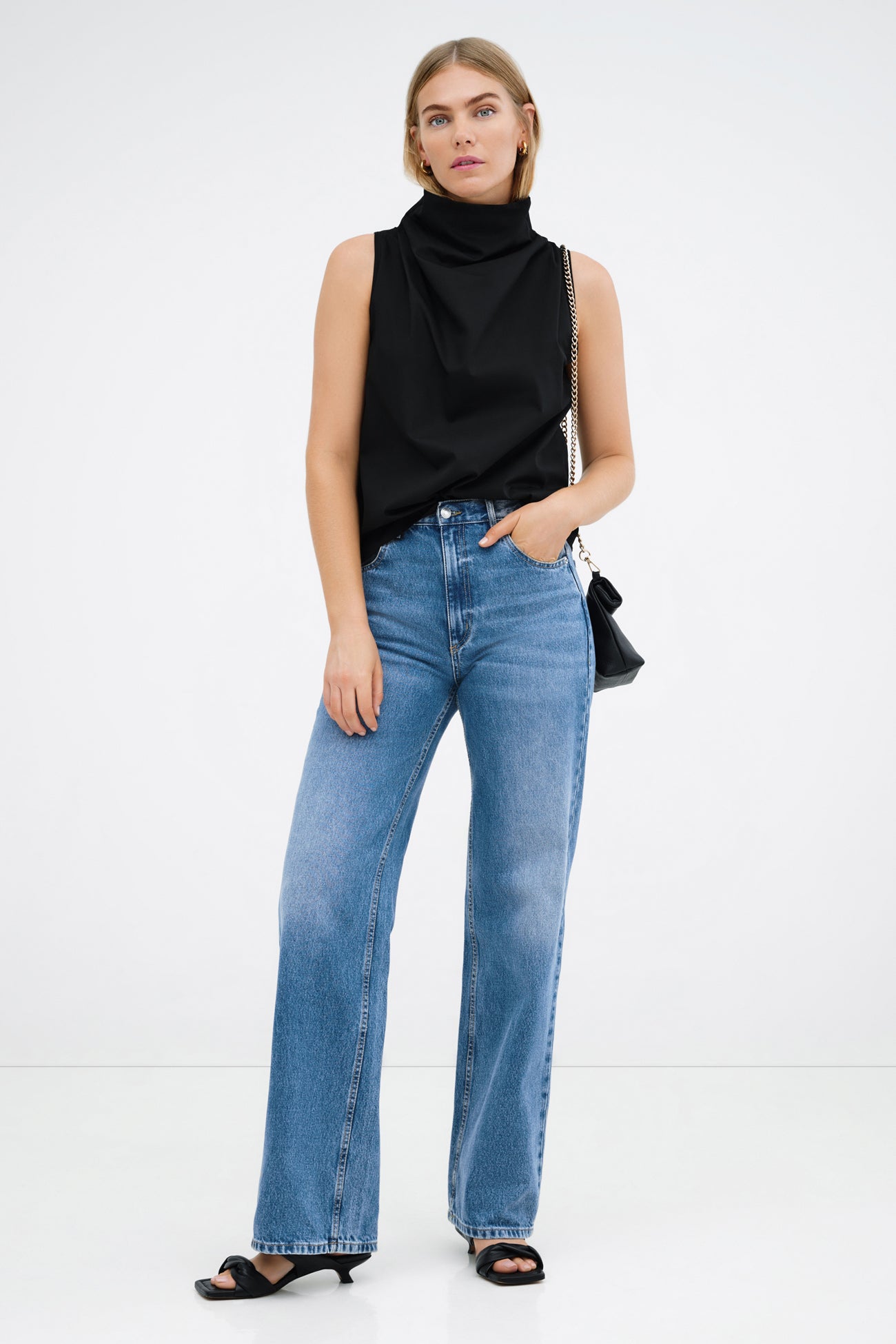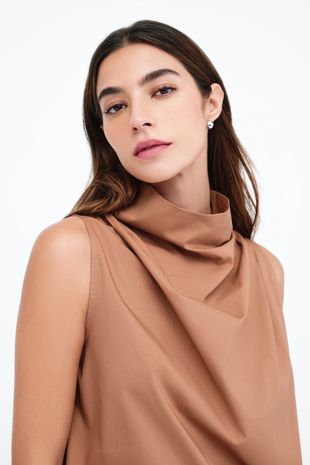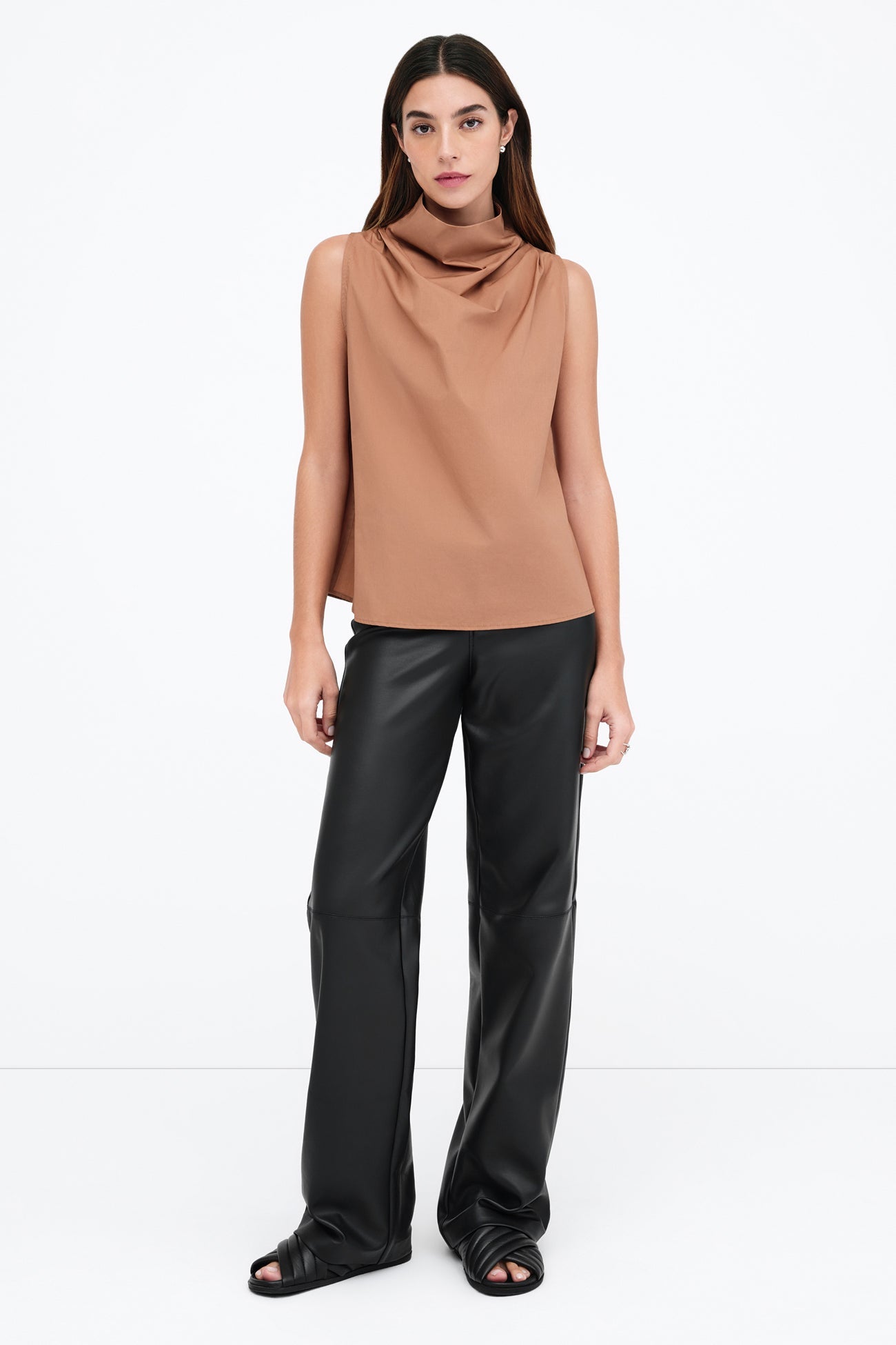 Our Minna Top is a pared-back classic for the poetically inclined. Inspired by our beloved Minna Dress. this sleeveless silhouette is marked by an oversized neckline that gathers above the shoulders for a dash of dramatic volume. She's crafted from crisp and airy European poplin cotton. keeping her ultra-wearable in warmer temps and making layering a breeze.SPLIT
