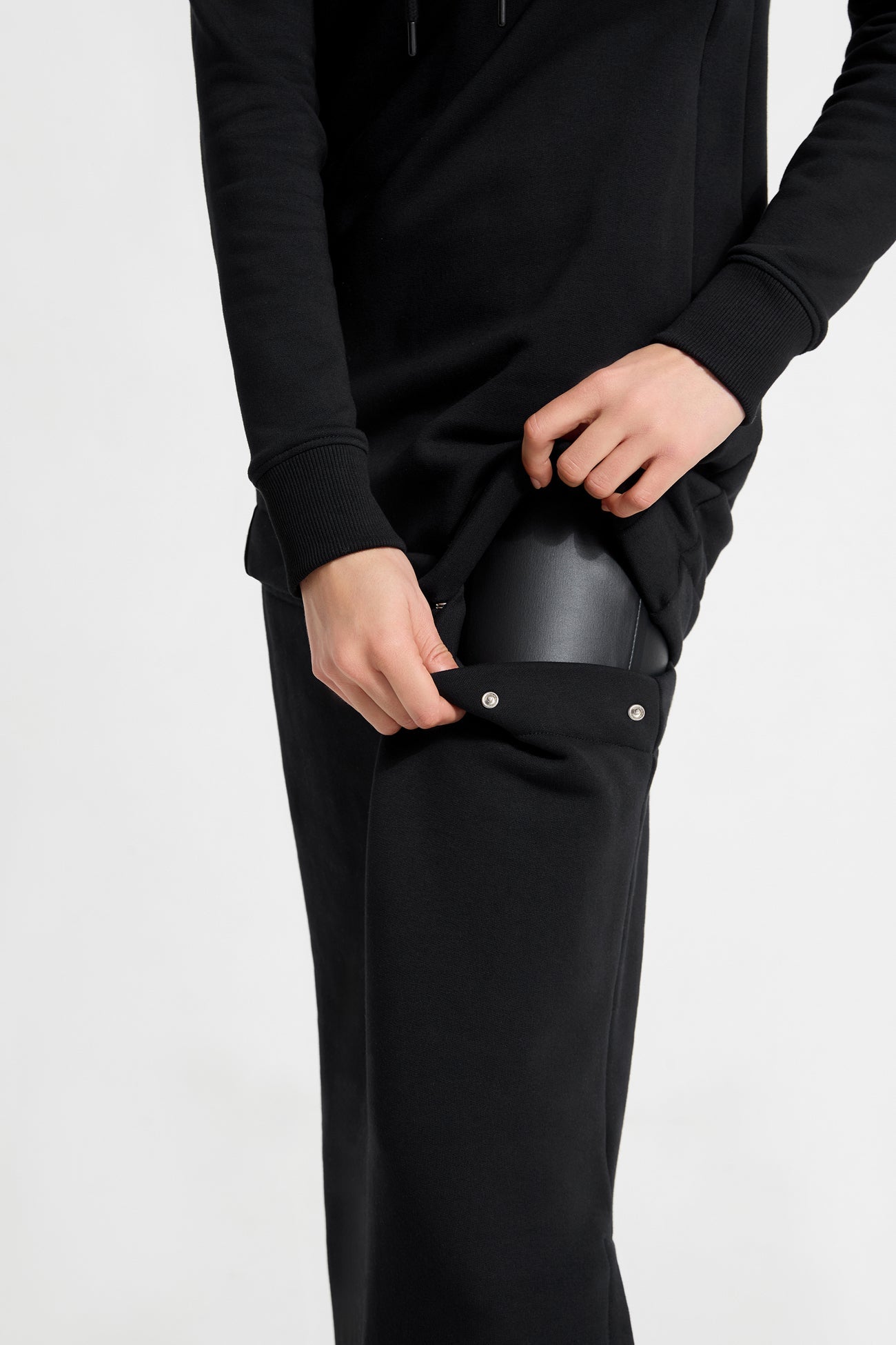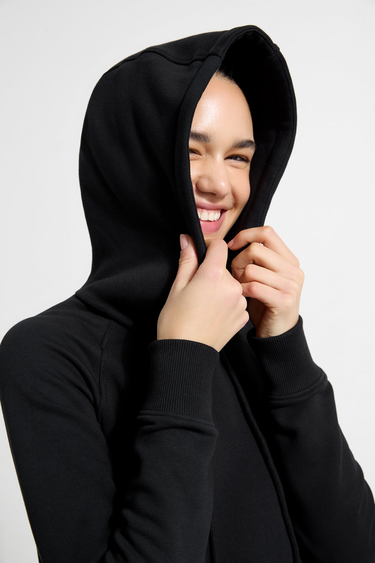 Maxi dress? Oversized sweatshirt? Mona does both. Her convertible design features hidden snaps along her diagonal seam. letting you switch from a one-and-done maxi dress to a sleek sweatshirt and act like you planned it all along. Midweight. breathable European French Terry adds an addictively cozy feel. while a side slit ensures easy movement. Raglan sleeves. an adjustable hood. and side pockets complete the look.SPLIT