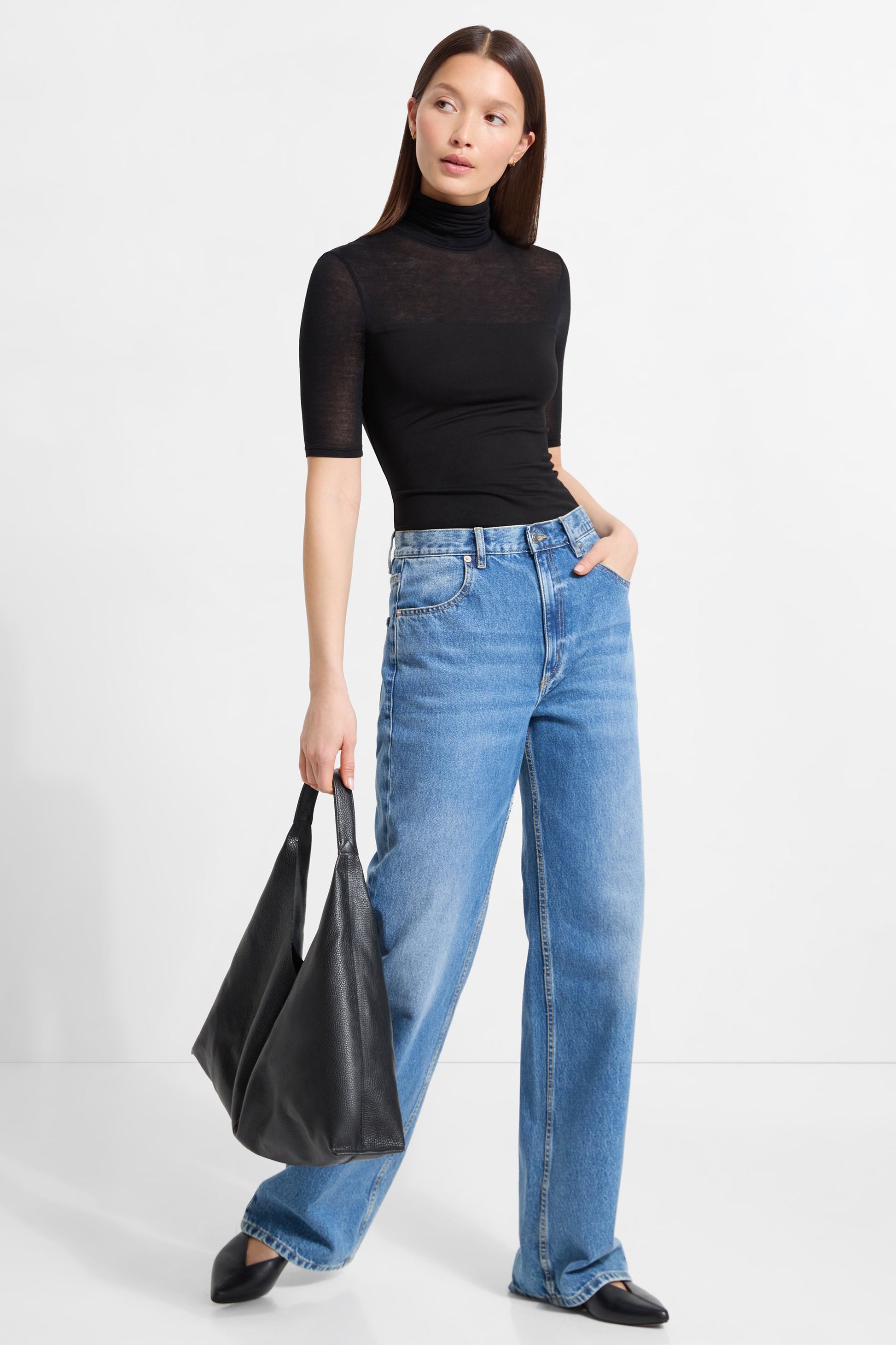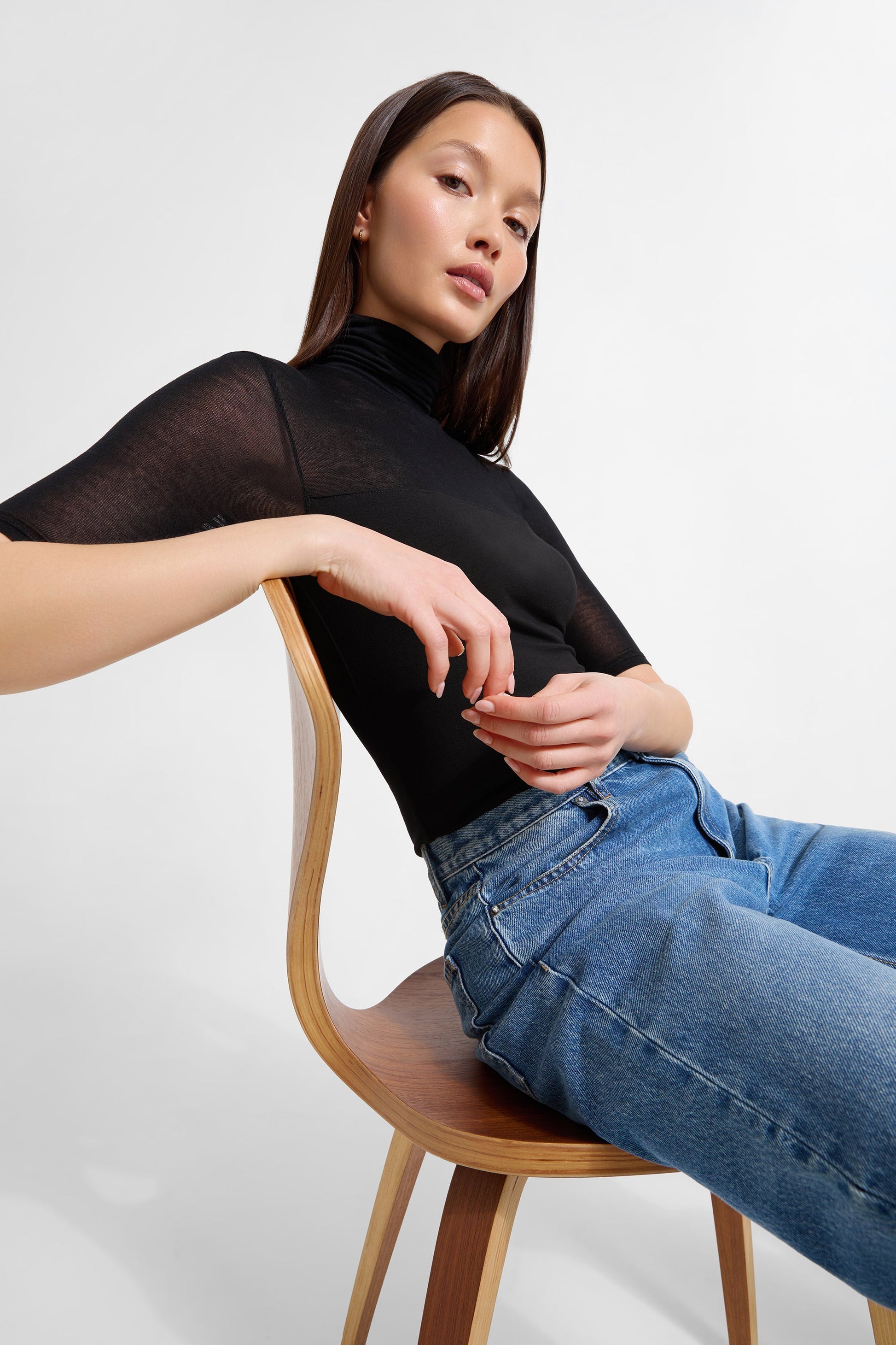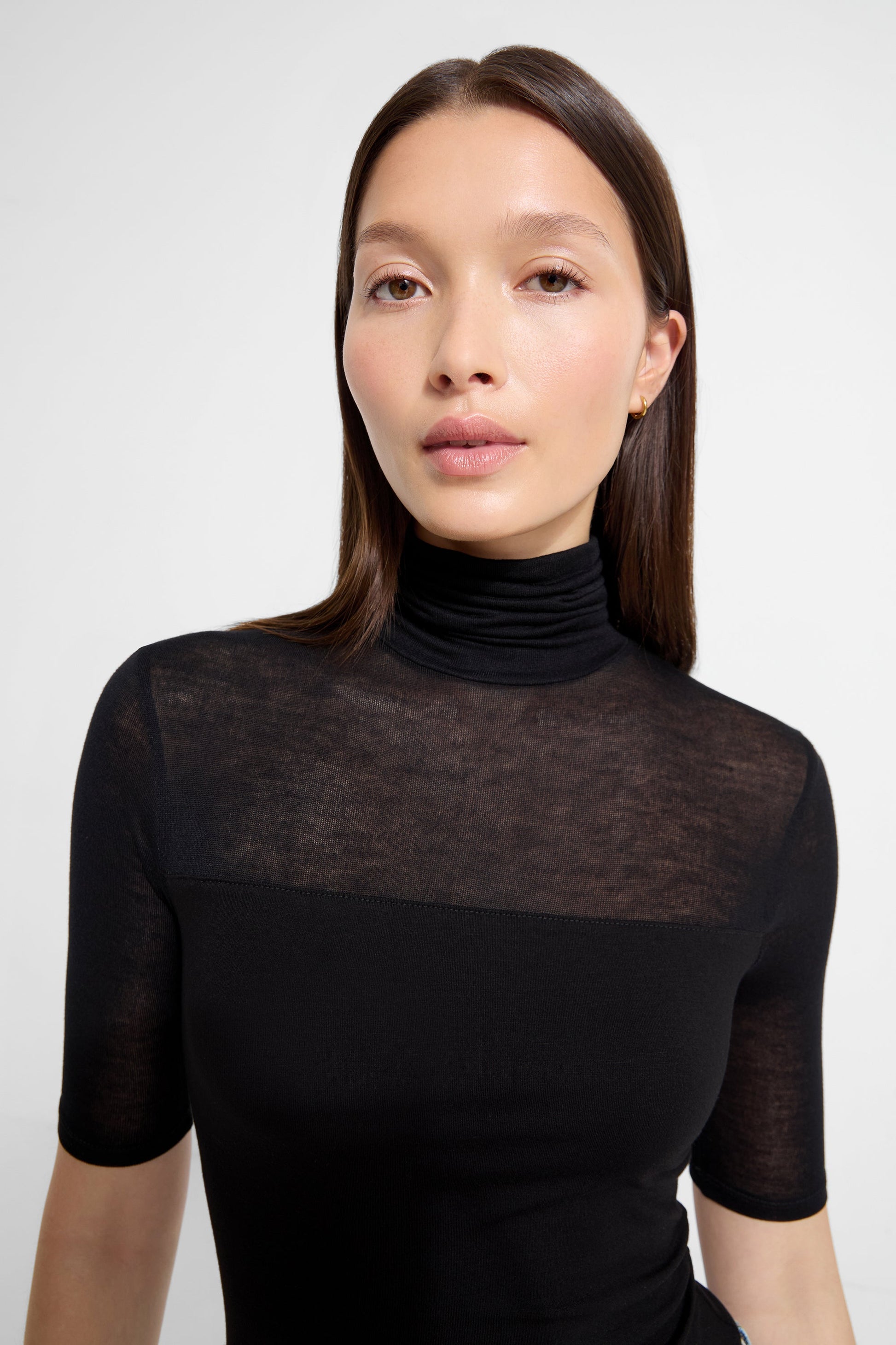 Day to night extravagance. our Niko Top is the wardrobe workhorse you can lean on. Fully covered feels lighter than air with our premium European jersey construction. which we've made sheer at the neckline and sleeves for an unexpected hint of skin. Inspired by our best-selling Cara Top but with shorter sleeves. Niko's versatile either as a stand-alone or layering piece. SPLIT