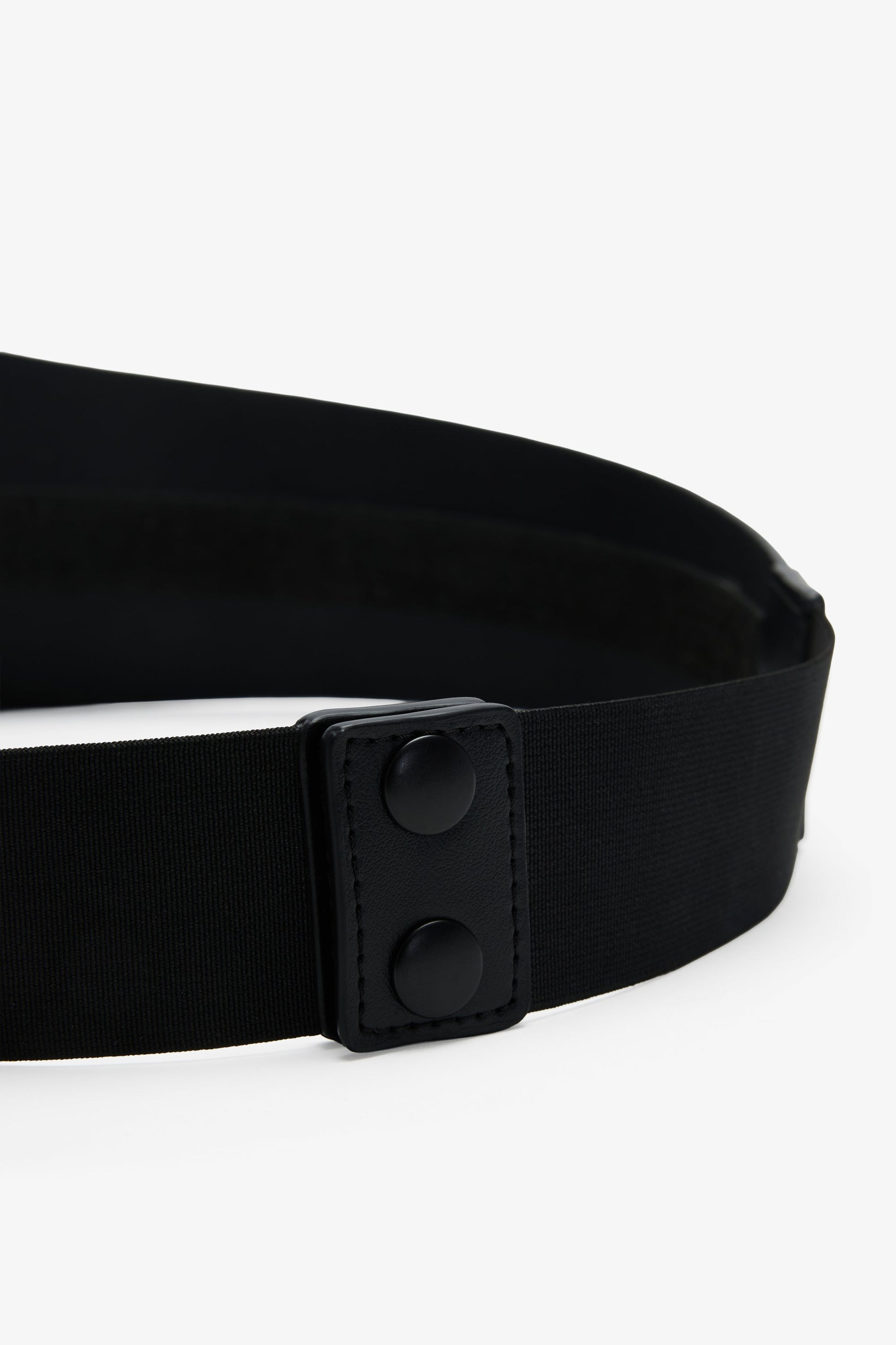 Quality that lasts. style that pops. The Noor Belt's wide. geometric silhouette is crafted from 100% European leather and tapers at the end for a dynamic finish. Elastic panels offer flexible yet waist-cinching comfort. Fastened by snaps at the back. she's a versatile staple to polish both your casual and dressier looks.SPLIT