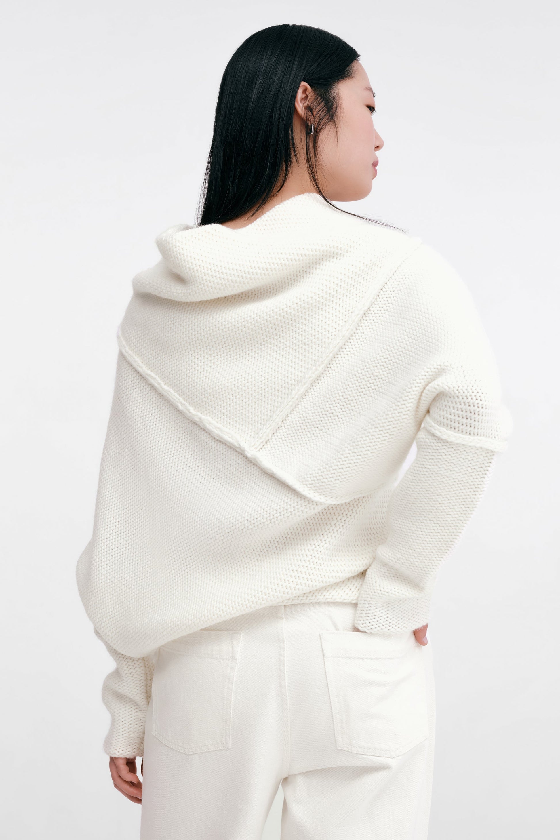 You're getting warmer! Meet the long sleeve update of our best-selling Palmer Knit Top offering a relaxed. asymmetric design with a draped high neck at the front and v-neck at the back. Handcrafted from French wool-blend yarn. Palmer features raised seams for unique. geometric flair. guaranteeing her layering hero status for your cold-weather wardrobe.SPLIT