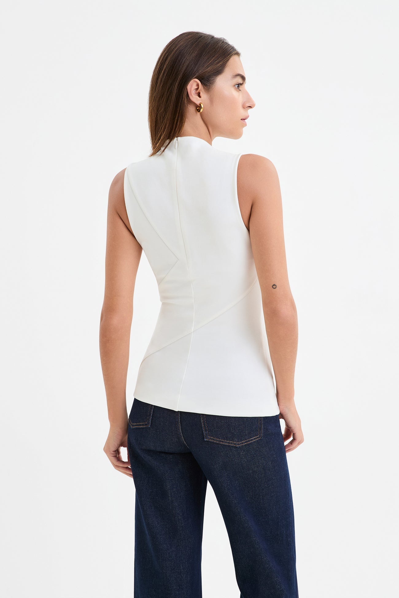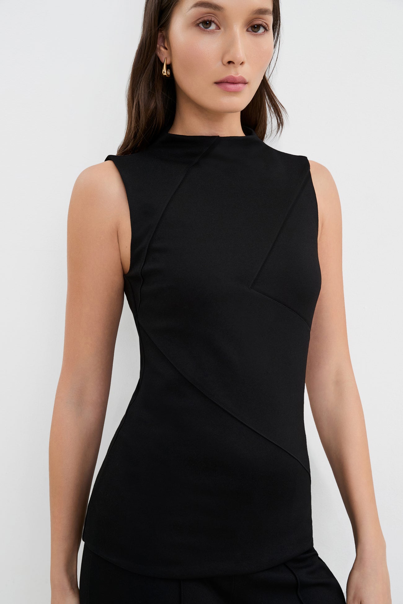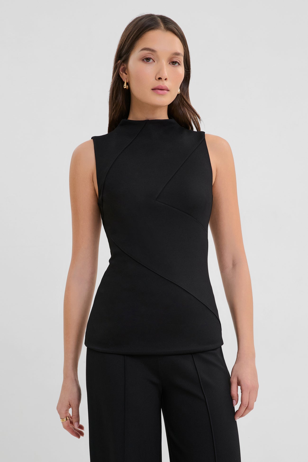 Peyton sets a magnetic tone for cocktail hour and beyond. A mock neck top inspired by our Peyton Dress. she stands out with triangular detailing. sharp seamwork. and a silhouette that fits like a dream. In European ponte with soft mesh lining and a hidden center-back zip. she's tailored to turn heads at all your occasions—now. and for years to come.SPLIT