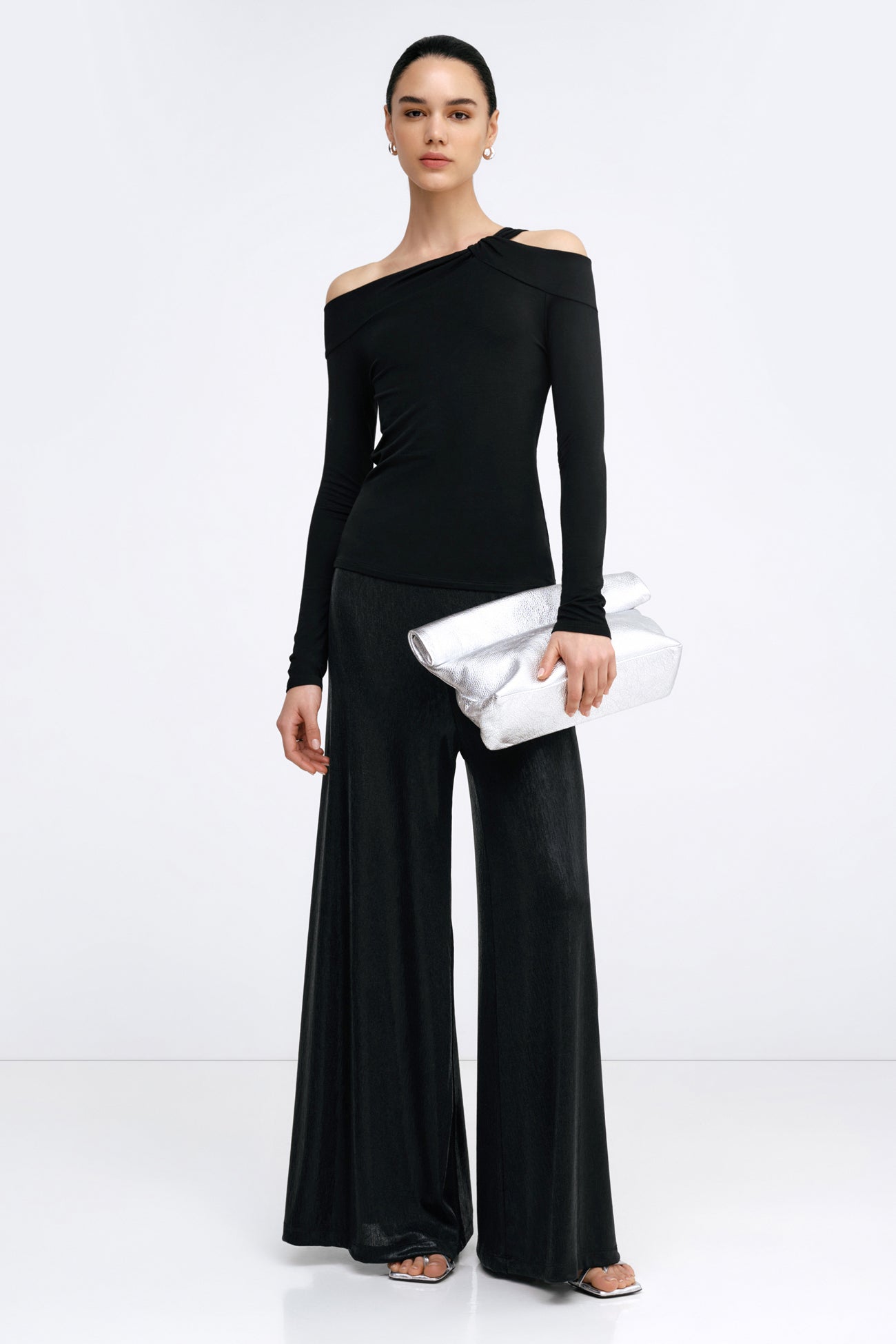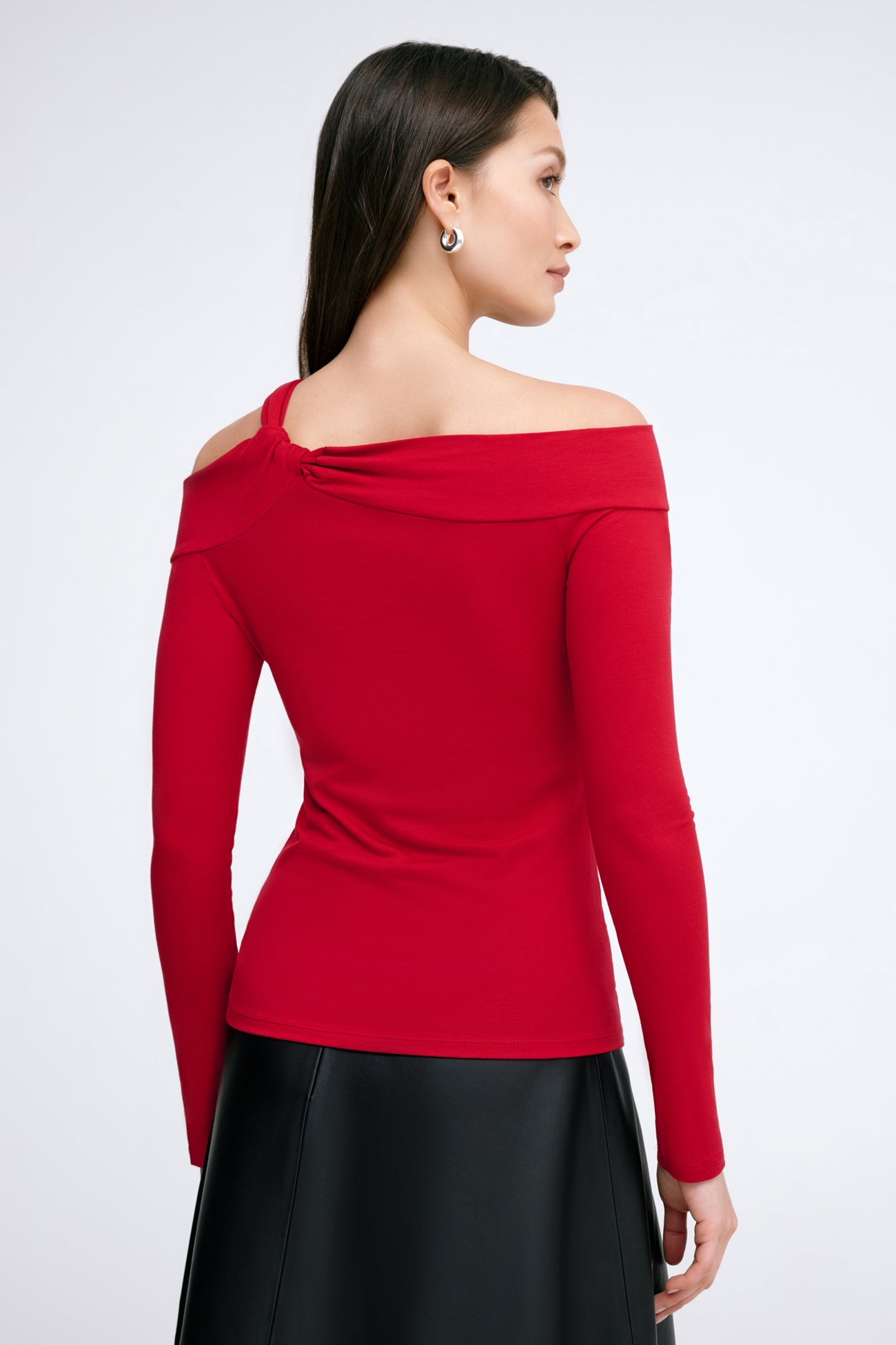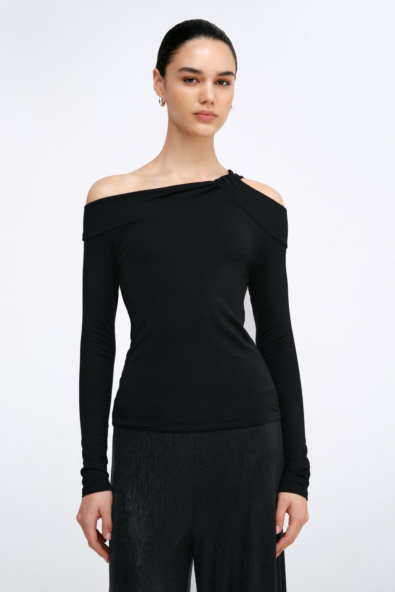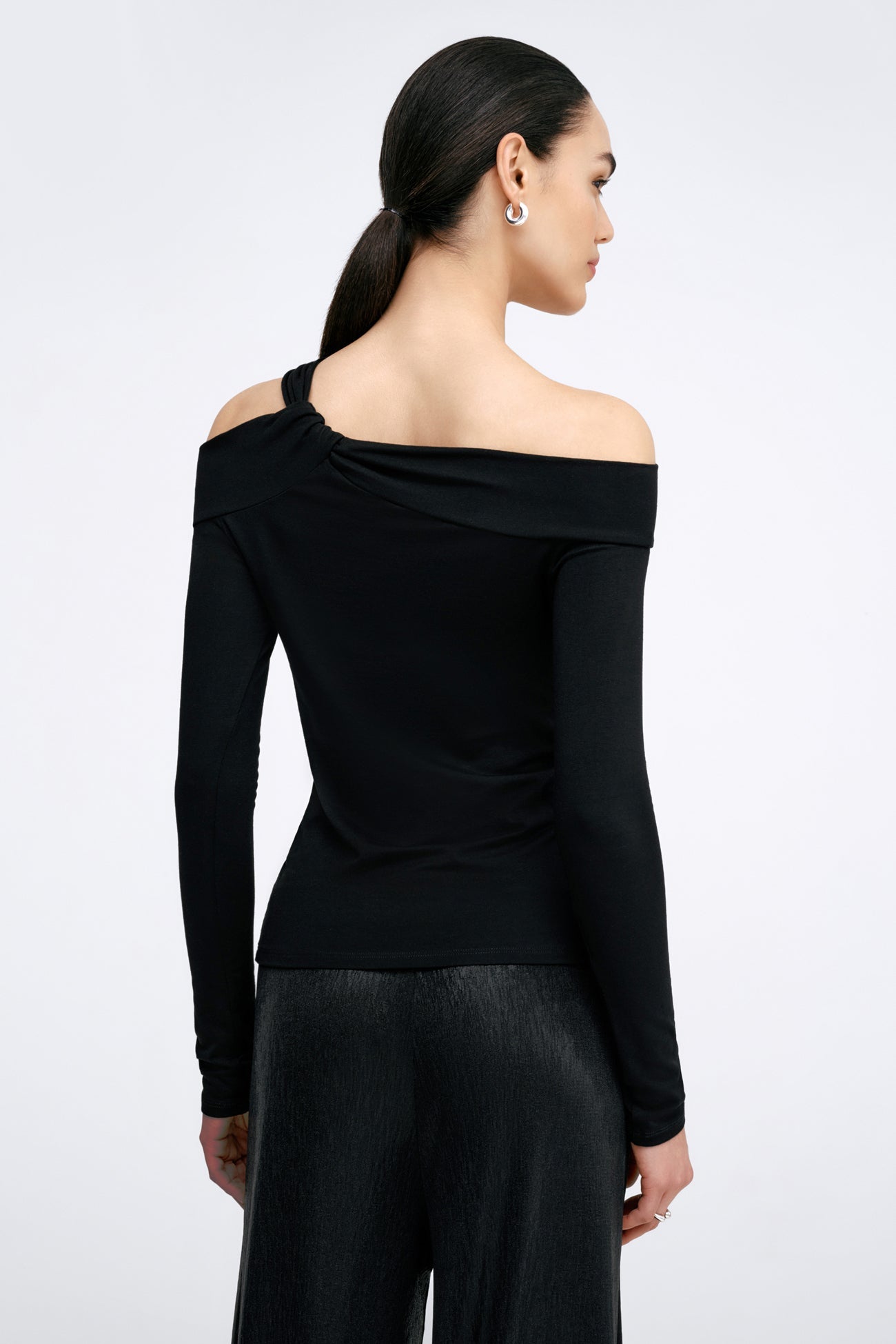 Tie all your looks together with our Piper Top. a versatile silhouette with a modern knot detail at one shoulder. Crafted from soft. high-stretch European jersey that skims your figure. Piper lays off the shoulder and features extra-long raglan sleeves. For cocktail parties or casual affairs. she's ready for anything.SPLIT