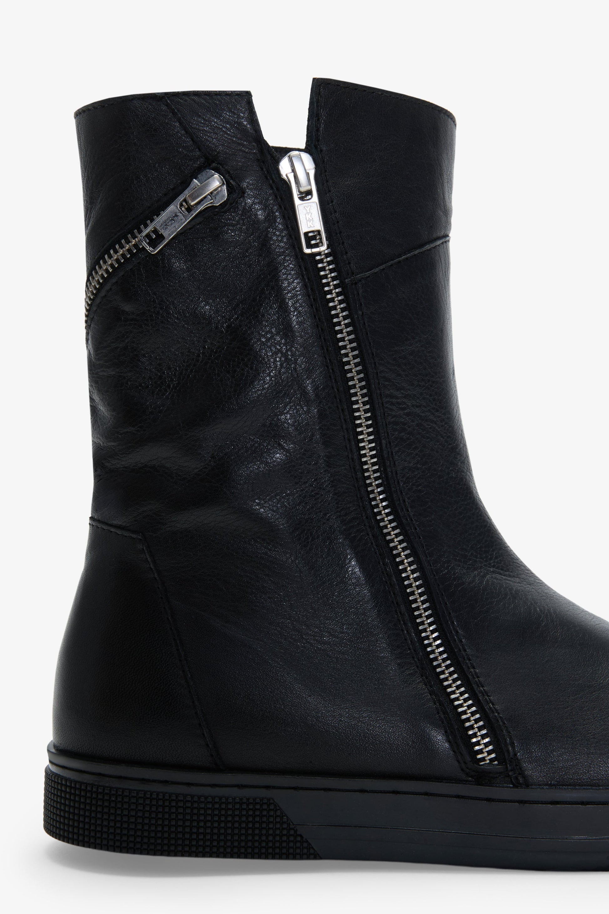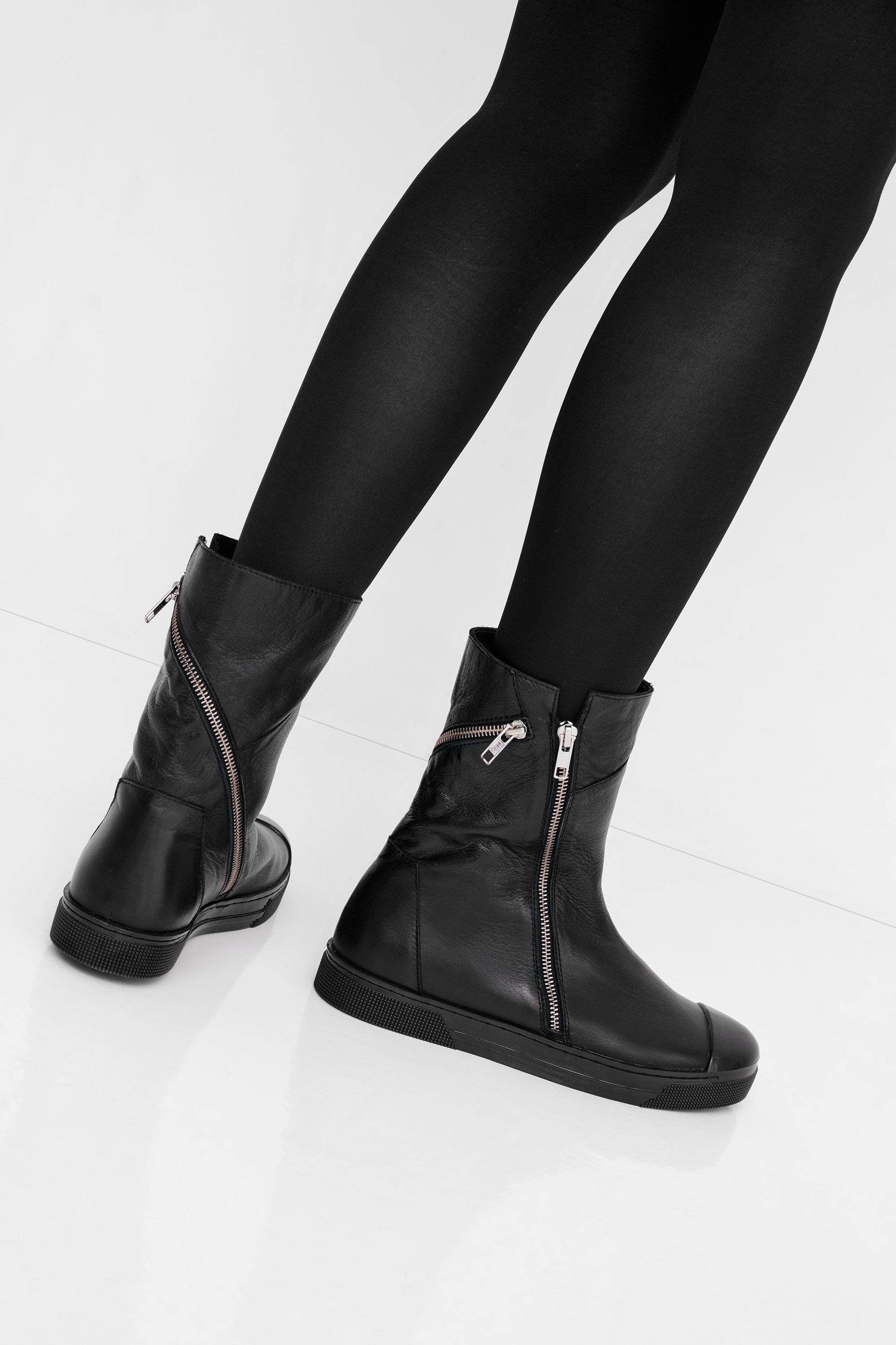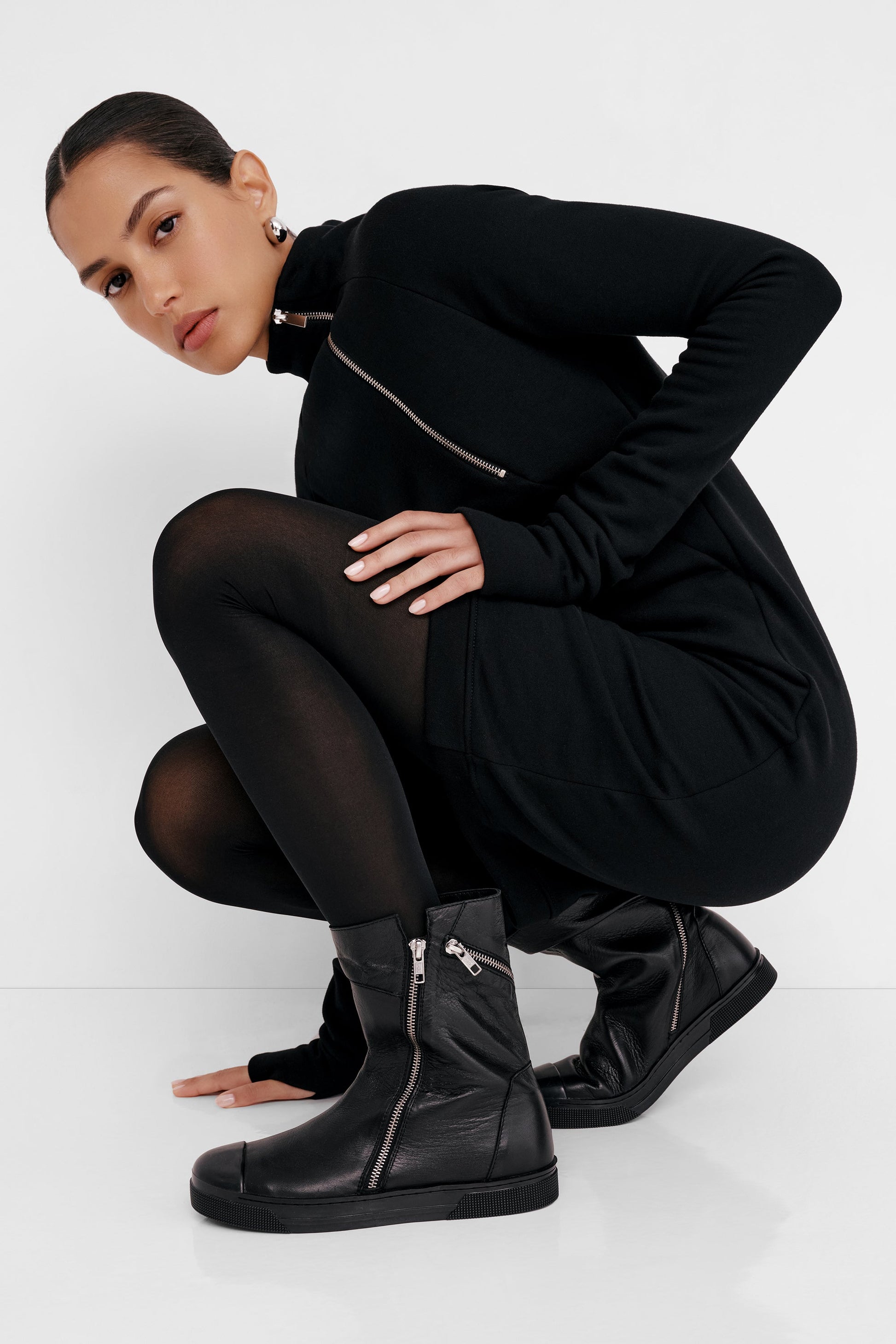 Roebling works hard. feels good. and stands out. These mid-calf boots are handcrafted from 100% European nappa leather and sit on our signature earth-friendly Karma soles with an ergonomic footbed to keep every step comfortable. While the diagonal zip adds a geometric accent. the functional inner zip secures the fit.SPLIT