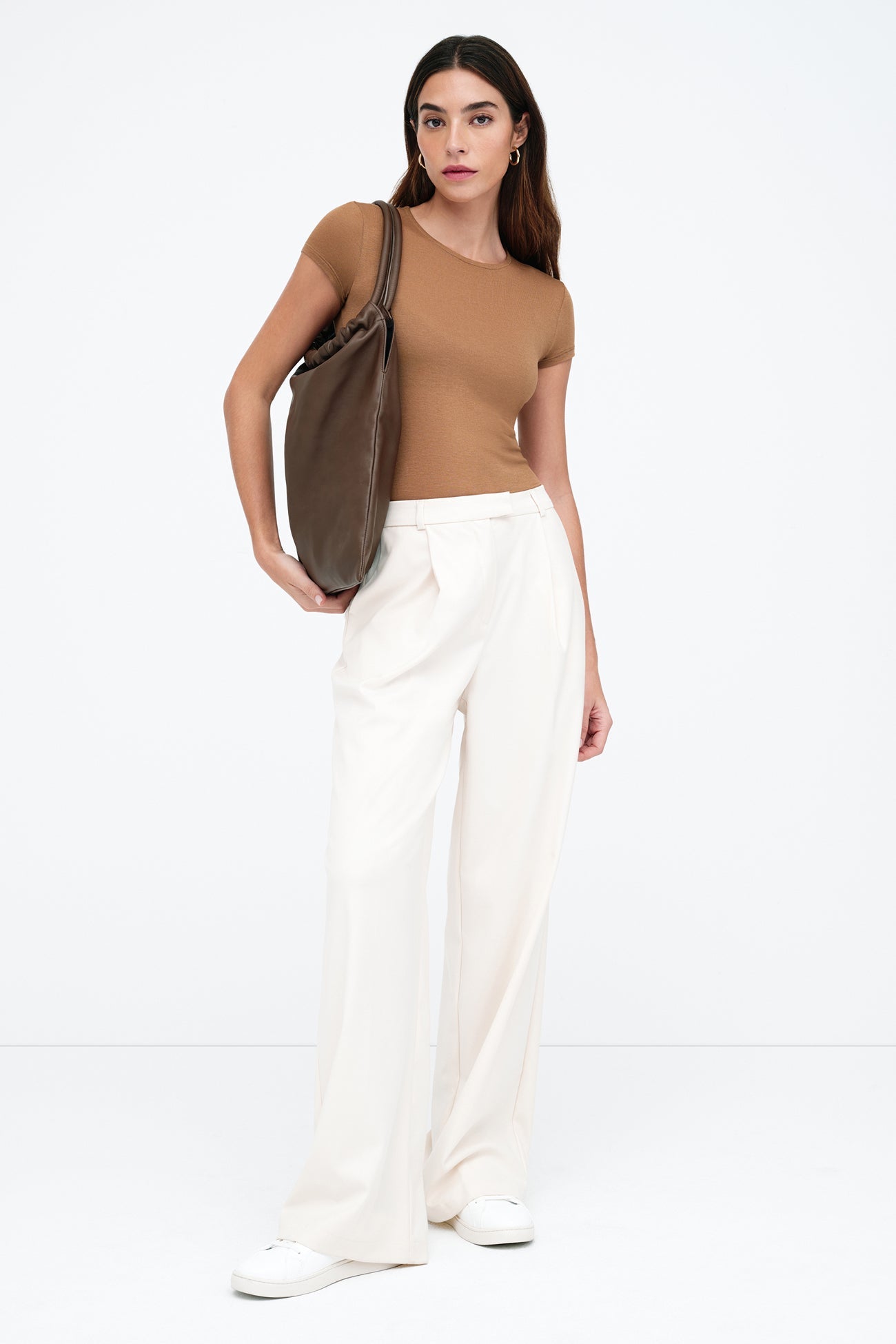 A classic silhouette with a round neckline and short sleeves. What sets our Sara Tee apart is her soft. sheer European jersey fabric. with extra stretch for a customized fit. Perfect for layering—over or under—Sara is a versatile tee that will brighten up your basics.SPLIT