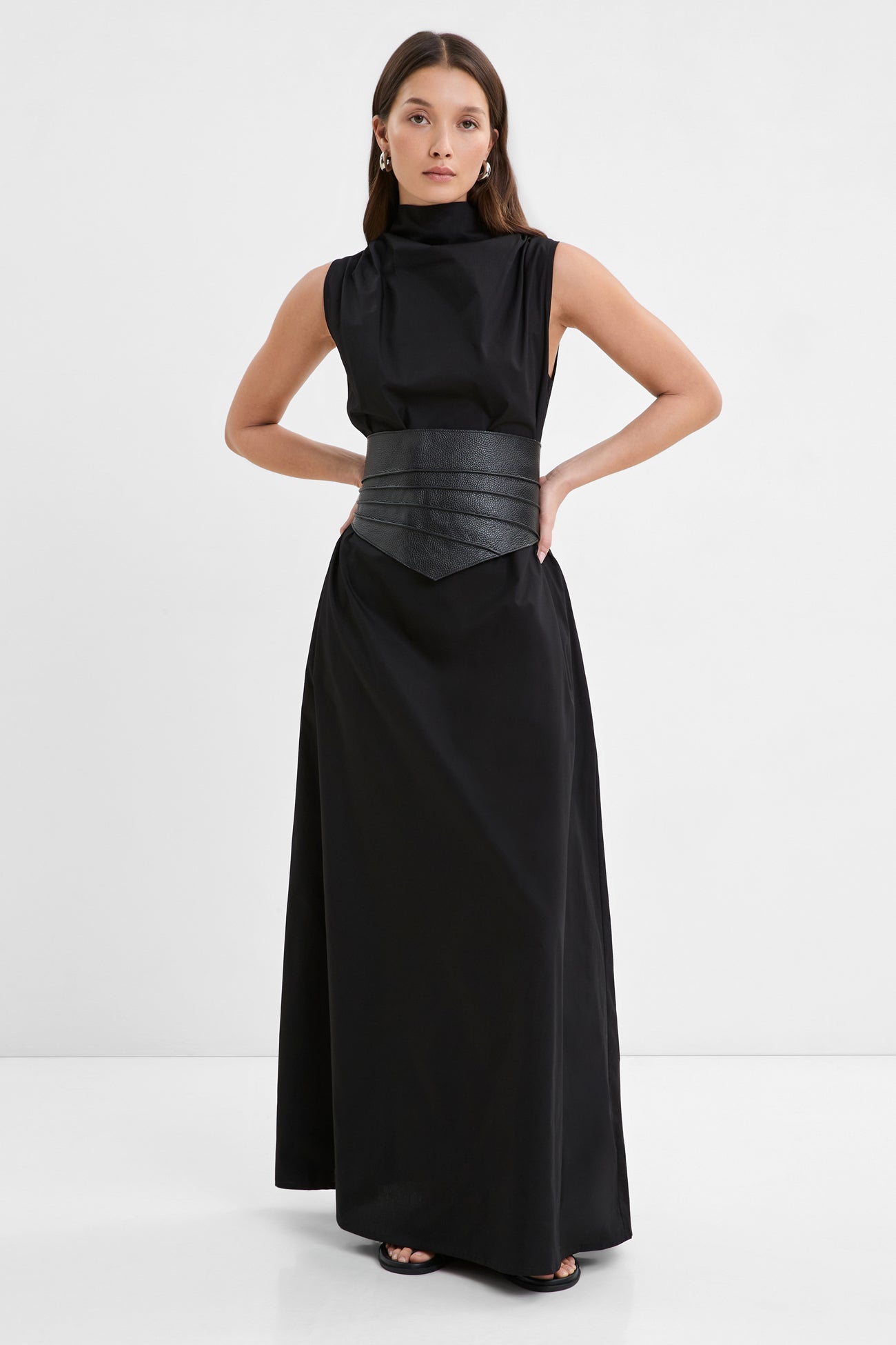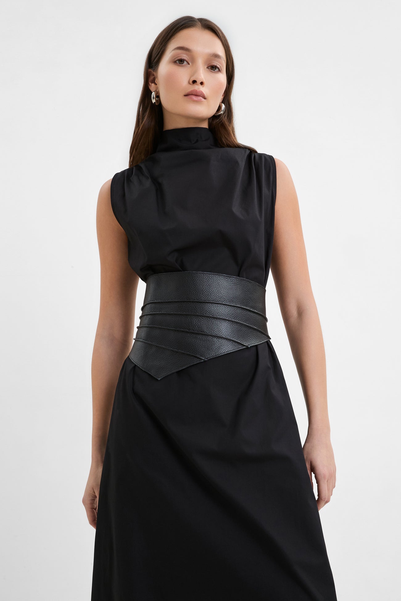 Bold moves start with even bolder accessories. Meet Sheridan. a sculptural belt in 100% Italian pebbled leather that creates a corseted silhouette. Asymmetric piping details add to her edge. while adjustable buckles allow you to perfect her fit. amplifying the boost of confidence you'll feel while wearing her.SPLIT