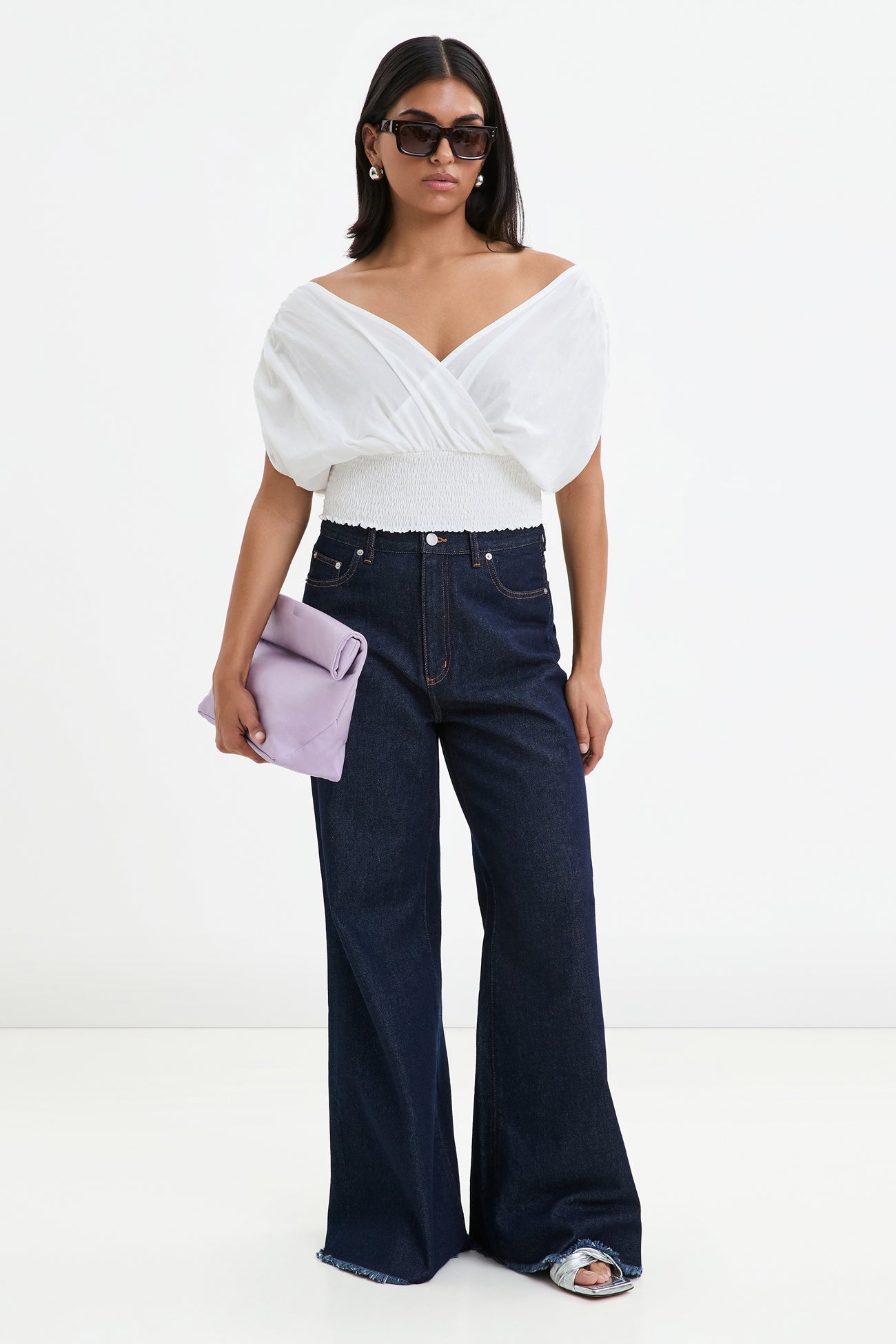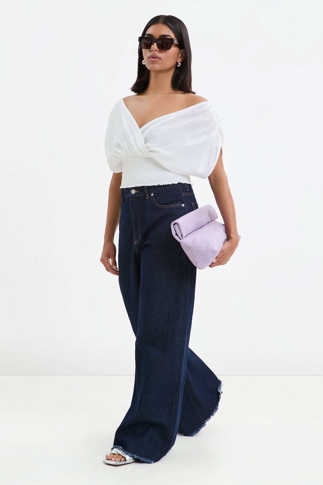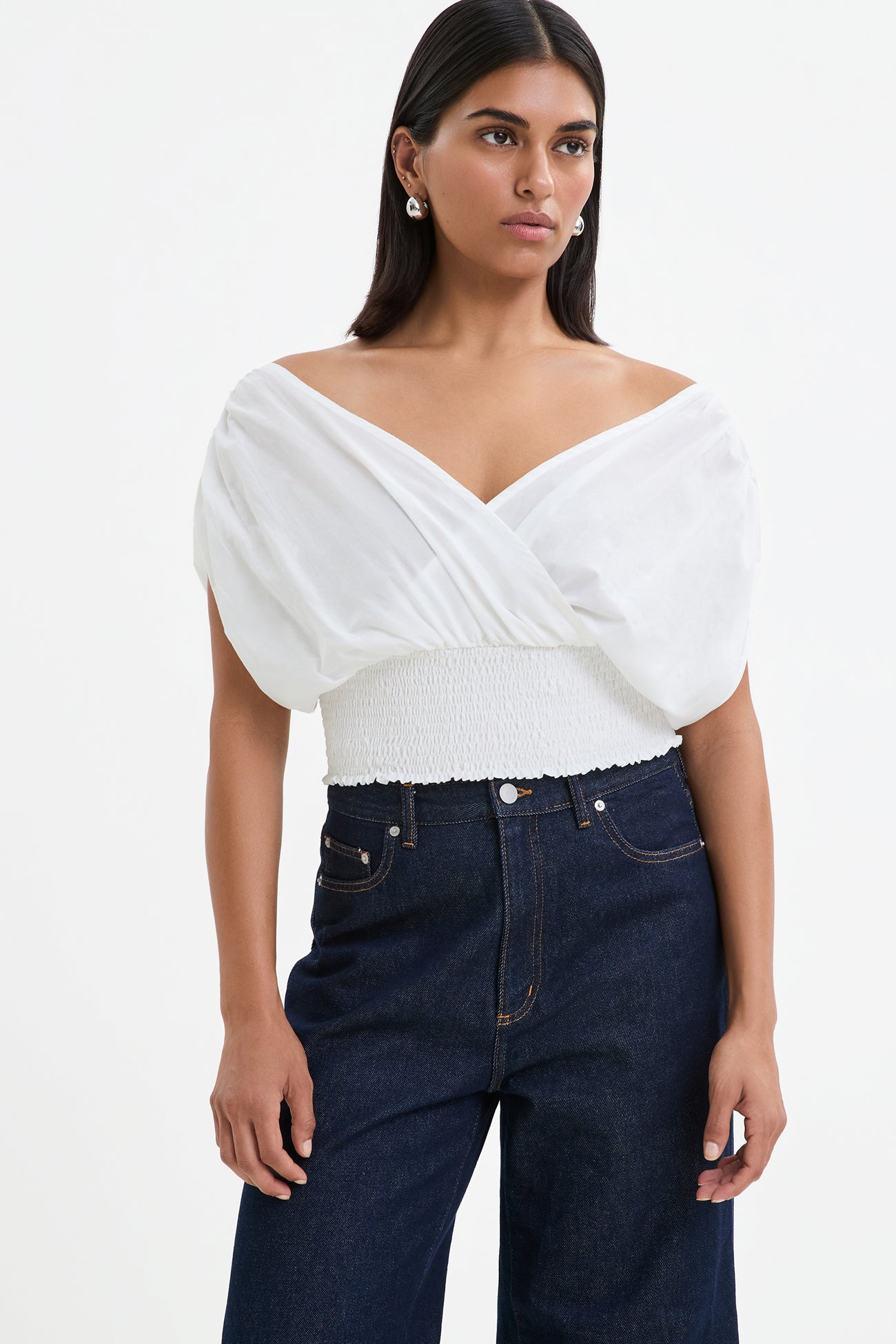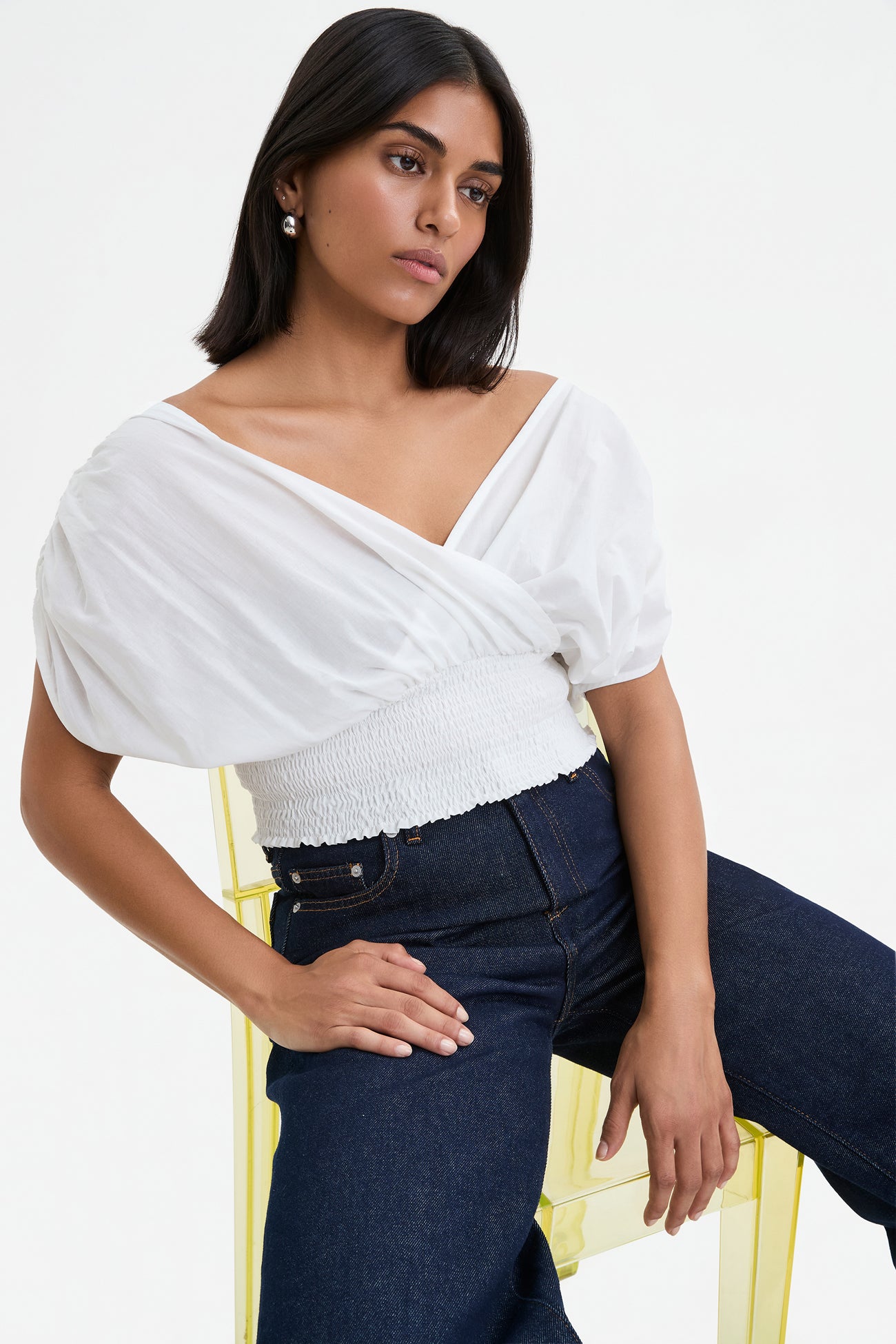 Feminine and flattering. Signe is designed to sing your praises. Inspired by our Signe Dress. this top features dropped gathered shoulders and a back strap to keep them secure. An overlapping V-neck and smocked waist lend volume and shape. while airy European cotton voile makes her a breeze to dress up or keep casual.SPLIT