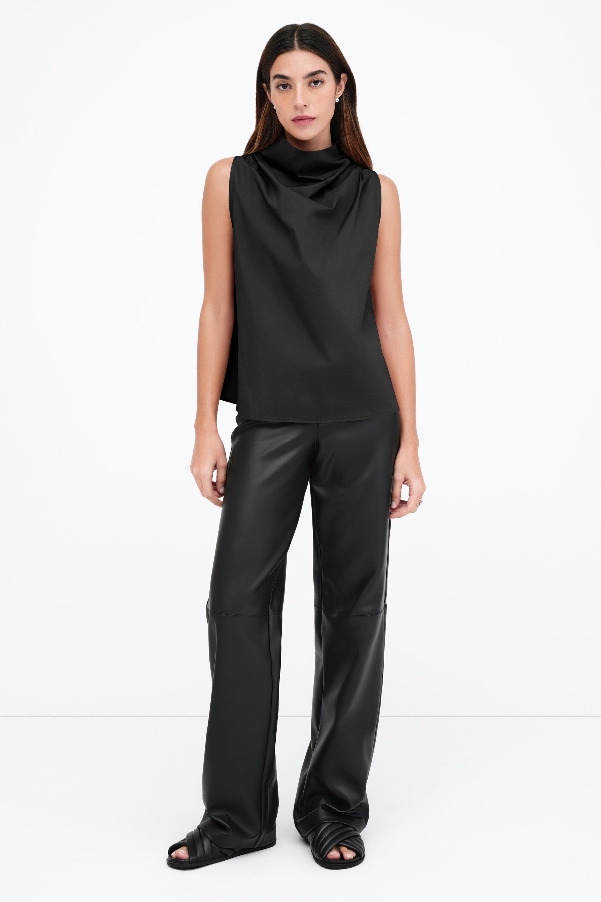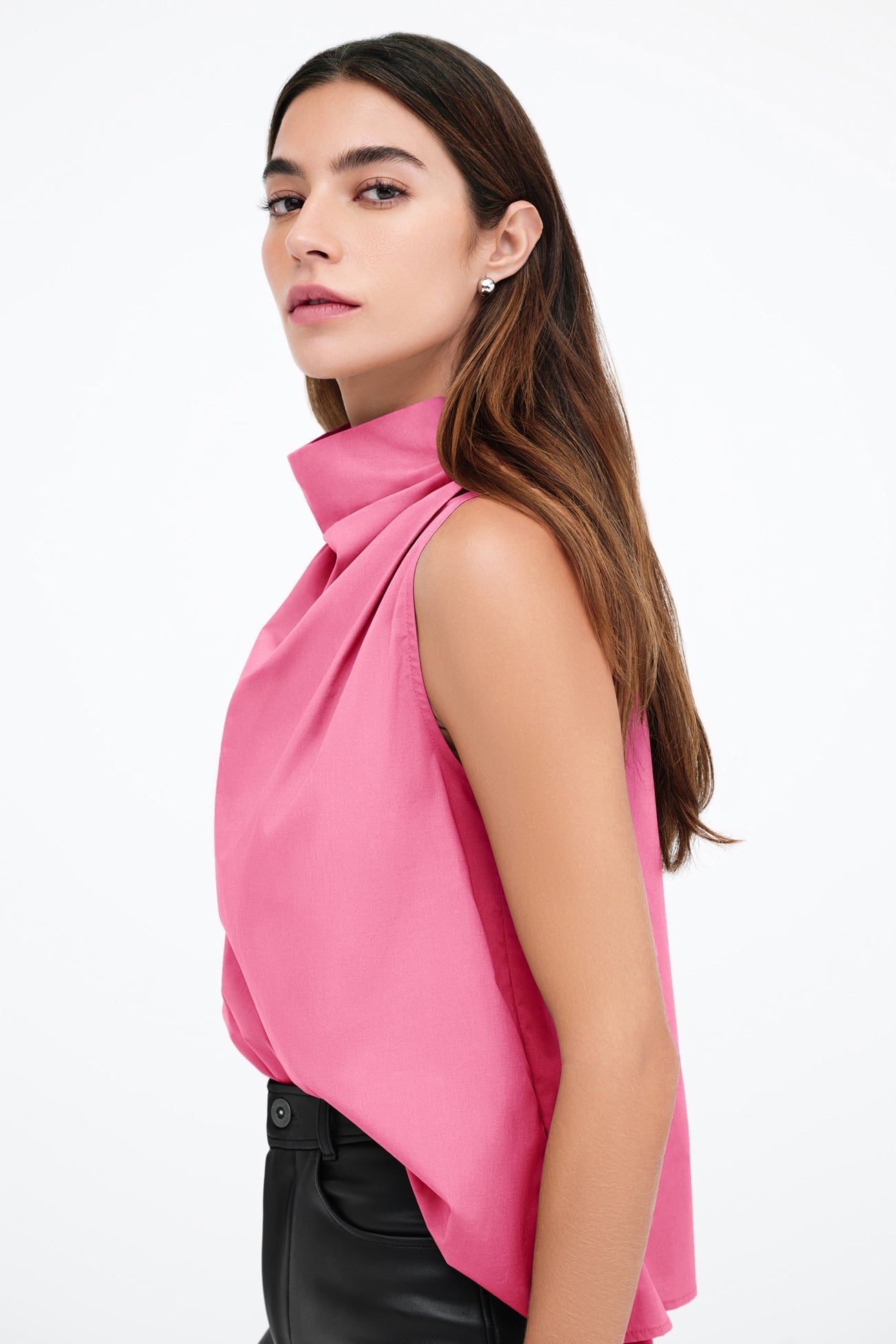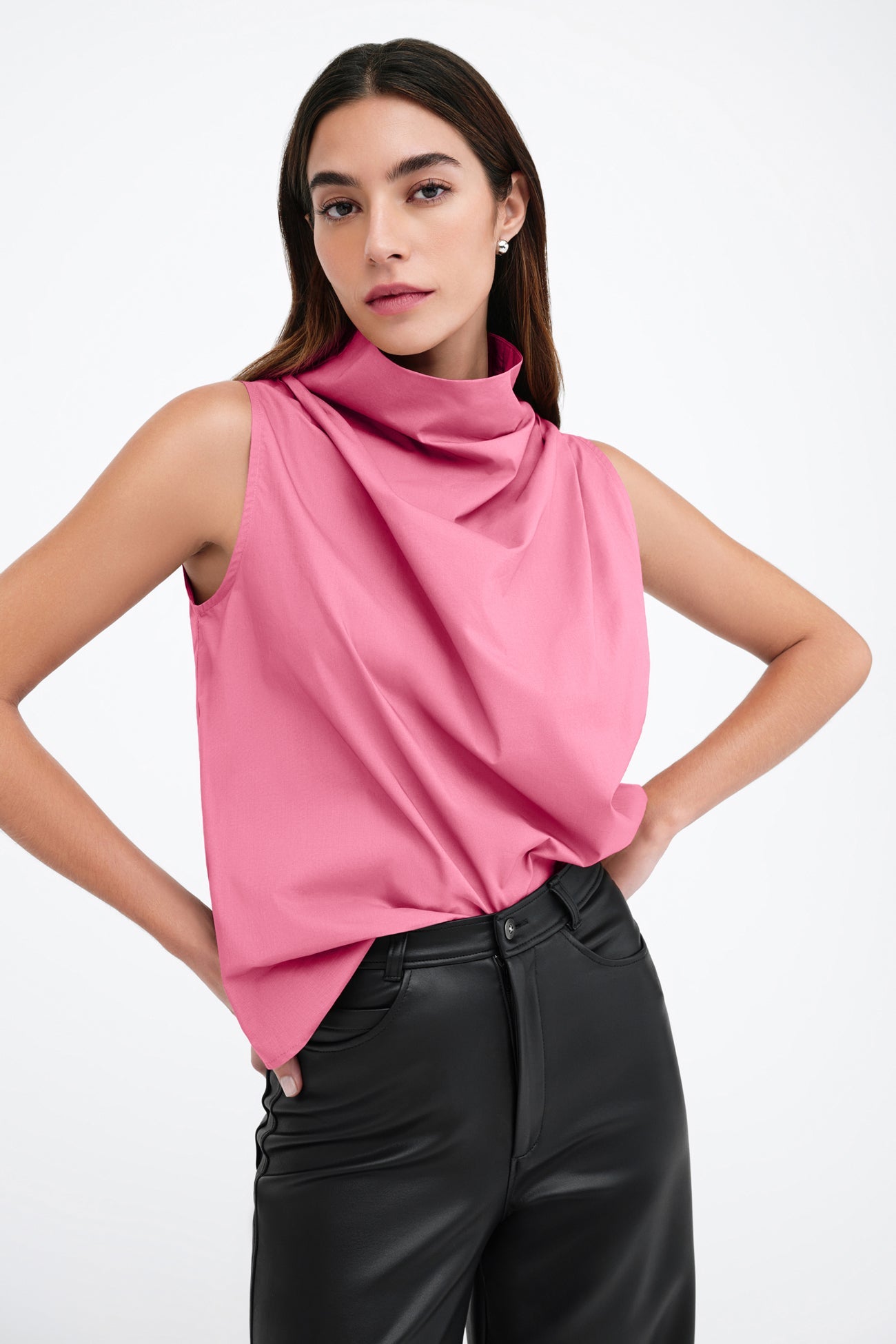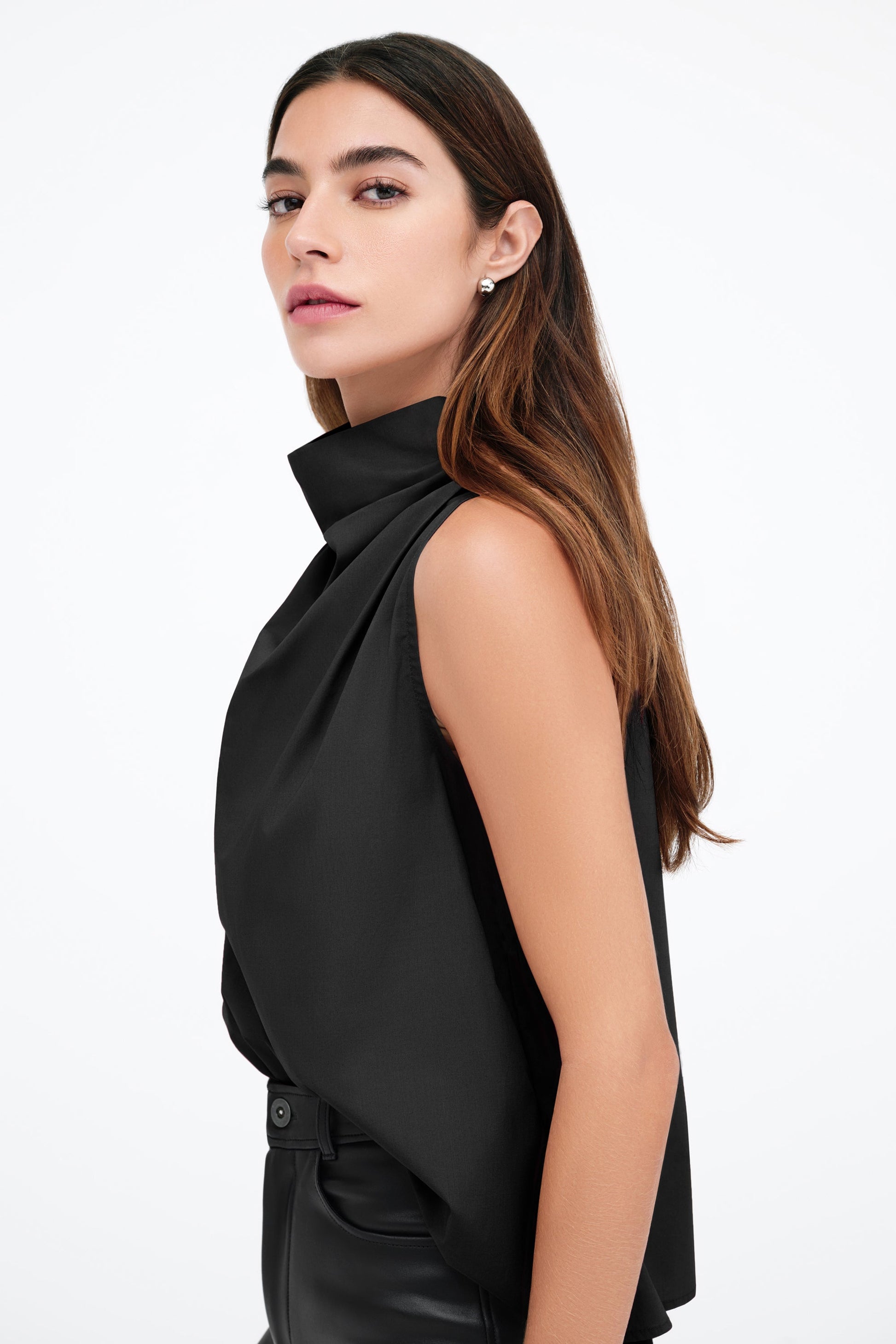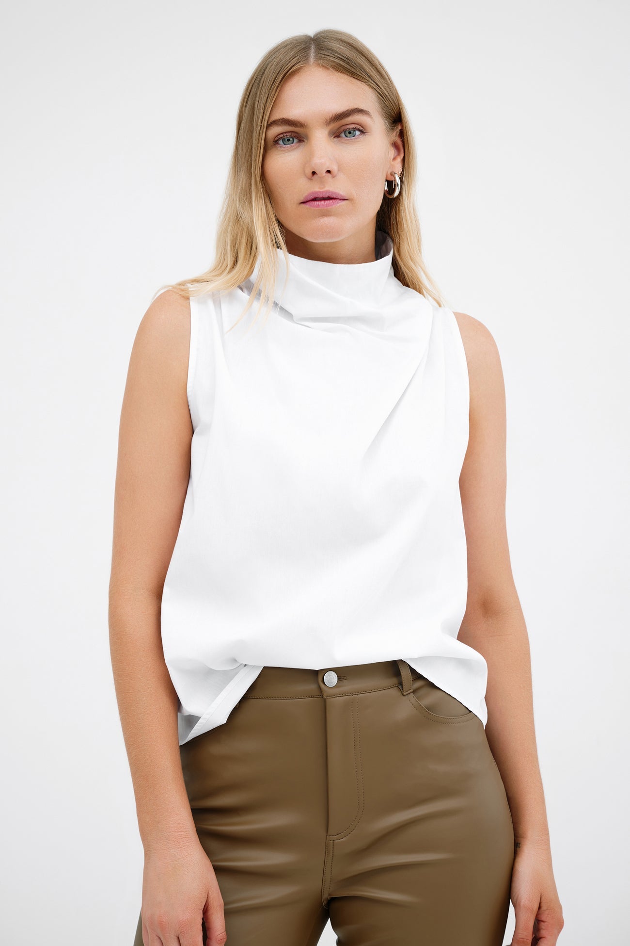 Our Minna Top is a pared-back classic for the poetically inclined. Inspired by our beloved Minna Dress. this sleeveless silhouette is marked by an oversized neckline that gathers above the shoulders for a dash of dramatic volume. She's crafted from crisp and airy European poplin cotton. keeping her ultra-wearable in warmer temps and making layering a breeze.SPLIT