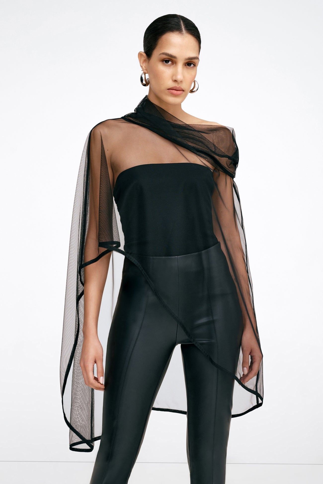 A contemporary take on the iconic cape. our Straiton Mesh Shawl will transform any look. This oversized. barely-there layer features an asymmetrical high-low hem and a wide. high neckline. Her soft luxe mesh allows you to mold her style any way your heart desires. adding an edgy yet ethereal visual dimension to your outfits.SPLIT