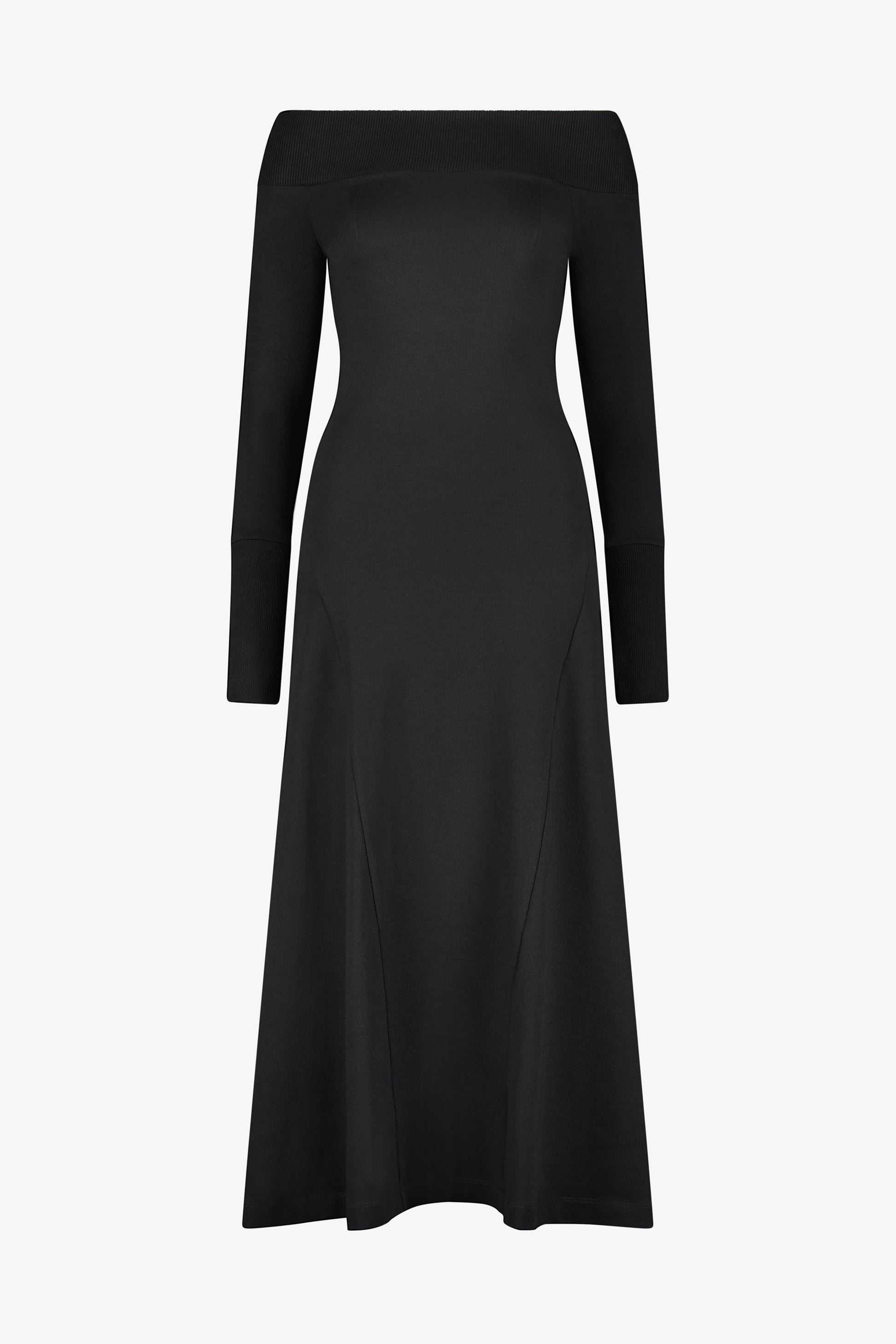 Meet Tilly. a dress of beauty designed to emphasize yours. In soft. lightweight & breathable European French Terry (ideal for changeable temps). this off-the-shoulder silhouette features a fitted bodice and a-line skirt. Double side seams at the waist create flattering triangular shapes. while ribbed detailing at the neckline and cuffs add edge. Tilly's versatile and ready for anything. If between sizes. we recommend you size up.