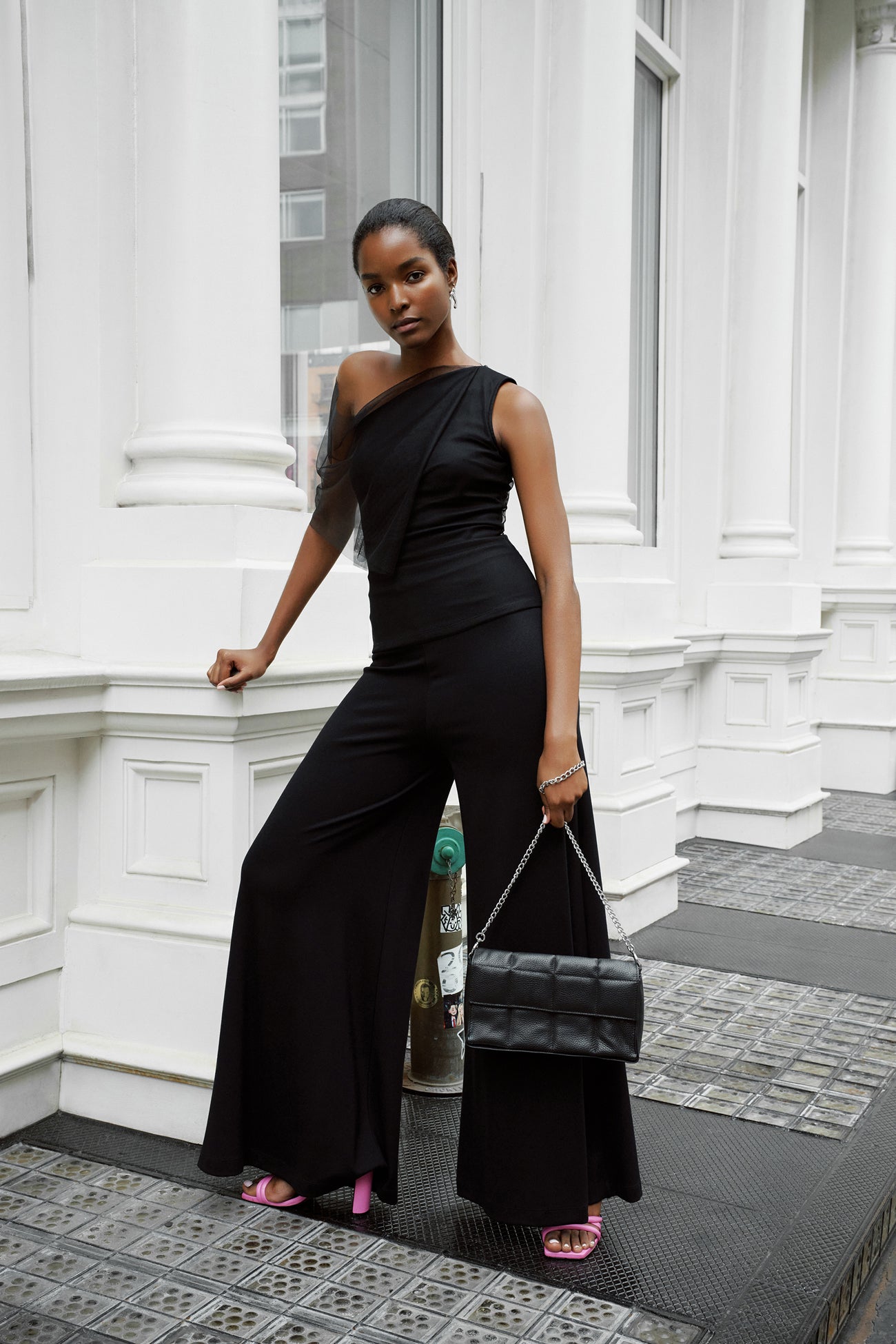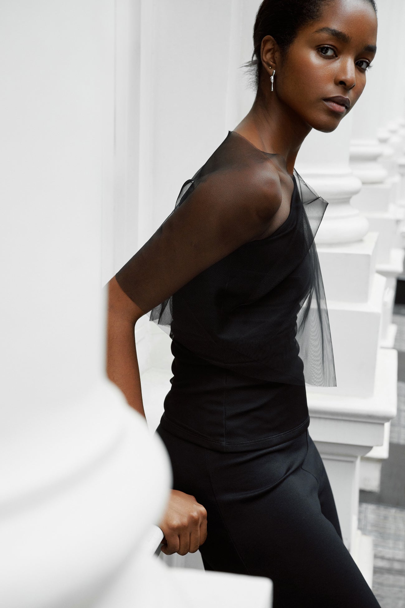 We see glamour in your future. Inspired by our Zinnia Dress. our Zinnia Top brings the allure by marrying a fitted bodice in structured. mid-stretch European ponte with a soft mesh layer floating over her neckline and one arm. Her asymmetrical one-shoulder silhouette underneath only makes Zinnia that much more of the perfect cocktail piece. SPLIT